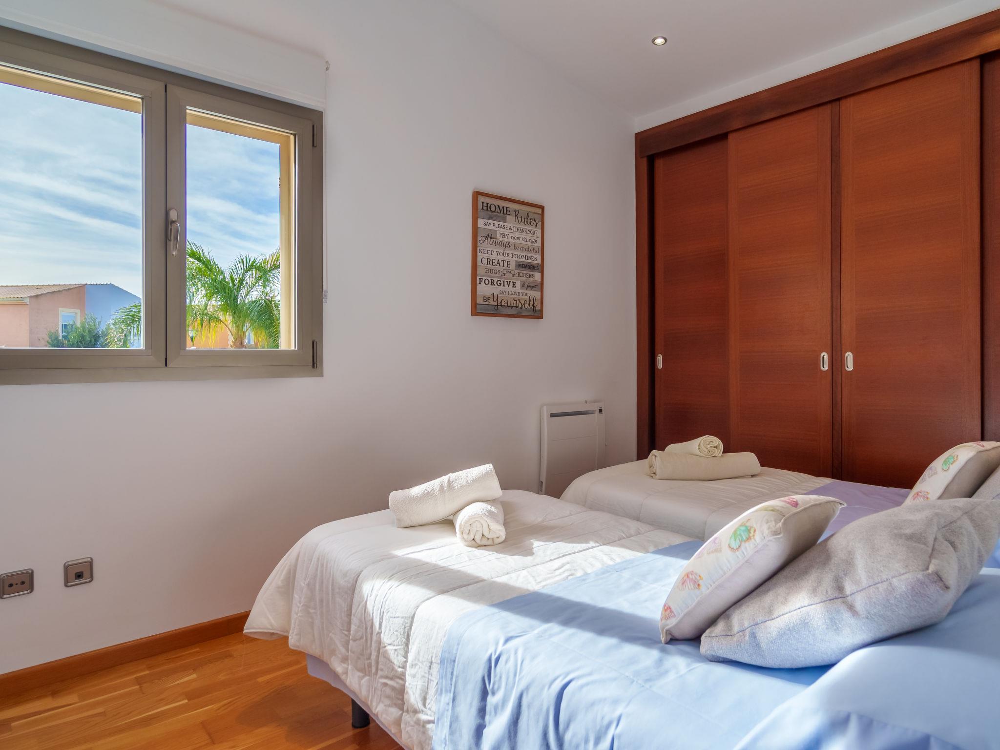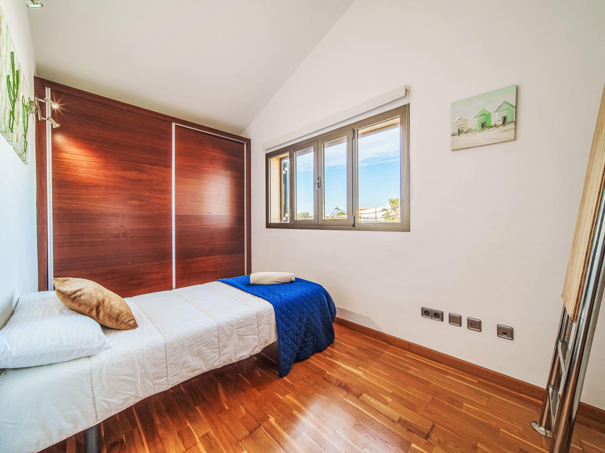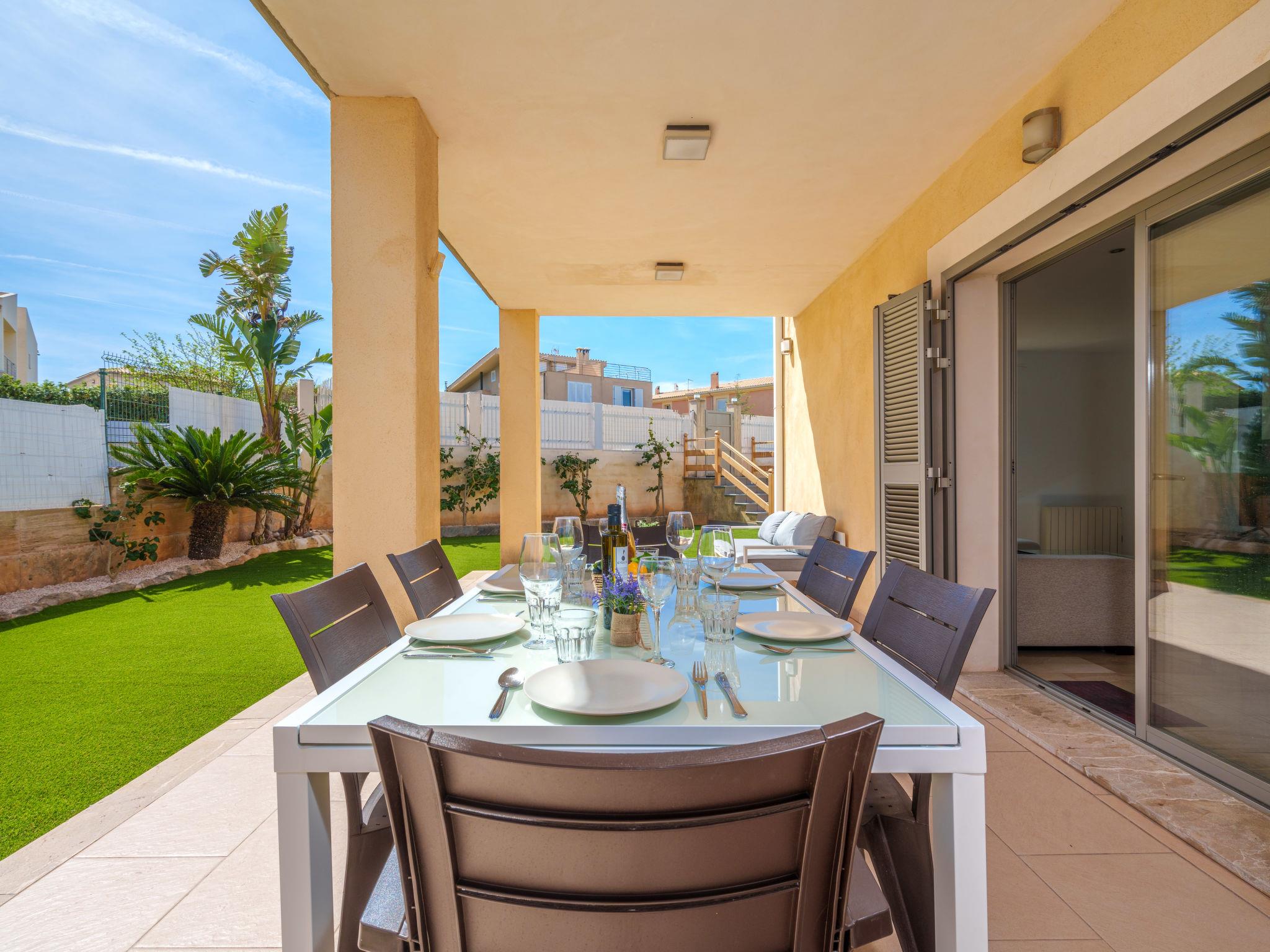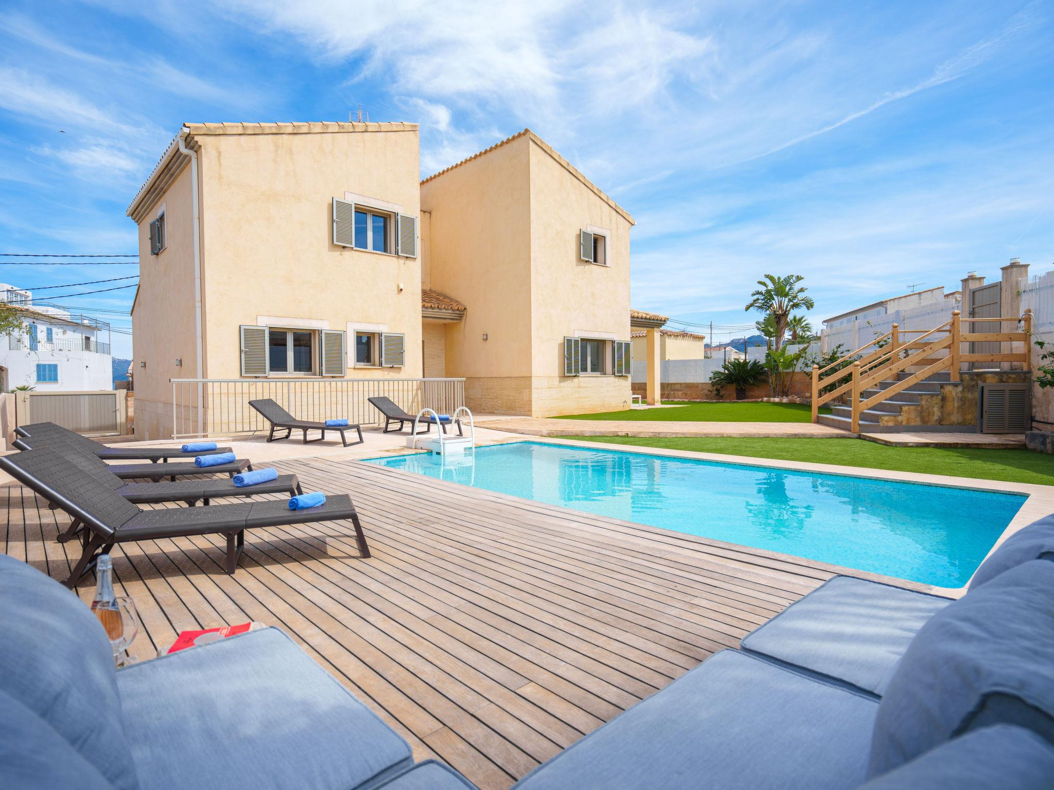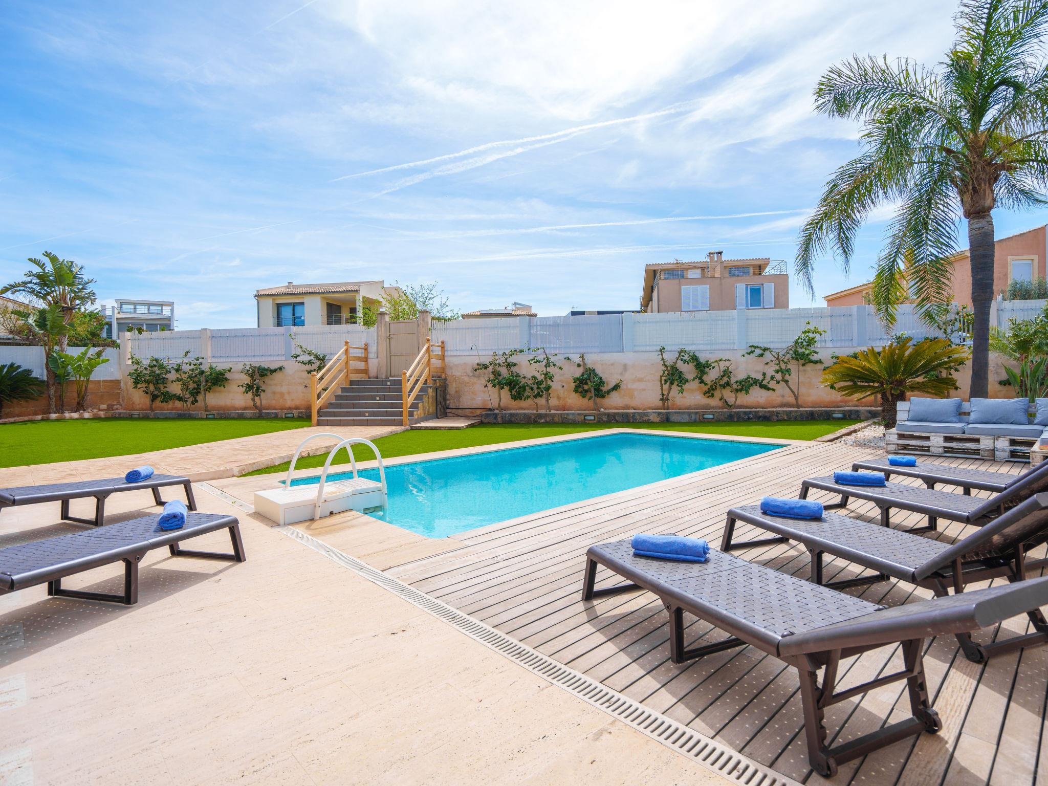 Barcarés 1 km from Alcúdia: Very large, very modern villa "Son Jil", 2 storeys, detached, built in 2005. In a quiet, sunny position residential area (villas), 2 km from the edge of the forest, 60 m from the sea, road to cross. Private: large, well-kept garden with lawn and wildlife garden, swimming pool angular (8 x 4 m, depth 150 - 150 cm, seasonal availability: 01.Jan. - 31.Dec.) with salt-electrolysis pool-cleaning system. Outdoor shower, patio, arbour, pergola, garden furniture, barbecue. In the house: internet access, WiFi, central heating system, air conditioning, washing machine. Public car park, public parking on the road. Shop 1 km, supermarket 1.2 km, shopping centre 45 km, restaurant 160 m, bar, pedestrian zone 50 m, 15 minute walk to the centre, bus stop 1.5 km, ferry 3 km, sandy beach "Platja Es Morer Vermell" 550 m, rocky beach "Platja Es Barcarés" 60 m. Sports harbour 250 m, marina 3 km, golf course (18 hole) 6 km, tennis 2.5 km, riding stable 2.5 km, sports centre 2.5 km, walking paths from the house 1 km, cycle lane 700 m, children's playground 500 m. Nearby attractions: Ermita de la Victoria, Barcarés, Manresa, Sa Marina, Es Malpas. Ciutat Romana de Pollentia, Alcudia. Port d'Alcúdia, Port de Pollença - Pollença, North Beaches. Hiking paths: Sa Talaia, Es Puig de Sant Martí, Serra Tramuntana Pollença. Please note: suitable for families, suitable for seniors. Object suitable for 8 adults groups of teenagers on request only. Airfield 60 km from the property.