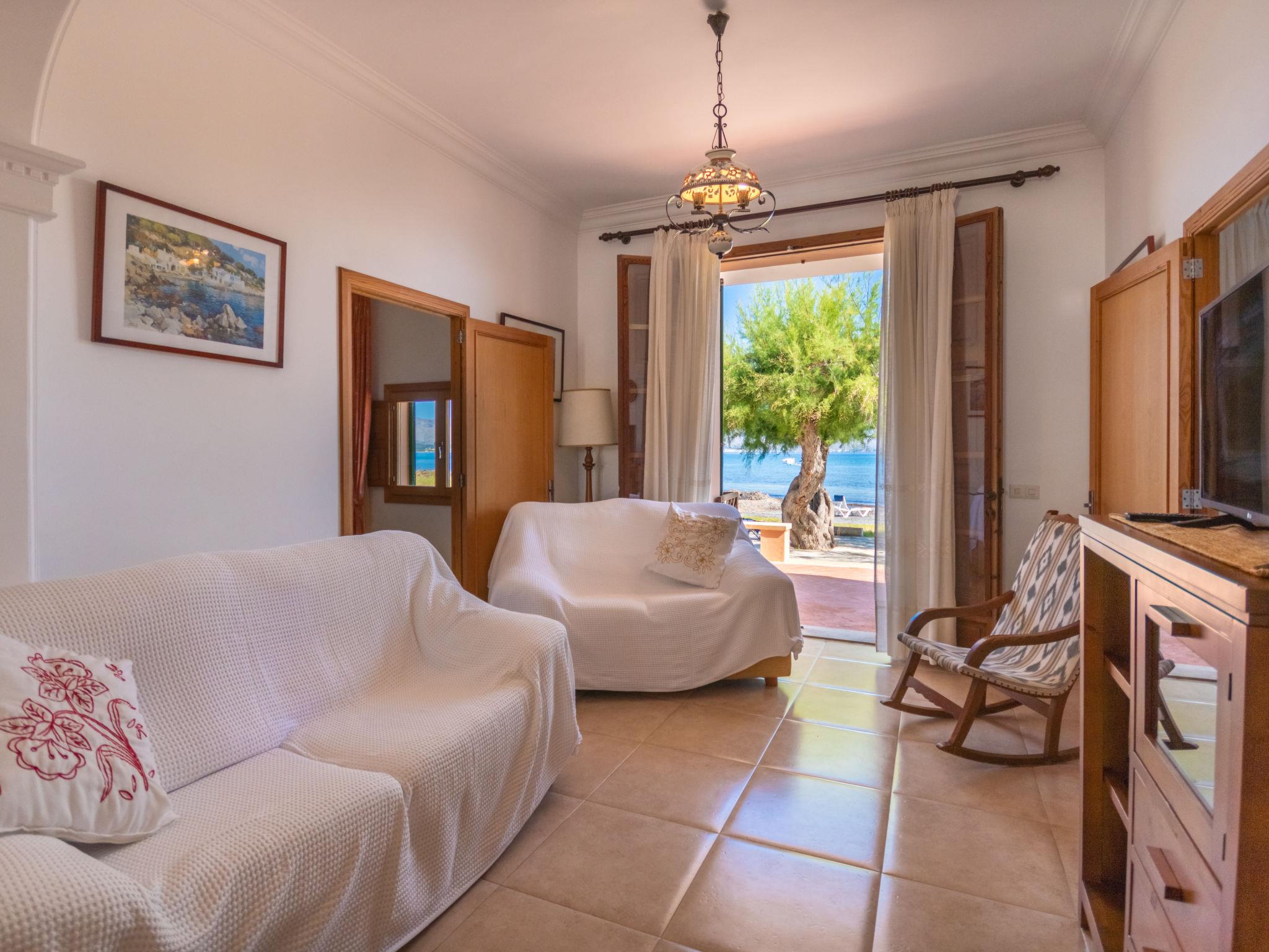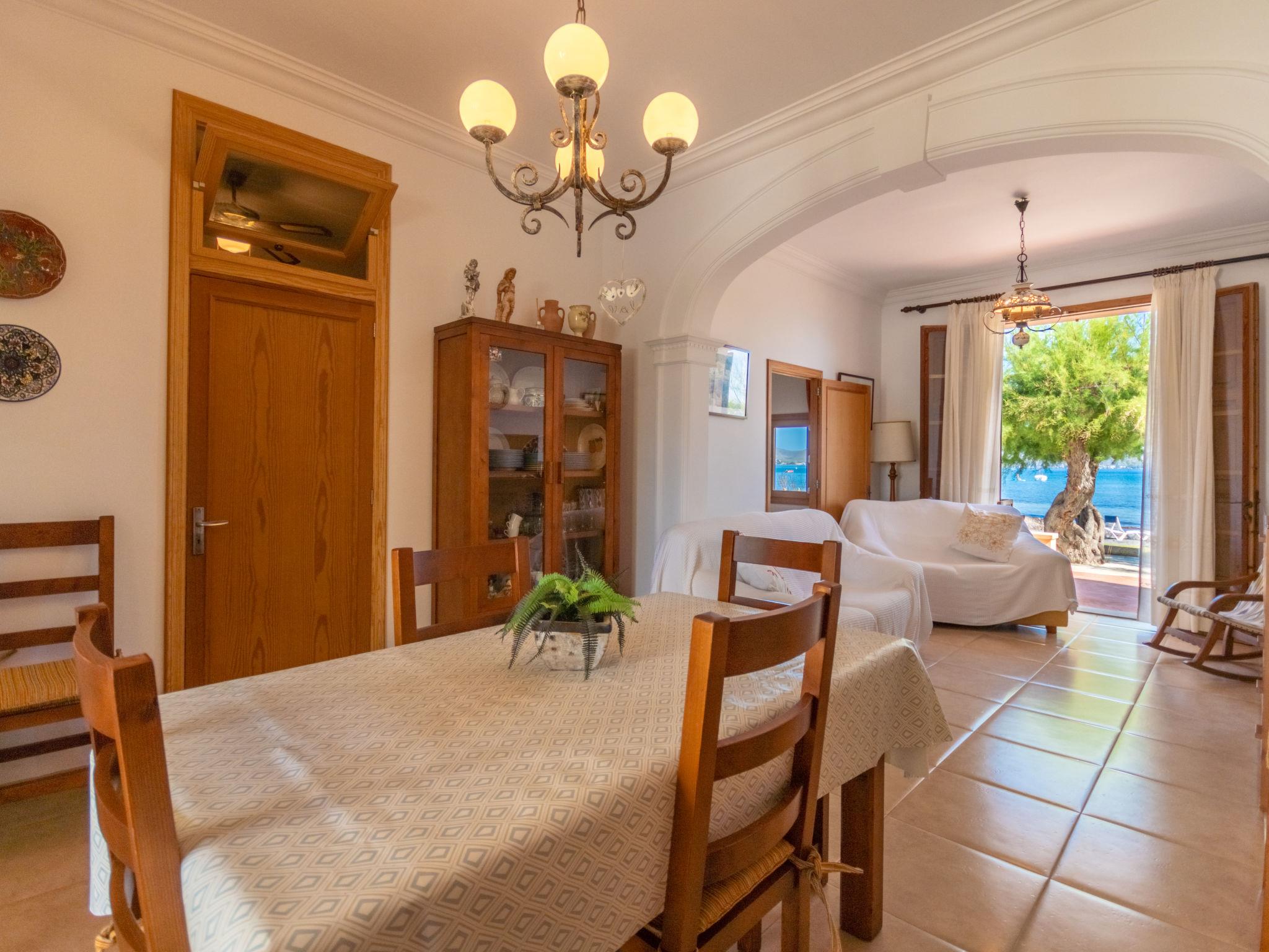 "Sa Marina", 5-room house 135 m2, lower ground floor. Object suitable for 6 adults. Bright, renovated, practical and beautiful furnishings: living/dining room with panoramic window with dining table, digital TV and flat screen. Exit to the terrace. 2 large double bedrooms with panoramic window, each room with 1 french bed (150 cm, length 200 cm). 1 large double bedroom with 2 beds (90 cm, length 190 cm). Lounge. Kitchen-/living room (5 hot plates, oven, dishwasher, microwave, freezer, electric coffee machine) with dining table. Exit to the terrace. Shower, shower/WC, sep. WC. No heating option. Large terrace, porch. Terrace furniture, balcony furniture, deck chairs (3), covered balcony, box-room. Marvellous panoramic view of the sea, the mountains, the resort and the bay. Facilities: washing machine, iron, children's high chair, baby cot, hair dryer. Internet (WiFi, free). Suitable for families. ETVPL13153 // Reg. Nr.: ESFCTU00000704300025215700000000000000000ETVPL/131533