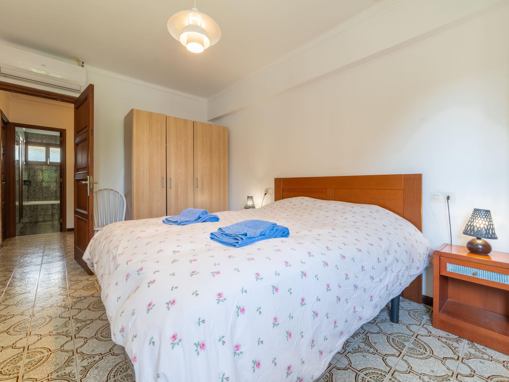 "Can Jeroni", 5-room house 163 m2 on 1st floor. Object suitable for. Spacious and bright: large living room with digital TV and flat screen. Exit to the balcony. Large dining room with panoramic window with dining table. Exit to the balcony. 1 large double bedroom with panoramic window with 1 french bed (150 cm, length 190 cm), air conditioning and forced-air heating. 1 large double bedroom with panoramic window with 1 french bed (135 cm, length 190 cm), air conditioning and forced-air heating. 1 large double bedroom with panoramic window with 2 beds (90 cm, length 190 cm), air conditioning and forced-air heating. 1 room with panoramic window with 1 bed (90 cm, length 190 cm). Kitchen-/living room (oven, dishwasher, 3 ceramic glass hob hotplates, toaster, kettle, microwave, freezer, electric coffee machine) with dining table. Exit to the patio. Bath/bidet/WC, shower/WC. Large balcony, large patio, lawn, porch. Terrace furniture, balcony furniture, barbecue, deck chairs, covered balcony, box-room. View of the resort. Facilities: washing machine, iron, children's high chair, baby cot for up to 2 year olds, hair dryer. Internet (WiFi, free). Parking. ETV11431 // Reg. Nr.: ESFCTU0000070430001068940000000000000000000ETV/114312