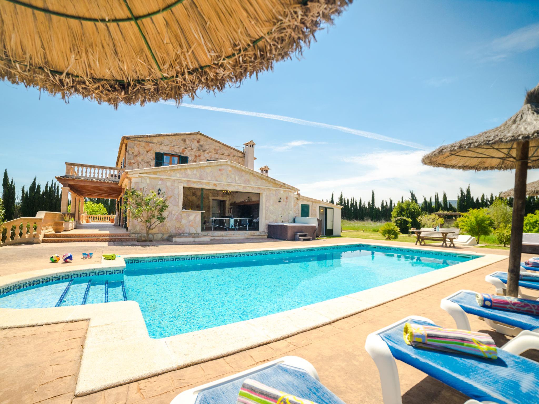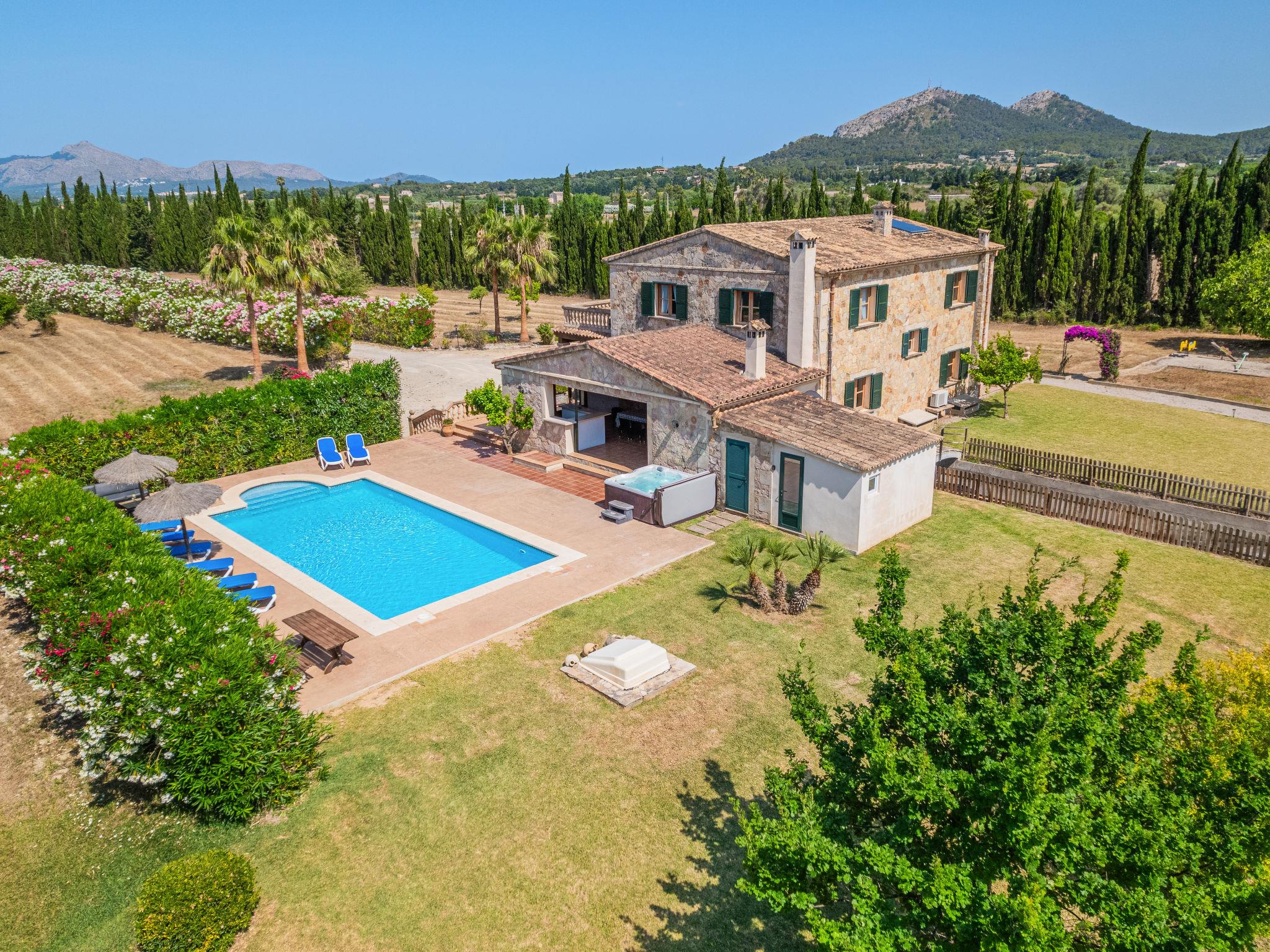 Alcúdia 5 km from Alcúdia-Pollença: Very large, beautiful, comfortable villa "Can Banzer", 2 storeys, renovated. Outside the resort, 4 km from the centre of Alcúdia, in a quiet, sunny position, 3 km from the edge of the forest, 7 km from the sea, 7 km from the beach, in the countryside. Private: property 14'250 m2 (fenced), large garden with lawn and wildlife garden, swimming pool angular (8 x 4 m, seasonal availability: 01.Jan. - 31.Dec.). Shower/WC in the pool area, outdoor shower, hot tub, table tennis, patio, arbour, pergola, barbecue. In the house: internet access, WiFi, storage room for bicycles, central heating system, air conditioning, burglar alarm system, washing machine. Parking at the house on the premises. Shop 5 km, grocery 5 km, supermarket 5 km, restaurant 5 km, bus stop 5 km, sandy beach 6.5 km, shingle beach 7 km. Sports harbour 6.5 km, golf course (18 hole) 7 km, riding stable 4 km, children's playground 4 km. Please note: suitable for families, suitable for seniors. Object suitable for 8 adults groups of teenagers on request only. Loading and unloading of baggage is possible at the holiday house. Animals in the neighbourhood. Airfield 55 km from the property.