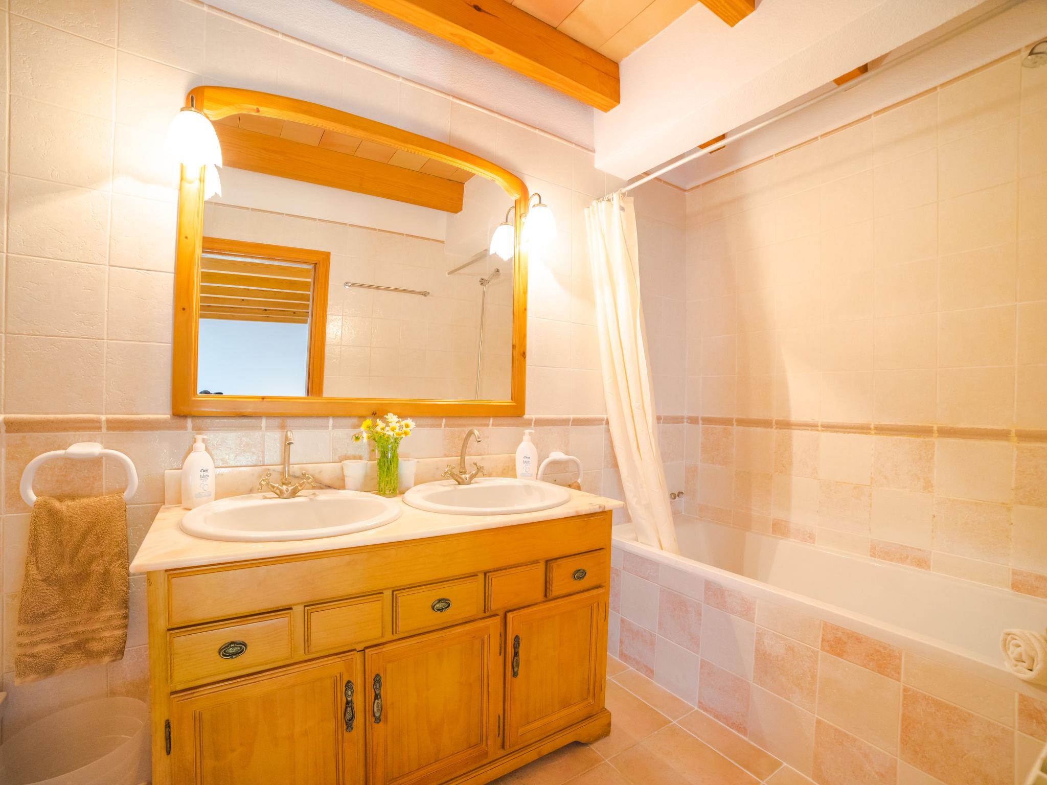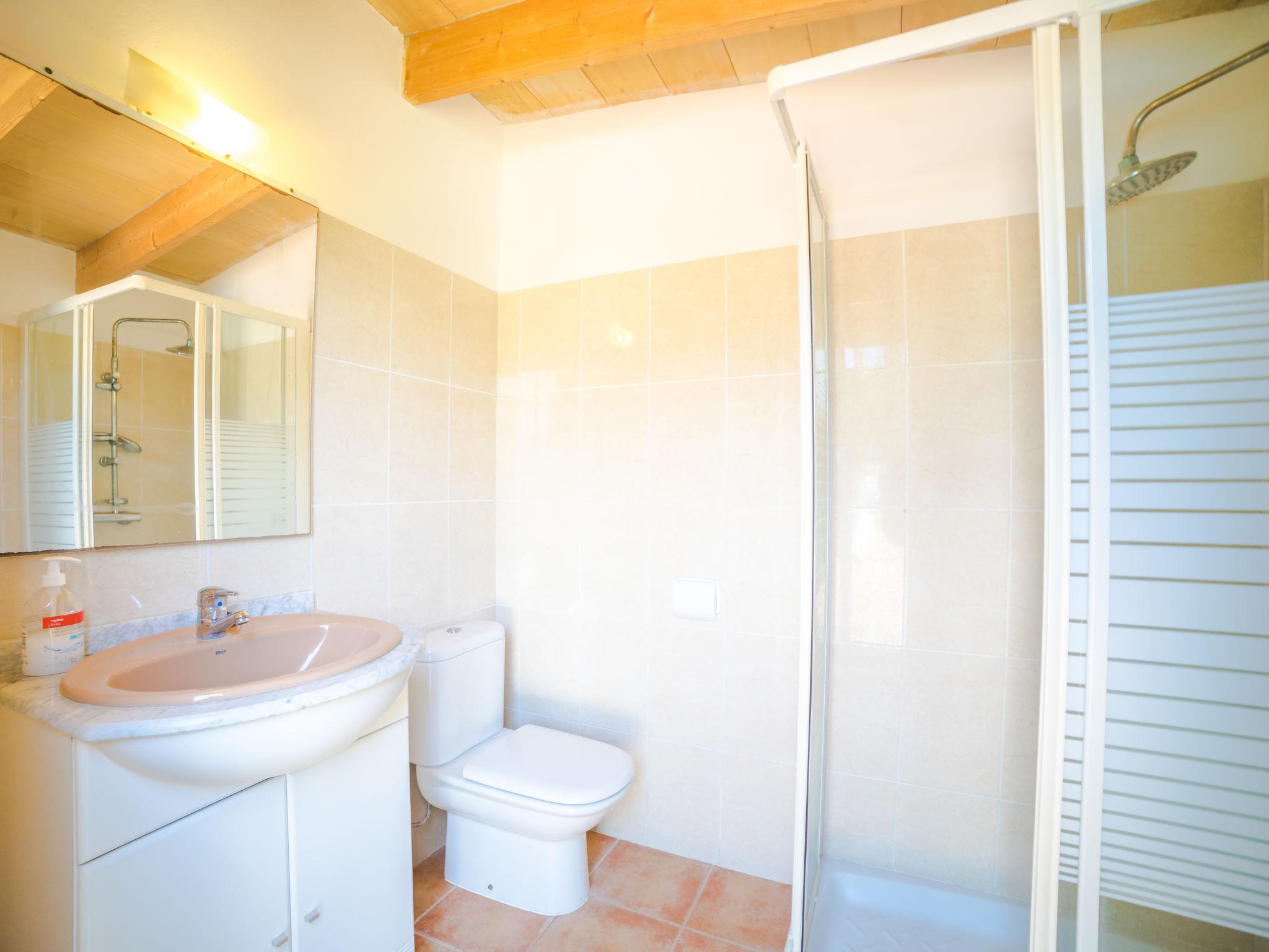 "Can Banzer", 6-room villa 340 m2 on 2 levels. Object suitable for 8 adults. Spacious and bright, fully renovated, very comfortable and cosy furnishings: open large living/dining room with panoramic window with dining table, TV, satellite TV, flat screen, hi-fi system, air conditioning and forced-air heating. Exit to the garden. Kitchen-/living room (oven, dishwasher, 3 ceramic glass hob hotplates, toaster, kettle, microwave, freezer, electric coffee machine) with dining table. Exit to the garden. Bath/shower/WC. Upper floor: 1 large double bedroom with panoramic window with 1 double bed (180 cm, length 200 cm), bath/shower/WC, TV, flat screen, air conditioning and forced-air heating. Exit to the terrace. 1 large double bedroom with panoramic window with 1 french bed (150 cm, length 200 cm), bath/shower/WC, air conditioning and forced-air heating. 1 large double bedroom with panoramic window with 1 french bed (150 cm, length 200 cm), air conditioning and forced-air heating. 1 large double bedroom with panoramic window with 2 beds (90 cm, length 190 cm), air conditioning and forced-air heating. Exit to the terrace. Bath/shower/bidet/WC, double hand-basin. Large terrace, large patio, lawn, porch. Terrace furniture, barbecue (portable), deck chairs, covered balcony. Distant view of the mountains and the countryside. Facilities: washing machine, dryer, sauna, iron, children's high chair, baby cot, hair dryer. Internet (WiFi, free). Parking (fenced). Please note: suitable for families. Non-smoking house. ETV/10312 // Reg. Nr.: ESFCTU0000070430000930710000000000000000000ETV/103127