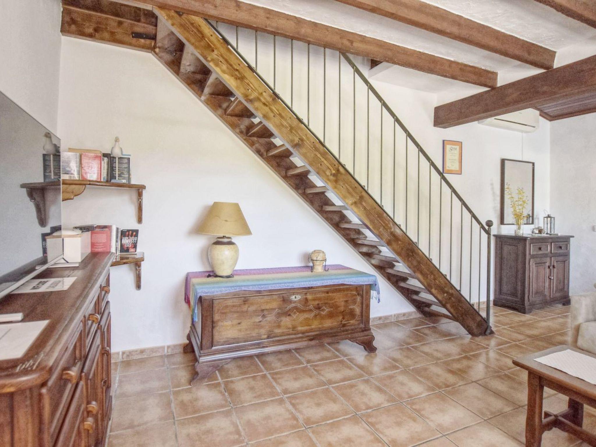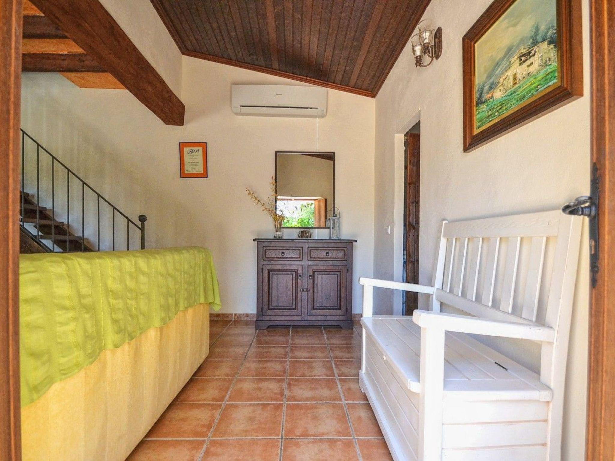 With around 70 m² of living space, the house offers space for up to three guests, i.e. a couple or a small family with a child. Inside, the finca has a living room with satellite TV, internet and dining area and the rustic kitchen that extends here, also with a dining table. There is also a sofa in the living room which can be converted into a sofa bed for the third person (or child). The bathroom is also on this level.