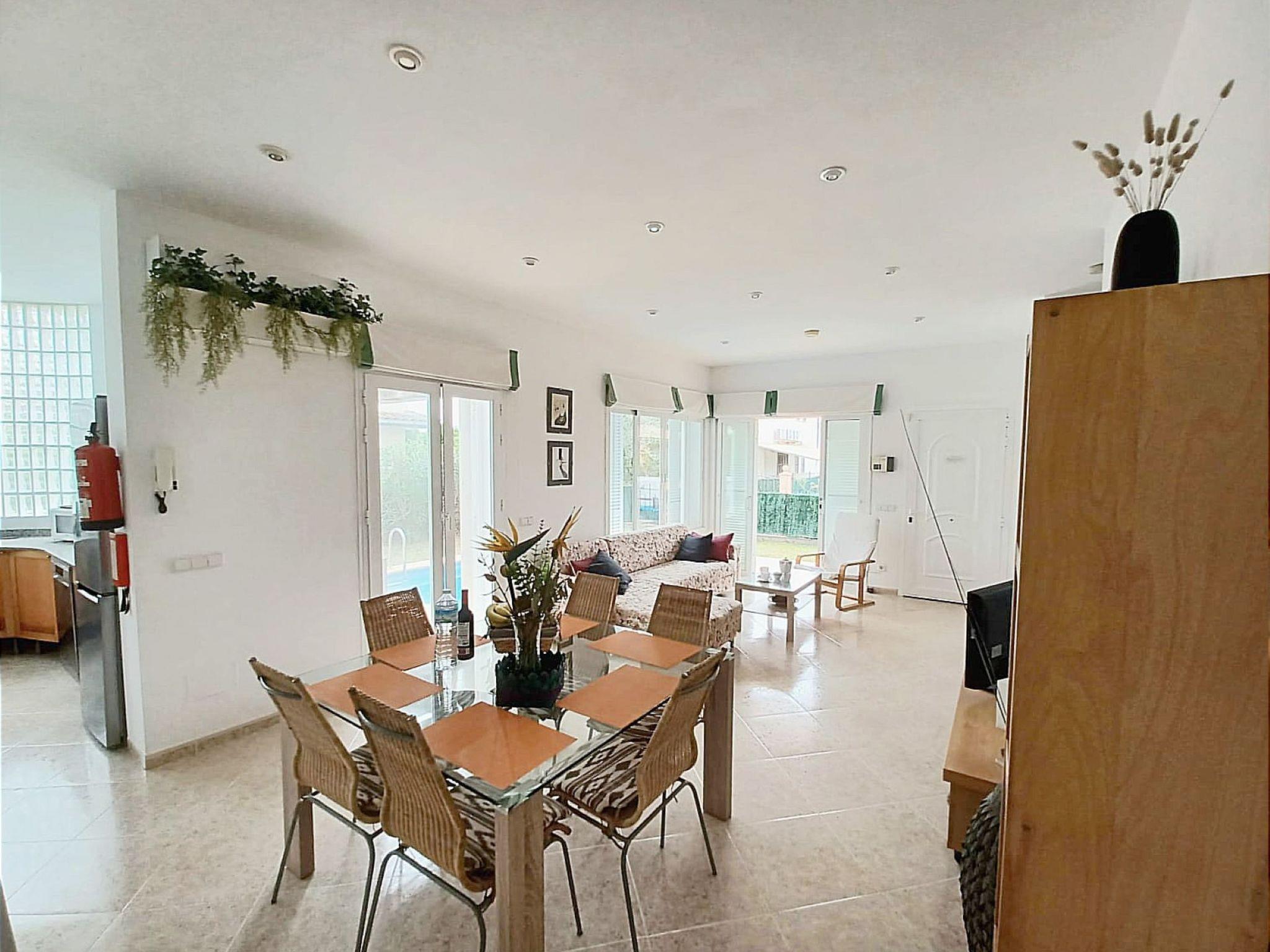 Capacity for 6 persons, 3 bedrooms, 2 bathrooms, fully equipped kitchen, living room with TV, satellite TV, internet (Wifi), washing machine, barbecue, cot and high chair available for children, iron for clothes, hair dryer, garden furniture and swimming pool.