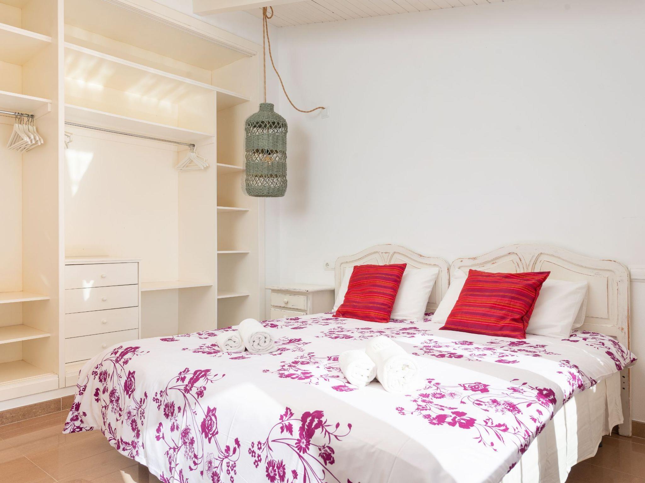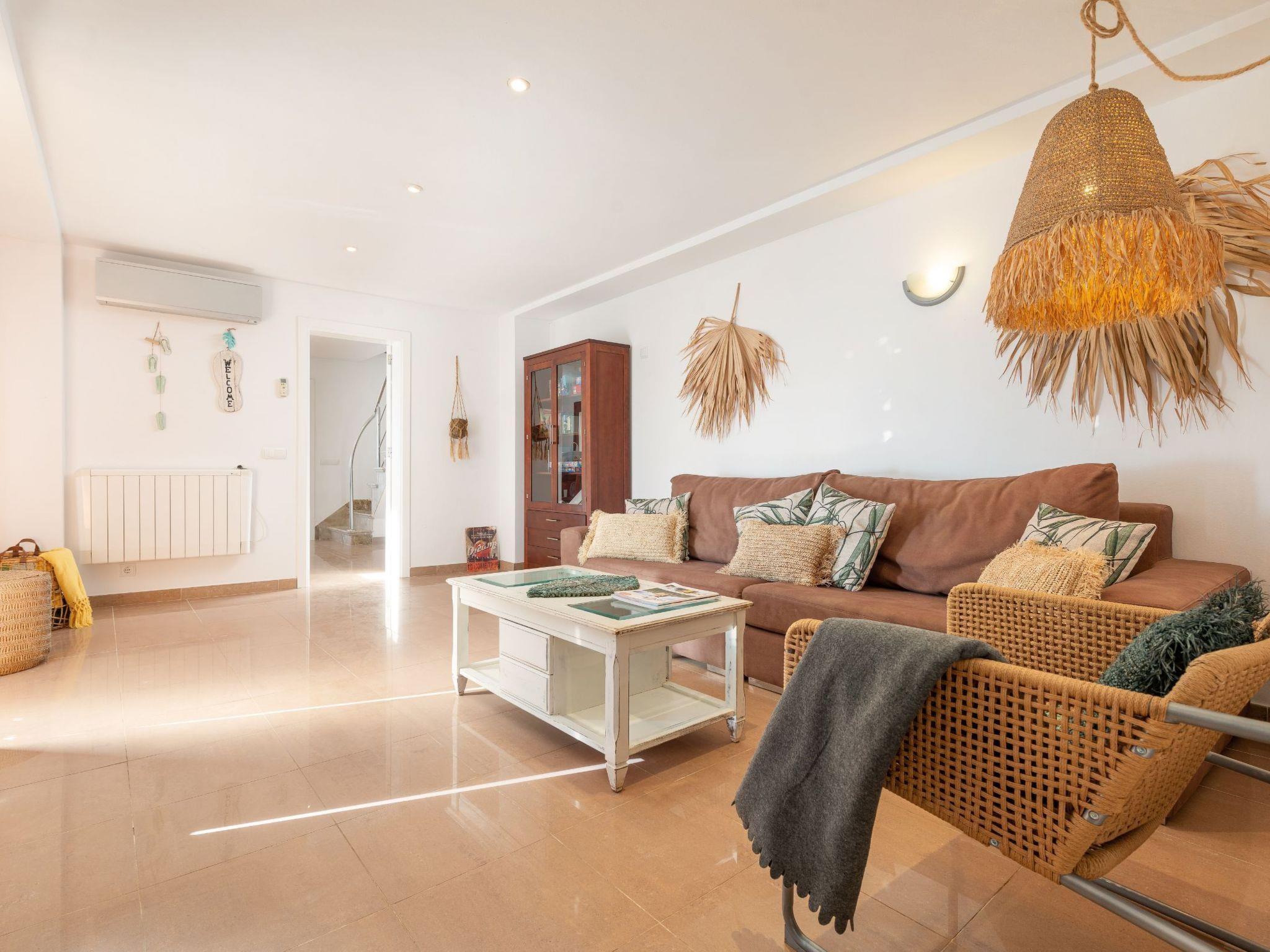 The interior of Villa Sa Cova exudes a calming organic-modern and bohemian flair, crafted with natural materials to create a welcoming atmosphere. The spacious living room, featuring air conditioning and a large comfortable sofa, serves as an ideal spot for unwinding. The kitchen and dining areas are equipped with all necessities for a delightful cooking experience, boasting two separate dining spaces to cater to your group's needs. Comfort extends to the bedrooms, where four double rooms offer peaceful havens with air conditioning in three of them. The villa also includes three stylishly tiled bathrooms, each stocked with essential amenities for your convenience.