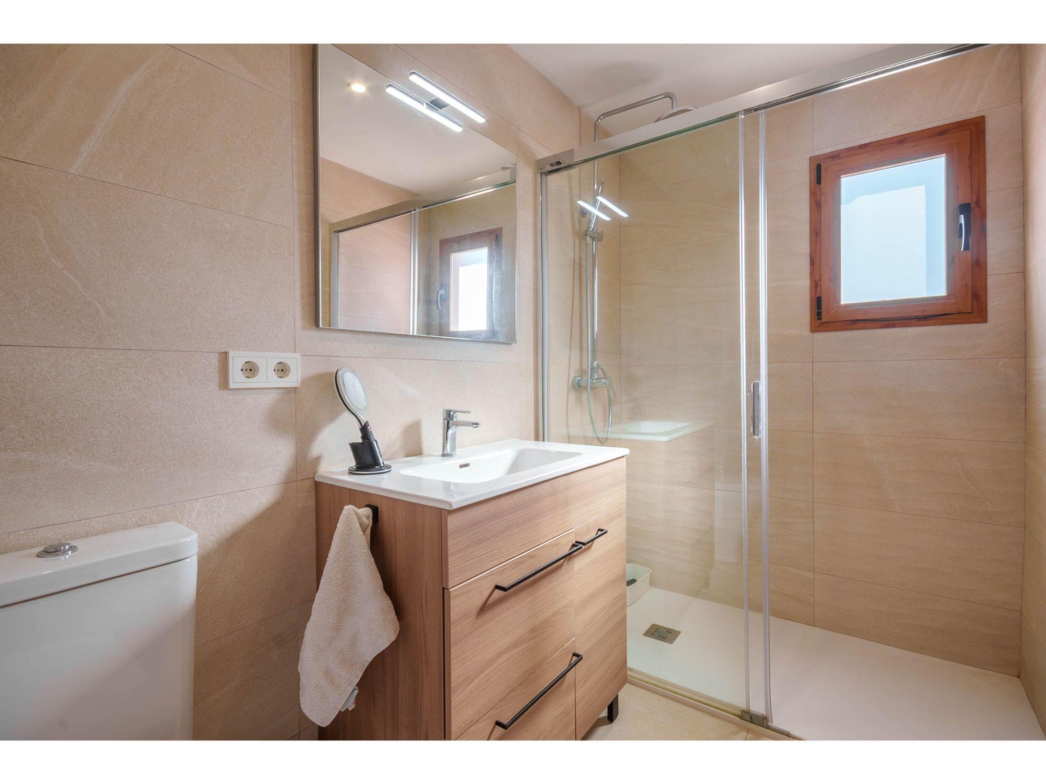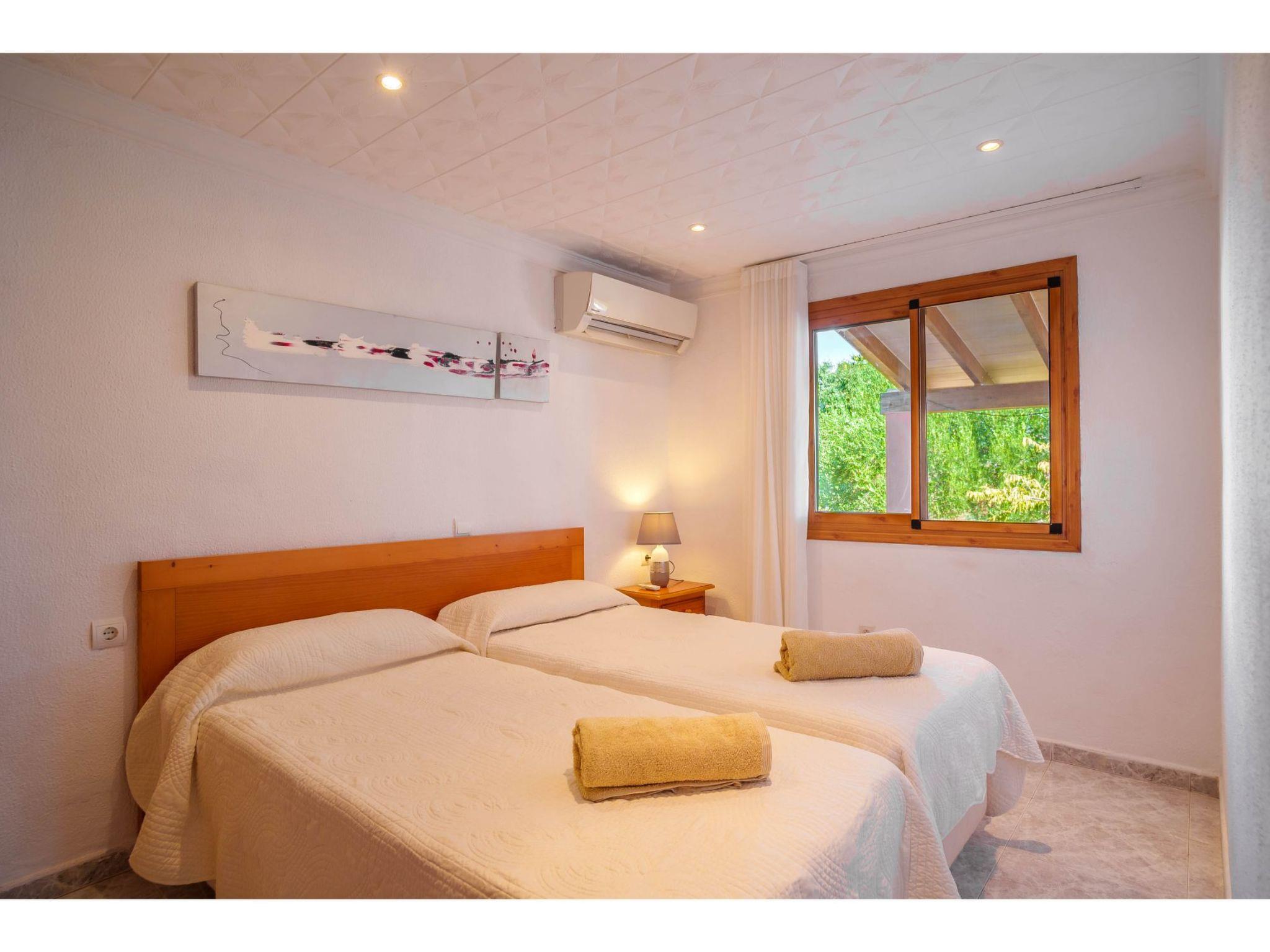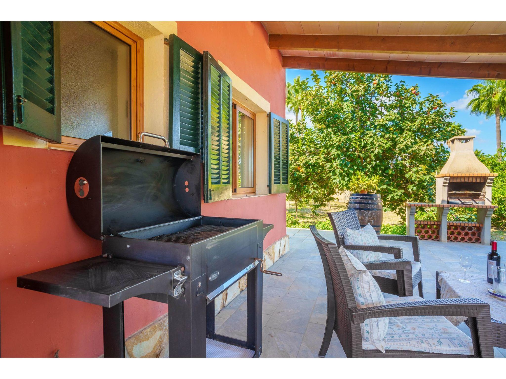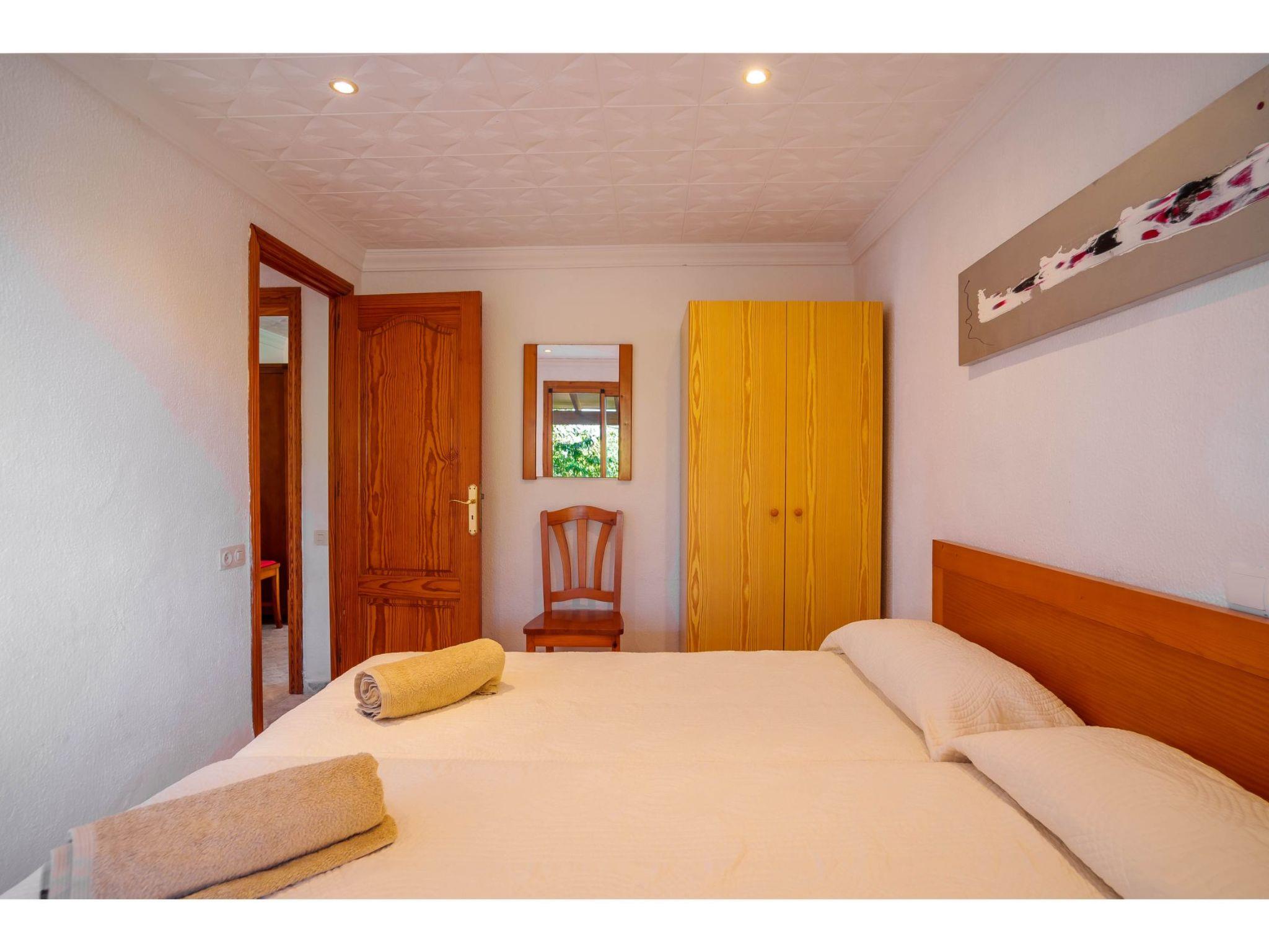 "Sa Olivera", 3-room house 80 m2 on 2 levels. Beautiful furnishings: living/dining room with dining table, satellite TV, digital TV, DVD, electric heating and air conditioning. Exit to the terrace. 1 room with 2 beds, electric heating and air conditioning. 1 room with 1 french bed (180 cm), electric heating and air conditioning. Kitchen (oven, dishwasher, 4 ceramic glass hob hotplates, toaster, kettle, microwave, freezer, electric coffee machine) with dining table. Bath/WC, shower/WC. Terrace 20 m2, roofed, terrace 15 m2. Terrace furniture, barbecue, deck chairs. Beautiful view of the garden. Facilities: washing machine, hair dryer. Internet (WiFi, free). Please note: non-smoking house. 2 extra beds in a separate “tower room”, accessible from outside. ET/2356 // Reg. Nr.: ESFCTU00000704300004275800000000000000000000ETV/23568