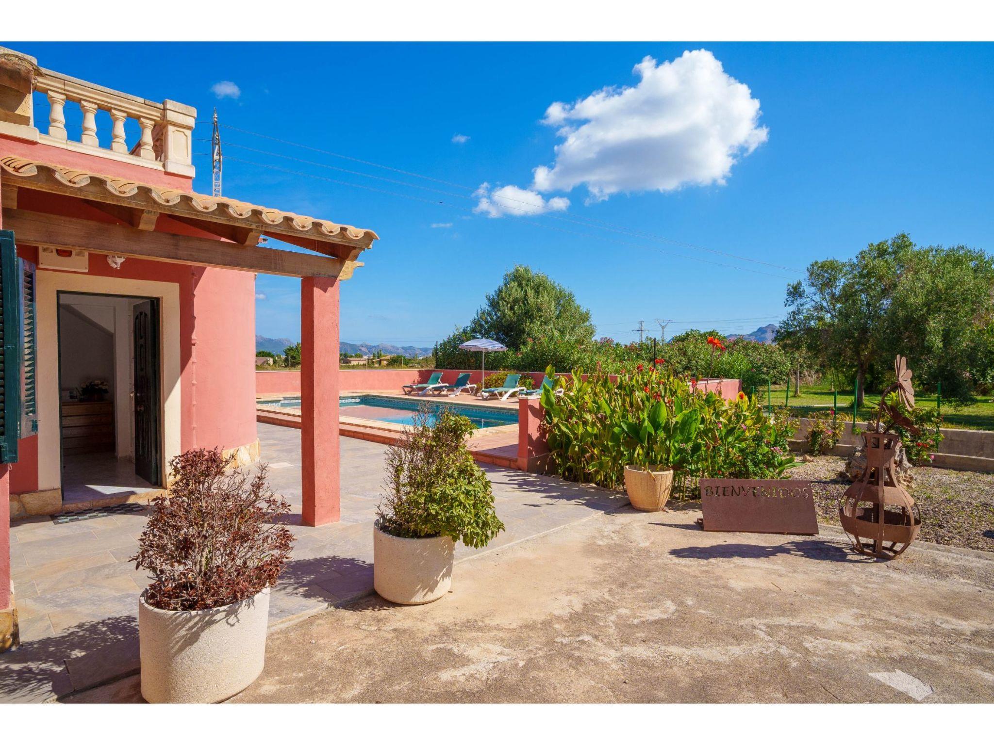 Beautiful single-family house "Sa Olivera". 3 km from the centre of Alcúdia, 23 km from the centre of Inca, 47 km from the centre of Cala Ratjada, 4 km from the sea. Private: natural state property 1'000 m2 (fenced) with lawn and wildlife garden, swimming pool (8 x 4 m, seasonal availability: 01.Jan. - 31.Dec.). Outdoor shower, parking on the premises. Shop 4 km, supermarket 4 km, bus stop 3 km, sandy beach "Alcúdia" 4 km. Please note: car recommended.