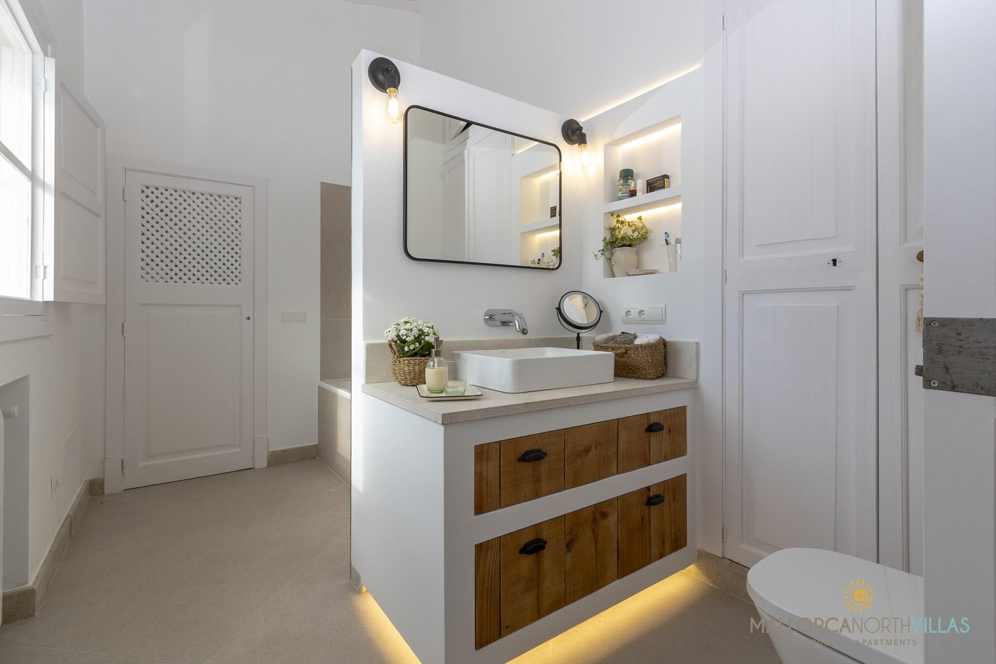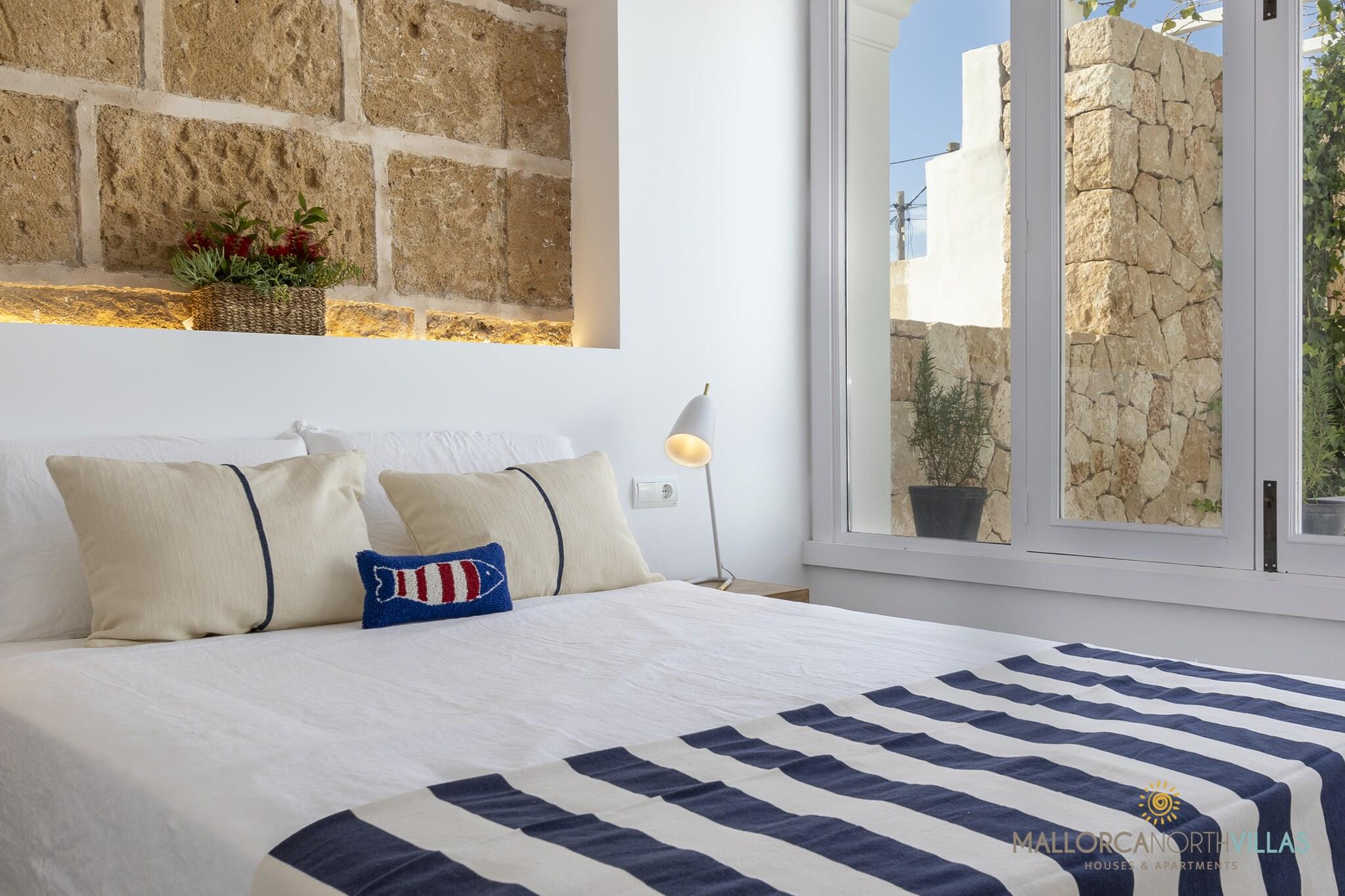 Villaen i Alcudia har 4 soverom og plass til 6 personer. Innkvartering på 210 m² smakfullt innredet og er veldig lys, ligger på stranden, den har vannkanten. Eiendommen ligger 0 m t-banestasjon, 650 m fra restauranten "Restaurante Red Rum", 2 km busstasjon "Centre historic", 2 km by "Alcudia", 2 km supermarked "Trady"s Supermercados", 3 km sandstrand "Playa de s"Albufereta", 3 km steinstrand "Platja de san Joan", 4 km badeland "Hidropark", 7 km golfbane "Golf Alcanada", 16 km togstasjon "Tren Sa Pobla", 60 km flyplass "Aeropuerto de Palma de Mallorca" og den ligger i en rolig sone og ved siden av havet. Boligen er utstyrt med følgende elementer: hage, utemøbler, terrasse, vaskemaskin, tørketrommel, strykejern, internett (Wi-Fi), hårføner, luftkondisjonering, privat svømmebasseng, TV. Kjøkkenet er utstyrt med kjøleskap, mikrobølgeovn, stekeovn, fryser, oppvaskmaskin, servise/bestikk, kjøkkenutstyr, kaffetrakter, brødrister, vannkoker og juicer.