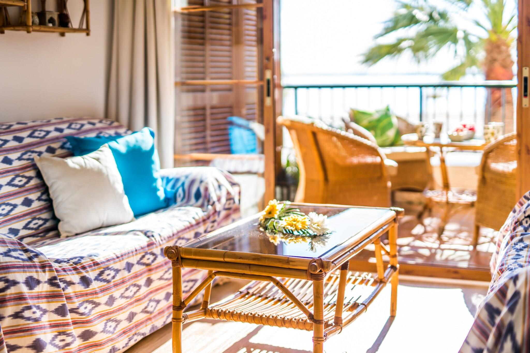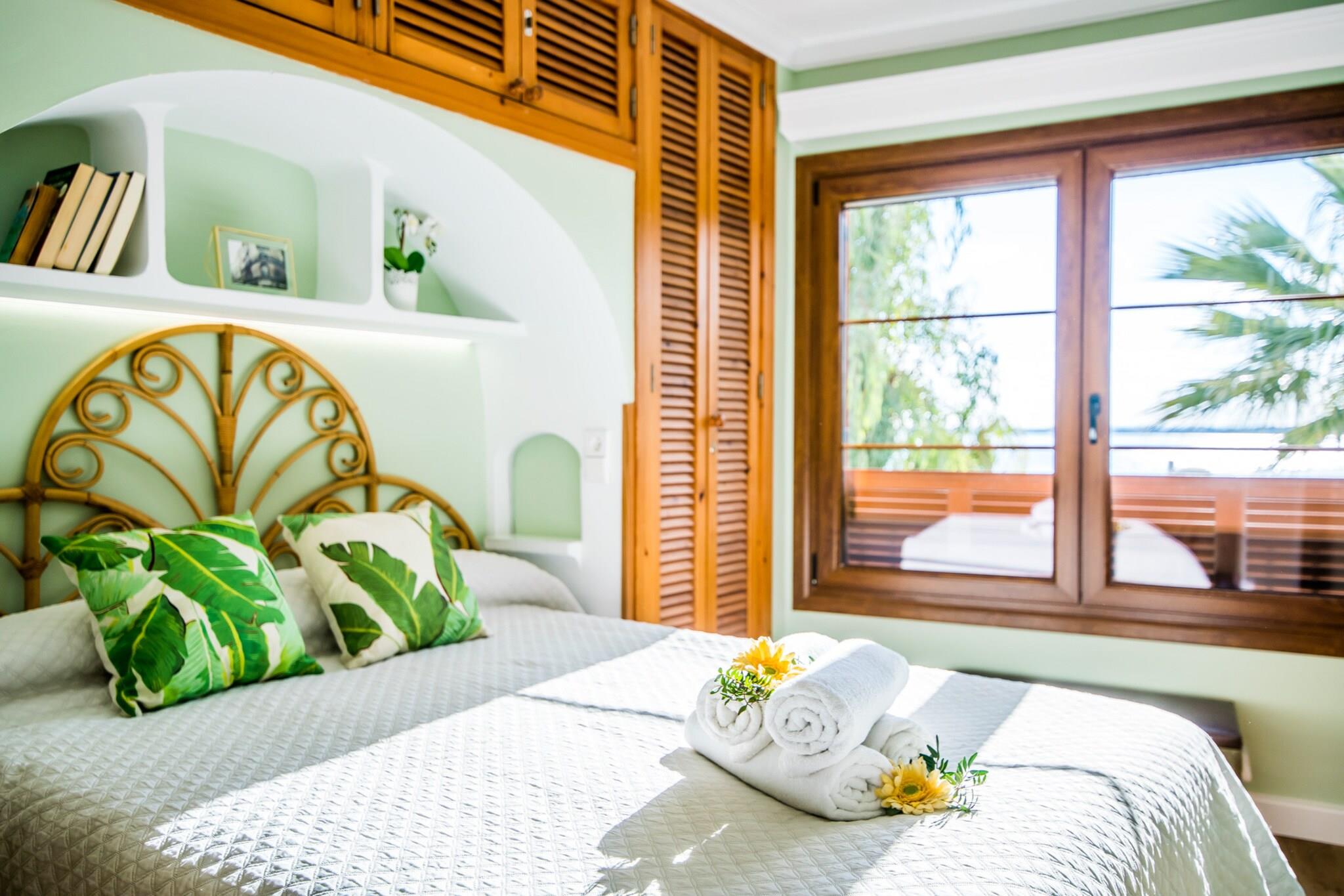 Denne koselige leiligheten i hjertet av havnen i Alcudia tilbyr en fantastisk beliggenhet med fantastisk havutsikt. Bare noen skritt fra den lange, vakre stranden i Alcudia, er leiligheten omgitt av en sjarmerende promenade med utmerkede restauranter, kafeer og butikker, noe som gjør den til en ideell base for å utforske området. Nylig renovert leilighet har to komfortable soverom: ett med dobbeltseng og fantastisk havutsikt, og det andre med to enkeltsenger. Det inkluderer også et moderne bad med dusj, et separat toalett og et fullt utstyrt kjøkken for alle dine kulinariske behov. Den romslige stue-spisestuen er et innbydende område hvor du kan slappe av og nyte utsikten, med direkte tilgang til en nydelig terrasse møblert med bord og stoler. Begge soverommene og stuen er utstyrt med klimaanlegg for å sikre komfort under hele oppholdet, og Wi-Fi er også tilgjengelig for din bekvemmelighet. Som en del av komplekset har du tilgang til to fellesbassenger, inkludert et stort og et lite basseng for barn, alle omgitt av solsenger og et gressområde, eksklusivt for beboere. Med alt du trenger for en perfekt ferie, tilbyr denne leiligheten en flott mulighet til å nyte det beste av Mallorca uten behov for bil. Enten du slapper av ved bassenget, tar en spasertur langs stranden eller utforsker det pulserende området Alcudia, er denne leiligheten det ideelle stedet for en avslappende og praktisk ferie.