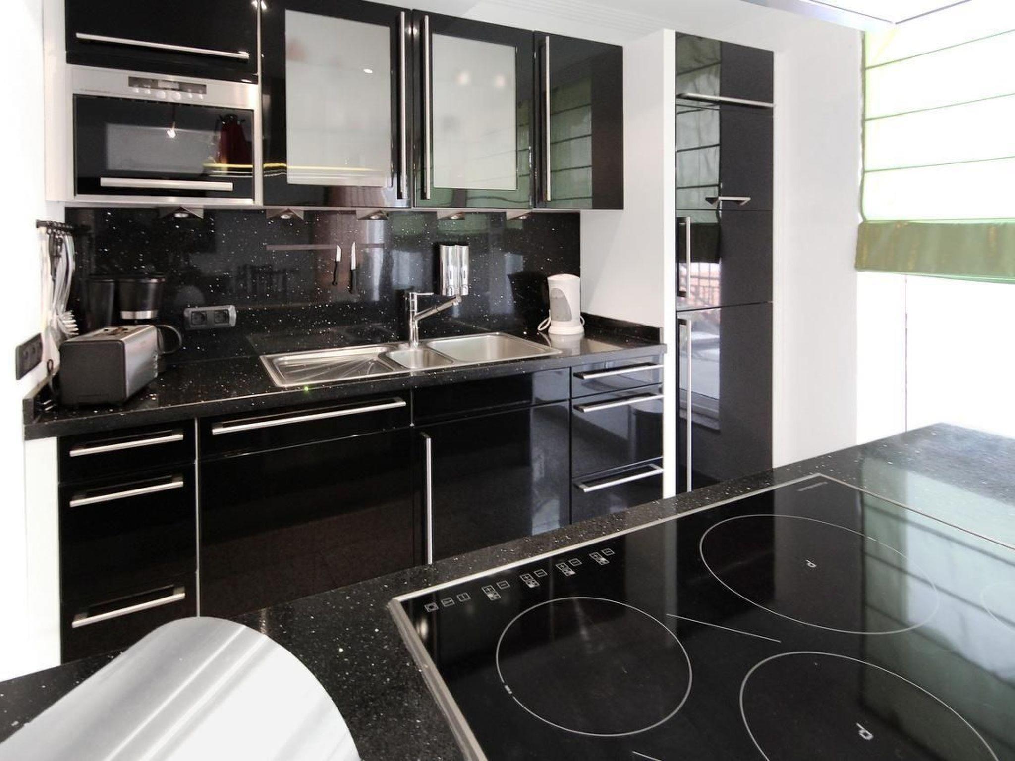 Inside, you will find an open-plan living area that combines an intelligent room layout with a stylish and modern American kitchen. The living area is tastefully furnished with a comfortable sofa set that invites you to relax and a dining table that seats up to six people. The kitchen is equipped to the highest standard - ceramic hob, free-standing work island, counter, oven, large fridge, dishwasher and coffee machine leave no culinary wishes unfulfilled. The bedroom offers a relaxing retreat with a comfortable double bed (1.80 x 2.00 m) and a large wardrobe. The adjoining bathroom pampers you with a shower, WC, bidet, urinal as well as bath towels, hand towels and bathrobes.