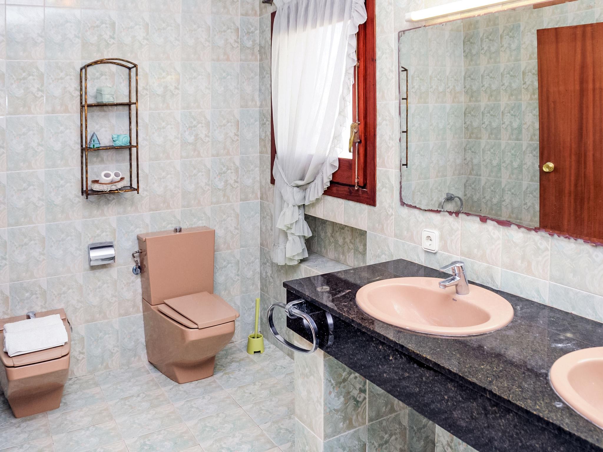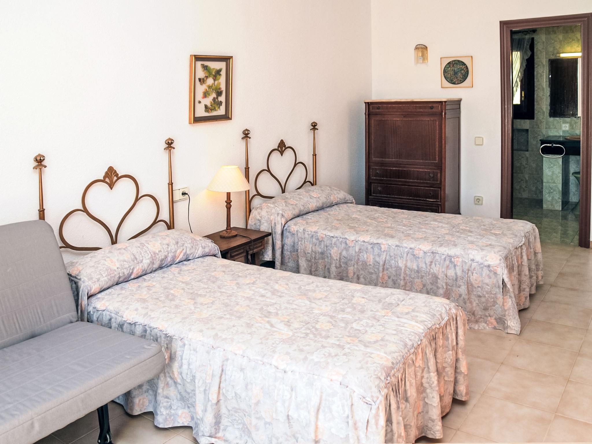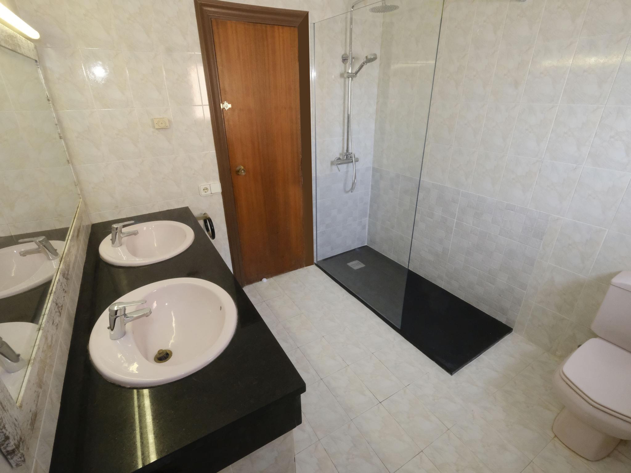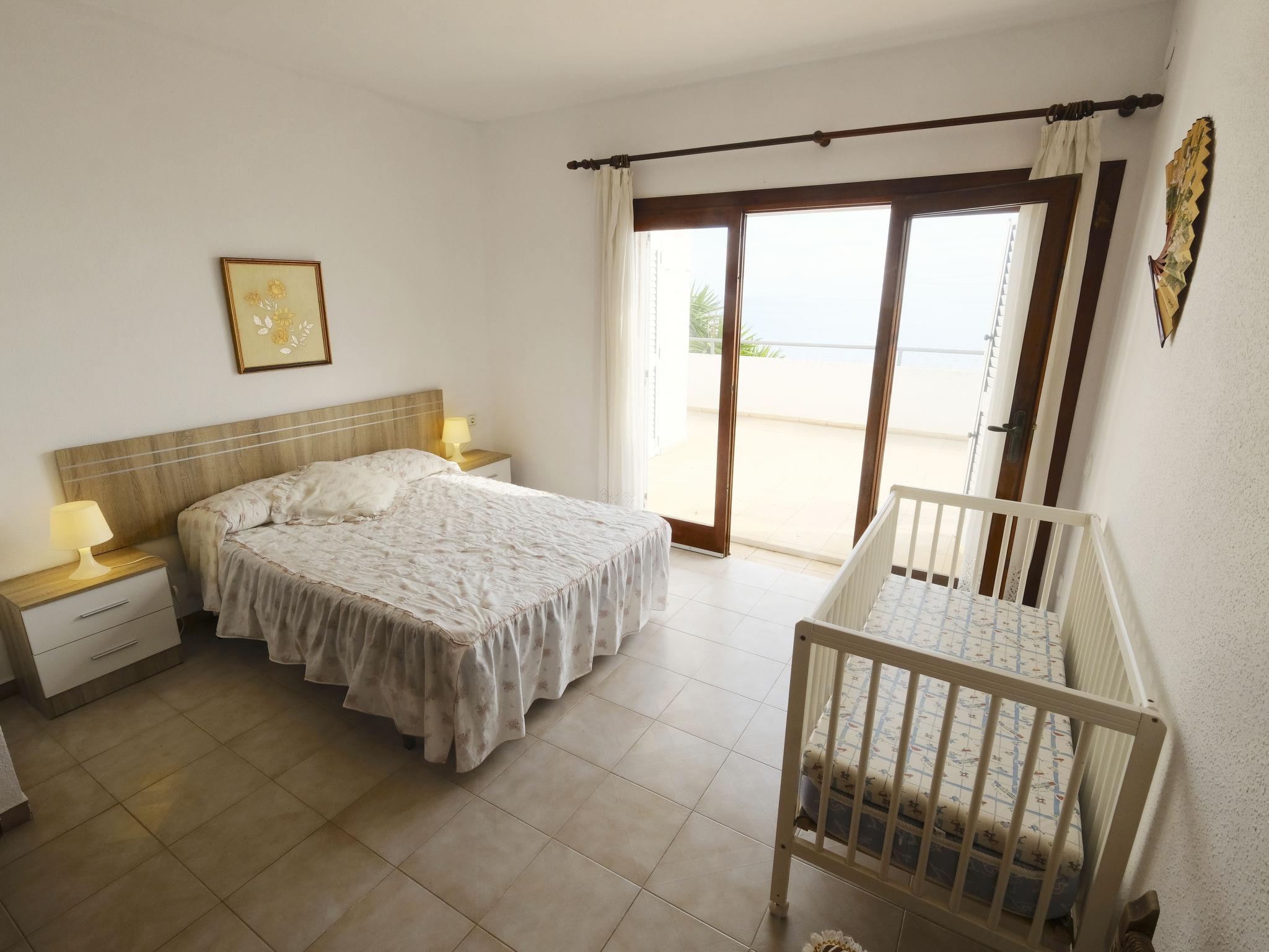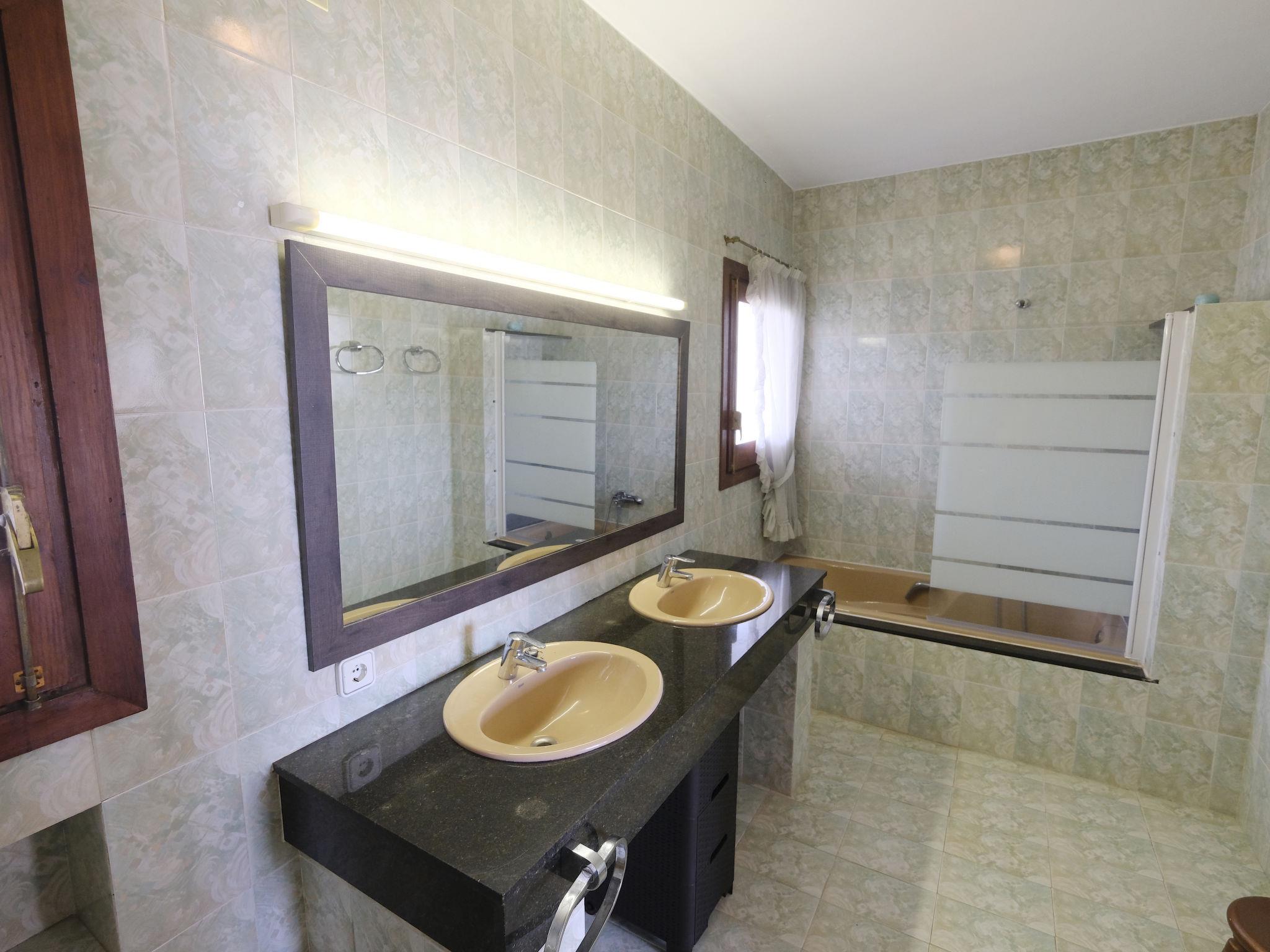"Urb.Maricel", 4-room terraced house 225 m2. Spacious, cosy furnishings: living/dining room with 1 double sofabed (1 x 140 cm, length 190 cm), digital TV. Exit to the terrace. Kitchen (4 hot plates, oven, dishwasher, microwave, freezer). Exit to the patio. Sep. WC. No heating option. Upper floor: 1 room with 1 french bed (1 x 135 cm, length 185 cm). Exit to the balcony. 1 room with 1 double bed (1 x 135 cm, length 190 cm). Exit to the balcony. 1 room with 2 beds (90 cm, length 180 cm), 1 sofabed (140 cm, length 180 cm). Exit to the balcony. Bath/bidet/WC, shower/bidet/WC. Terrace furniture, barbecue (portable), deck chairs (5). View of the sea. Facilities: washing machine, baby cot for up to 2 year olds. Internet (WiFi, free). Parking (3 cars). Suitable for families. Maximum 1 small pet/ dog allowed. Iron. 75 litre boiler. HUTTE-002104 // Reg. Nr.: ESFCTU0000430110000607220000000000000000HUTTE-0021042