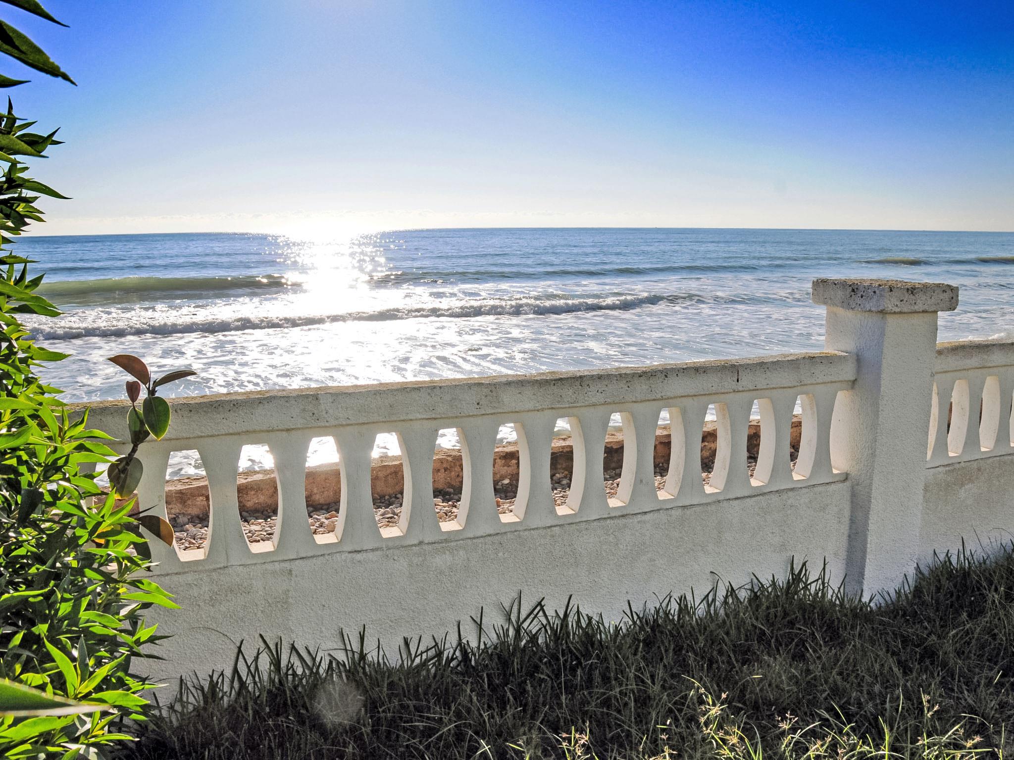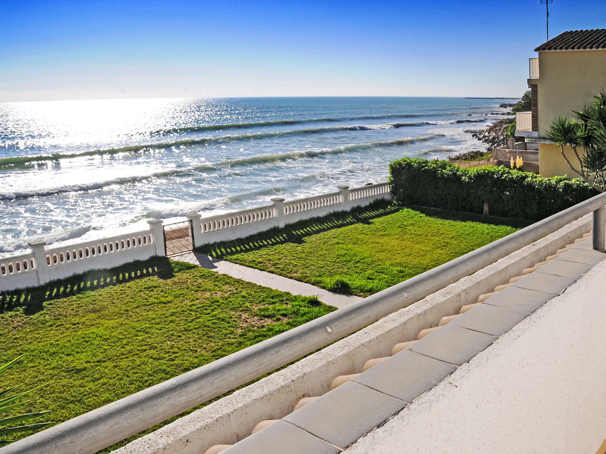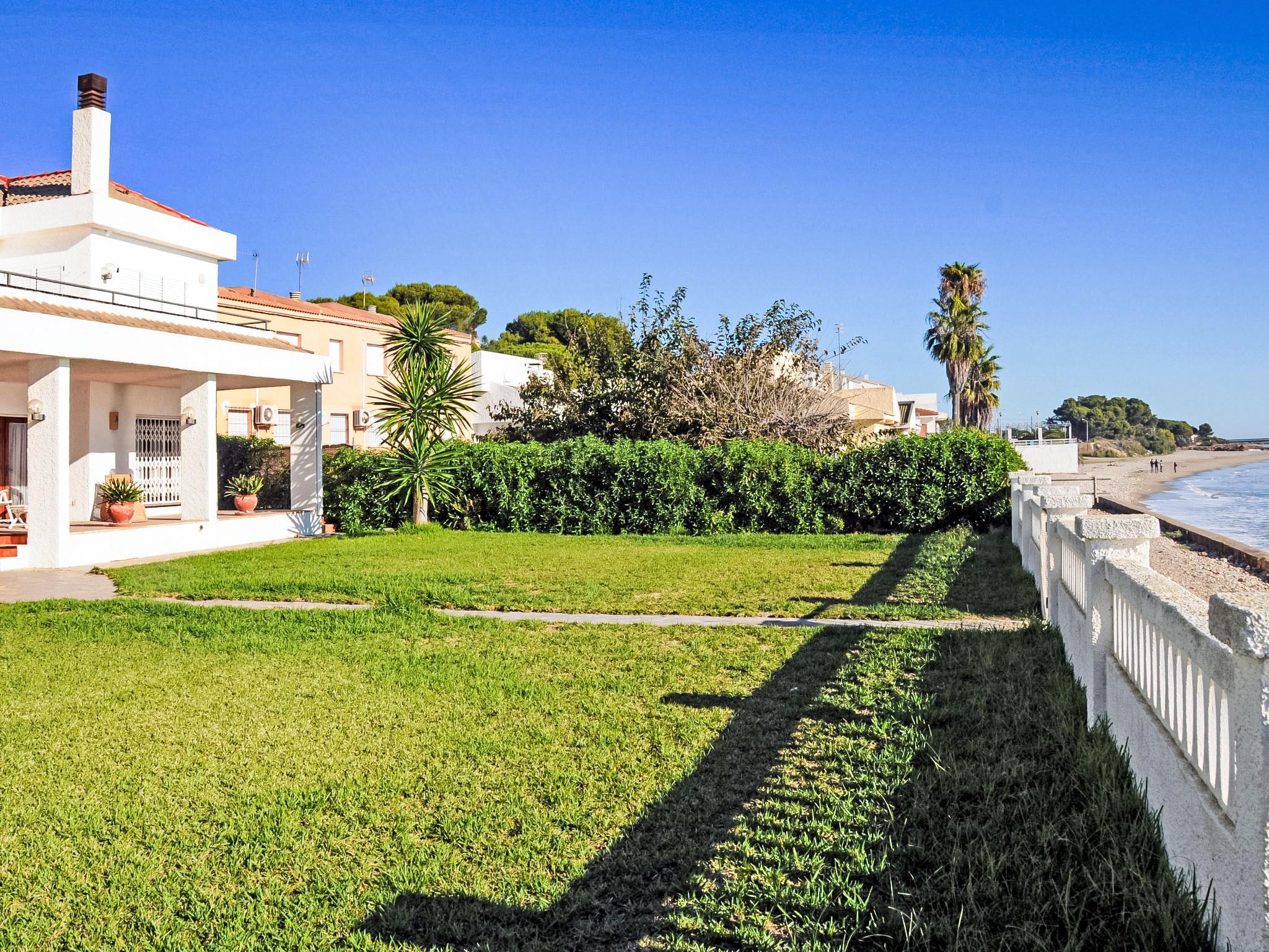 Urb. Maricel: Is a property with two terraced houses (in which one lives the owner) right next to the sea. Cosy terraced house "Urb Maricel", 2 storeys, semi-detached. 30 m from the sea. Private: garden 400 m2 (not fenced). Terrace (40 m2), parking at the house. Grocery 1.5 km, restaurant 100 m, bus stop "Barcelona Airport" 100 km, pebble beach 50 m. Sports harbour 2 km, marina 2 km, golf course (20 hole) 18 km, surf school 2 km, sailing school 2 km, tennis 1 km, sports centre 2 km, children's playground 2 km. Nearby attractions: Port Aventura 85 km, Parque Natural del Delta 16 km, Peñiscola 40 km. Hiking paths: La Foradada 12 km. Please note: car recommended. Suitable for families. Groups of teenagers on request only. The owner lives on the same property. Main road close by.