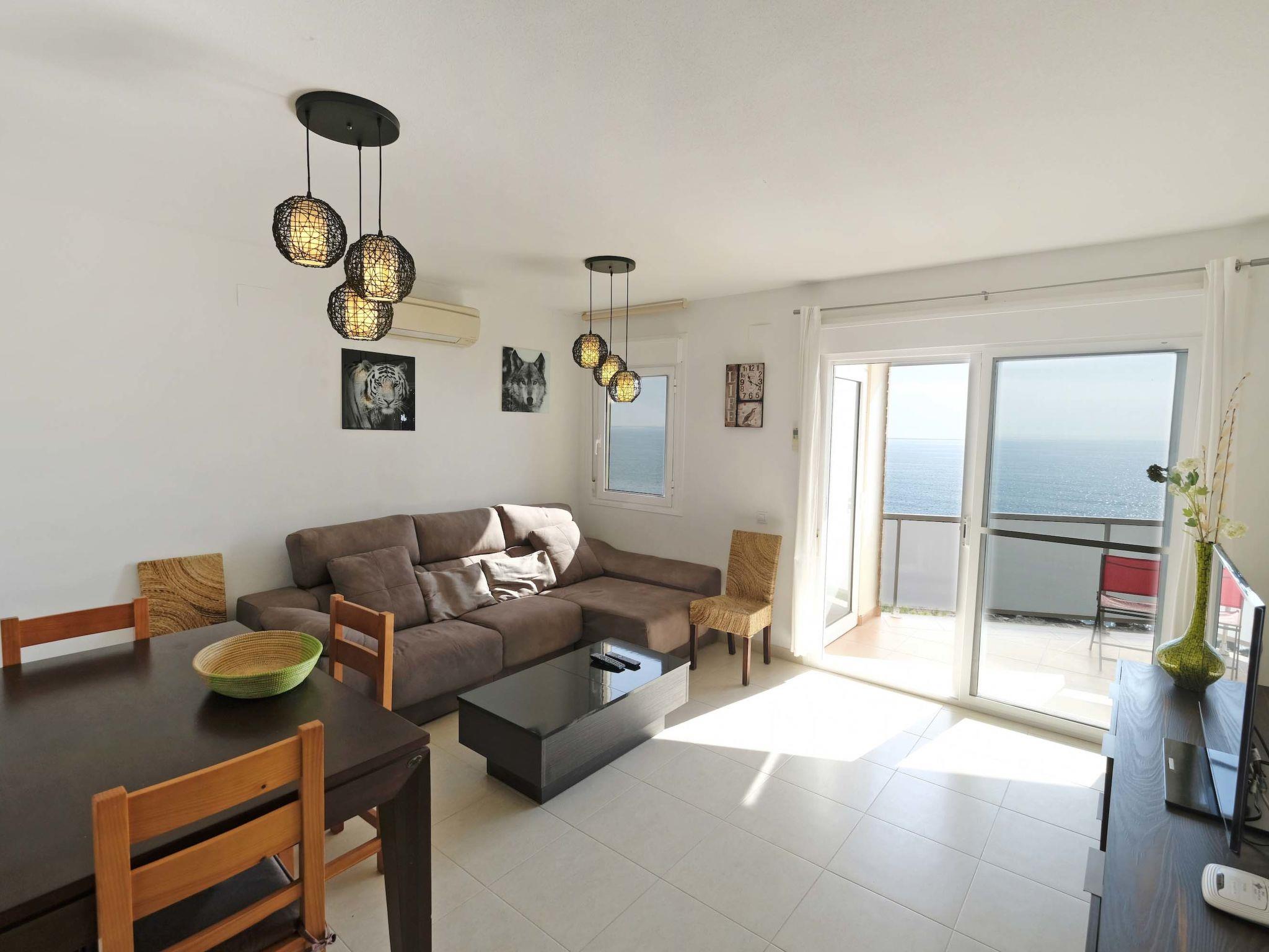 "Ona de Mar", 4-room penthouse 85 m2 on 2nd floor. Spacious, partly with sloping ceilings, comfortable and cosy furnishings: living/dining room with air conditioning. Exit to the balcony. 1 room with 1 double bed (1 x 150 cm, length 190 cm). Exit to the balcony. 1 room with 1 double bed, bath/bidet/WC and air conditioning. Open kitchen (oven, dishwasher, 4 ceramic glass hob hotplates, microwave, freezer, electric coffee machine). Shower/WC. Upper floor: 1 open room. Exit to the balcony. Shower/WC. HUTTE002956 // Reg. Nr.: ESFCTU00004301100012549000000000000000000HUTTE0029568