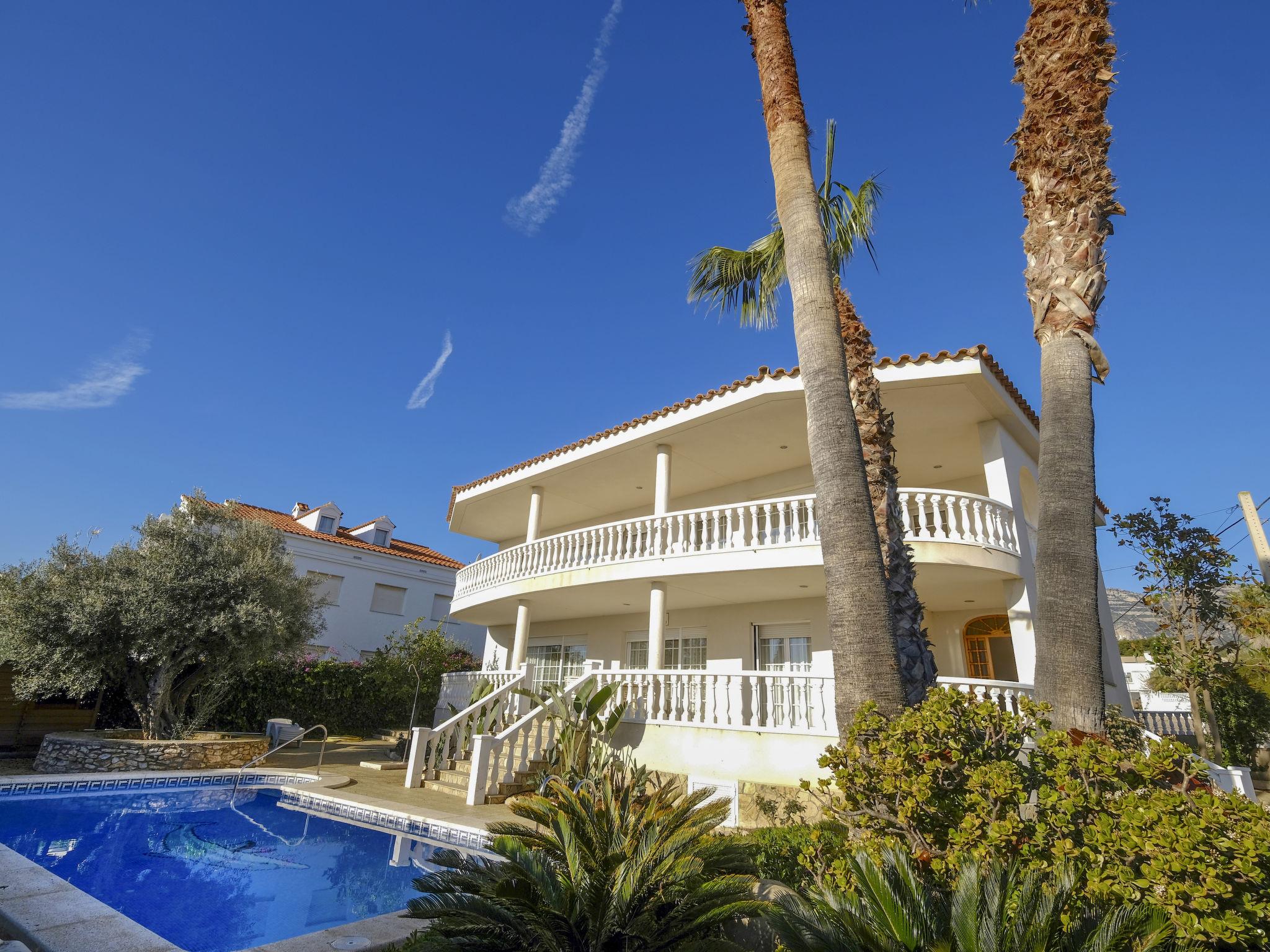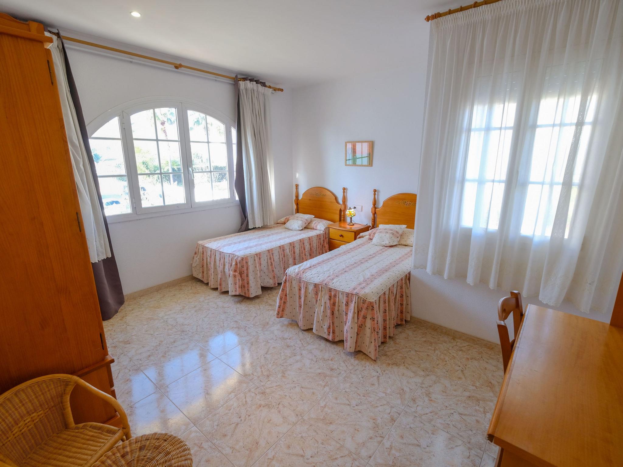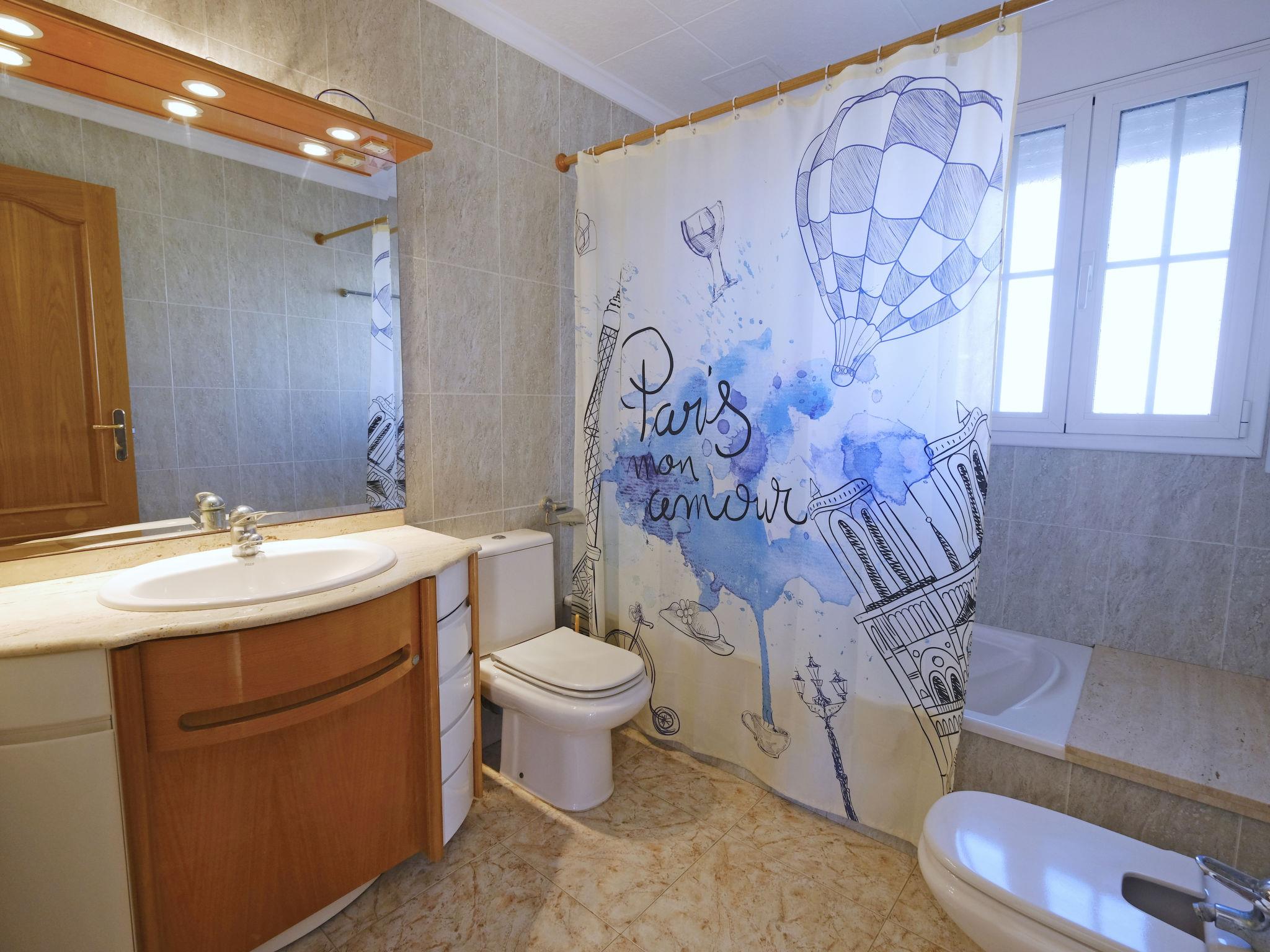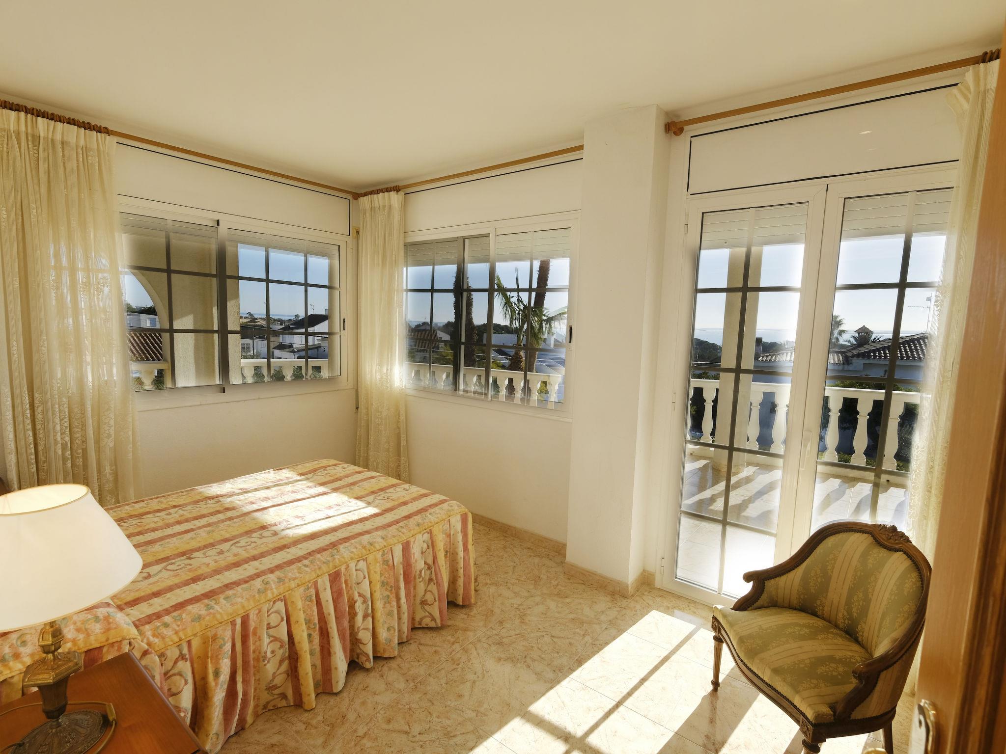 "Sofía", 7-room villa 260 m2 on 2 levels. Simple and rustic furnishings: living/dining room with digital TV. Exit to the balcony. 1 room with 1 french bed (1 x 135 cm, length 190 cm). Exit to the balcony. Large kitchen (5 hot plates, dishwasher, microwave, freezer, grill, electric coffee machine) with dining table. Shower/bidet/WC. Boiler (100 litres). No heating option. Upper floor: 1 room with 2 beds (90 cm, length 190 cm). 1 room, without wardrobe with 1 french bed (1 x 135 cm, length 190 cm). Exit to the balcony. 1 room with 1 french bed (1 x 135 cm, length 190 cm). Exit to the balcony. 1 room with 2 beds (90 cm, length 190 cm). 1 room with 1 french bed (1 x 135 cm, length 190 cm). 2 baths/bidet/WC. Patio. Barbecue, deck chairs (5). Facilities: washing machine, iron, children's high chair, baby cot for up to 2 year olds, hair dryer. Internet (WiFi, free). Parking (1 car). Please note: no lift. HUTTE000738 // Reg. Nr.: ESFCTU00004301100010167800000000000000000HUTTE0007384