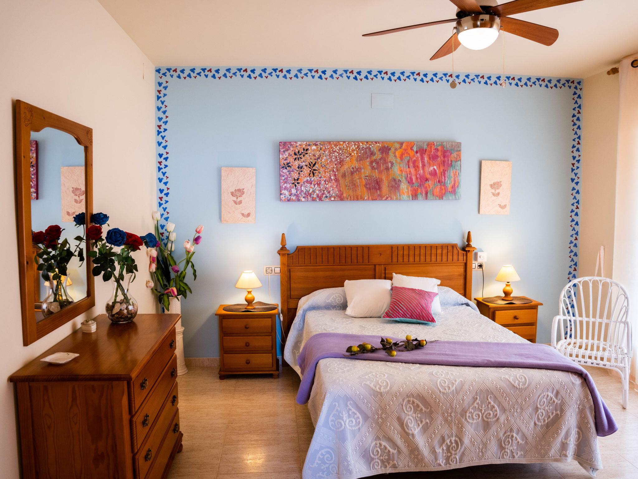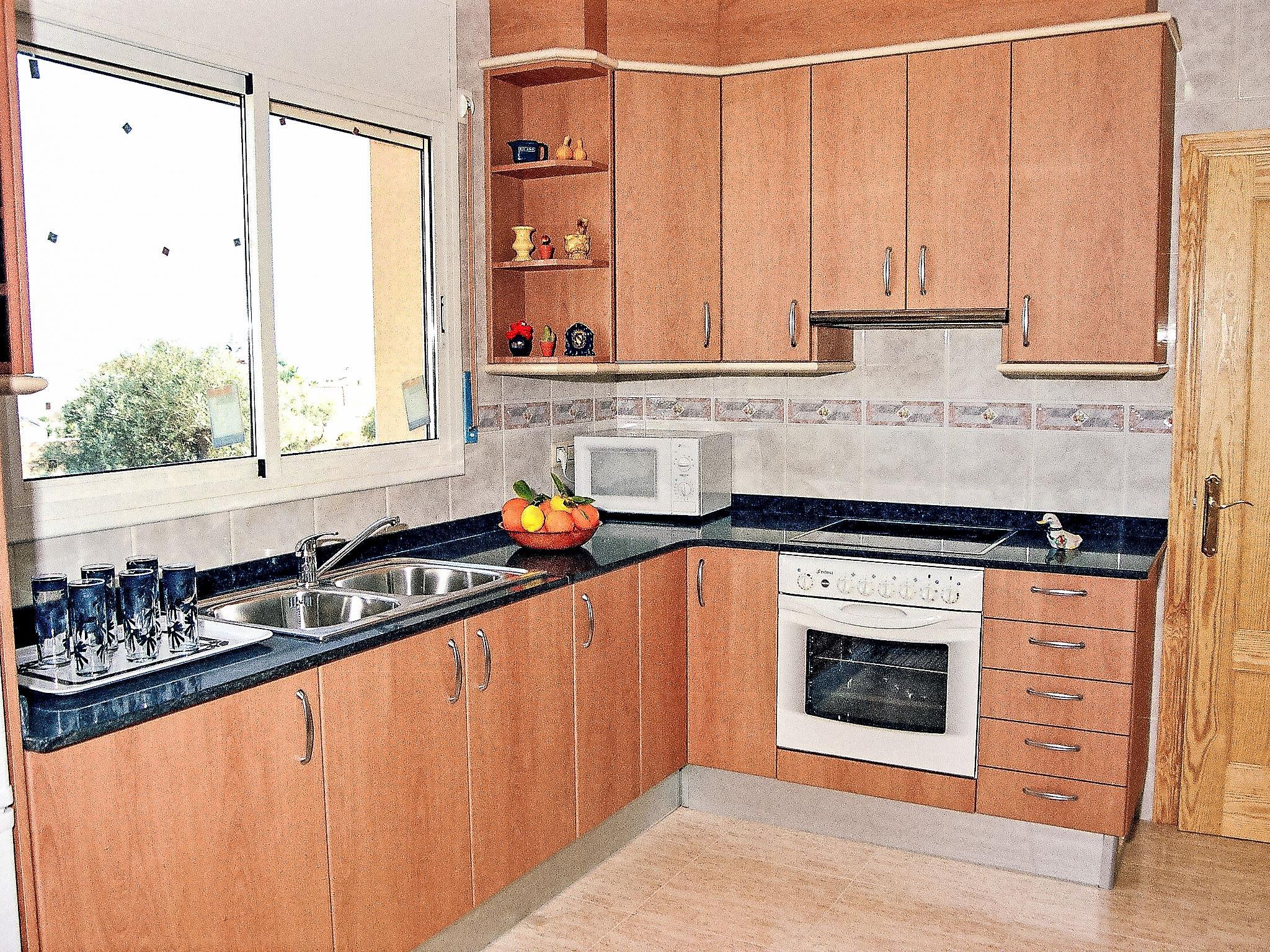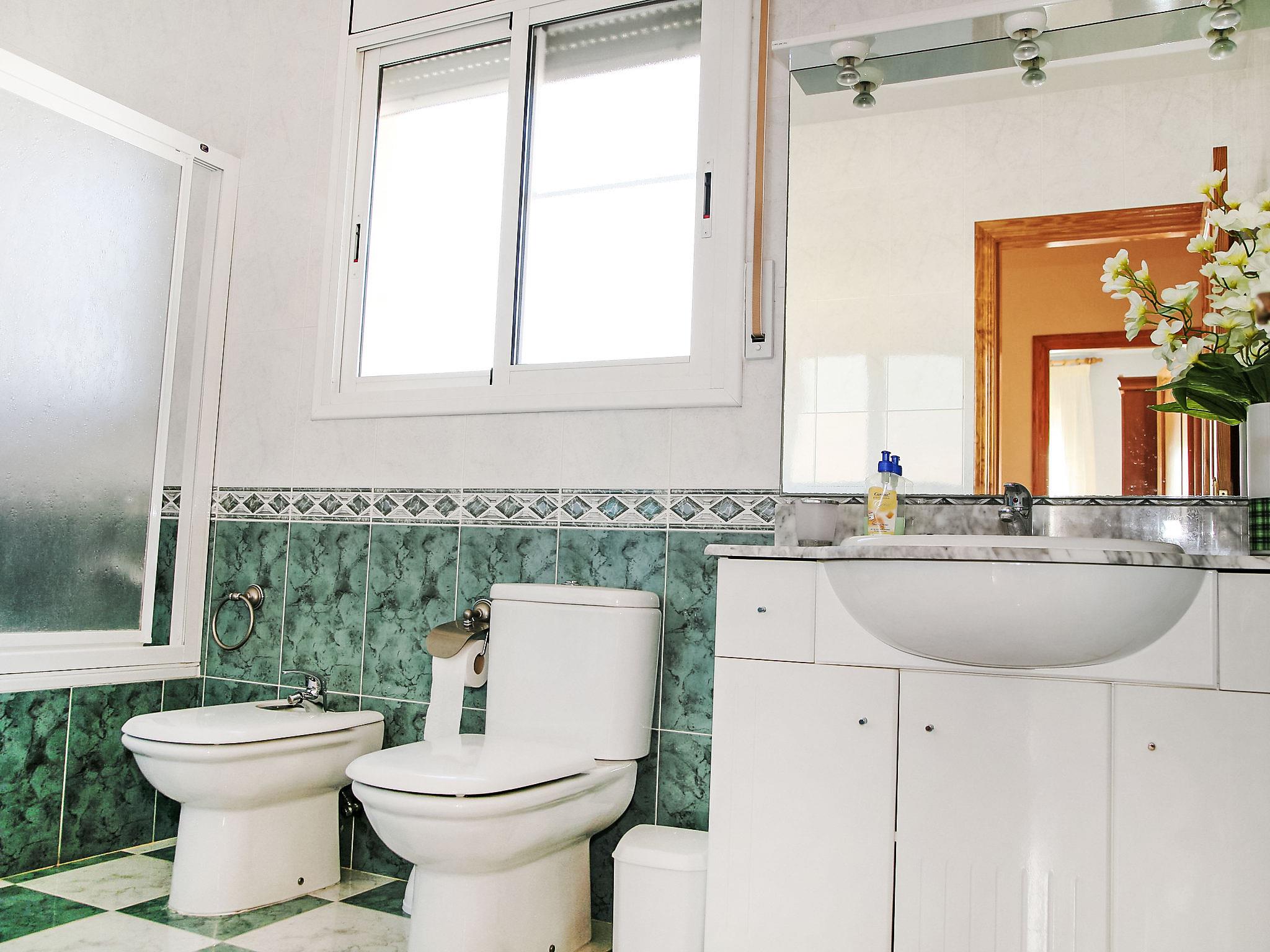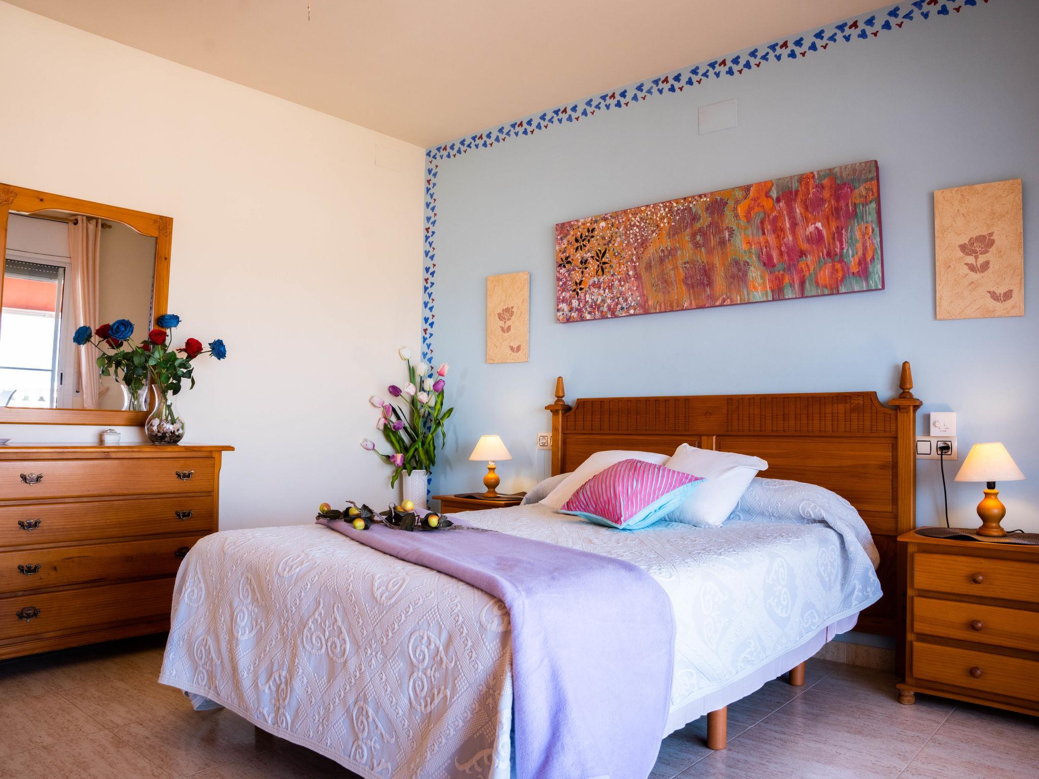 5-room house 143 m2. Comfortable furnishings: living/dining room 25 m2 with dining table, satellite TV, digital TV and flat screen. Exit to the swimming pool. 1 room with 2 beds (90 cm, length 180 cm). 1 room with 1 french bed (135 cm, length 190 cm). Open kitchen (4 hot plates, oven, dishwasher, microwave, freezer, electric coffee machine). Shower/WC. No heating option. Upper floor: 1 room with 1 french bed (135 cm, length 190 cm). Exit to the terrace. 1 room with 1 bed (90 cm, length 190 cm), 1 x 2 bunk beds (90 cm, length 190 cm). Bath/bidet/WC. Terrace 8 m2, porch 10 m2. Terrace furniture, barbecue, deck chairs (5). Distant view of the sea and the mountains. Facilities: washing machine, iron, mosquito net. Internet (WiFi, free). Parking (fenced 2 cars). Access to the upper floor via 16 steps. In the kitchen there are two refrigerators. The 4 rooms and the living-dining room have ceiling fans. HUTTE001267 // Reg. Nr.: ESFCTU00004301100011759400000000000000000HUTTE0012672