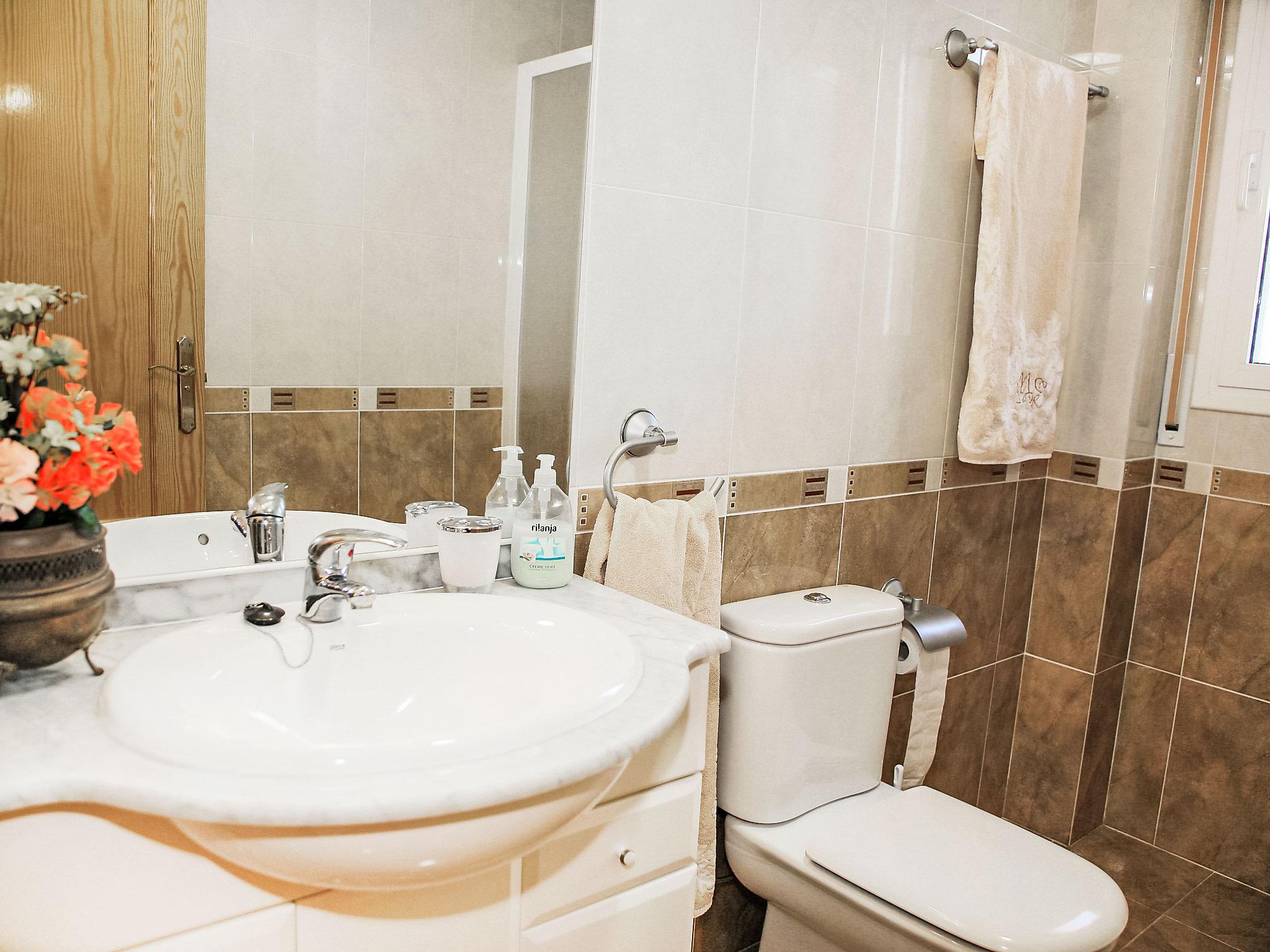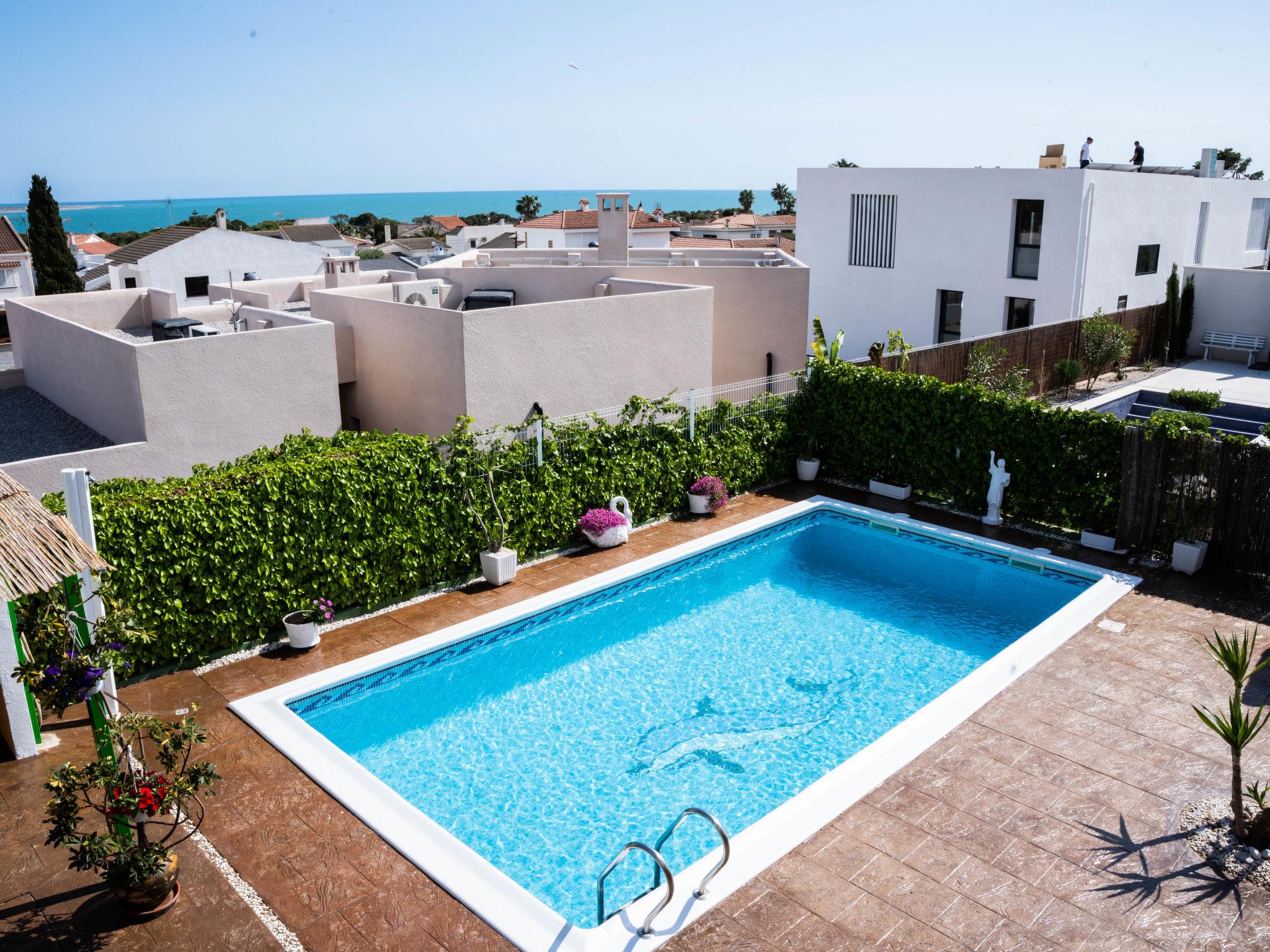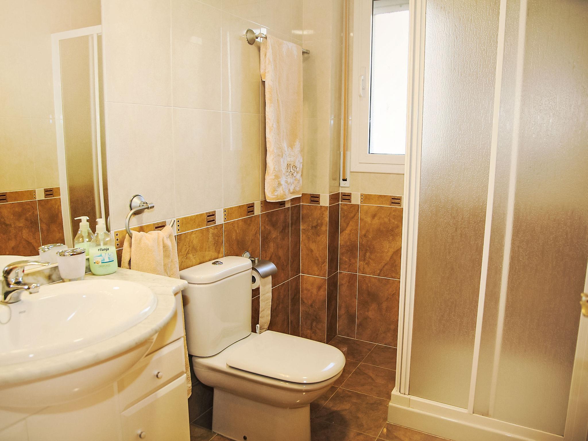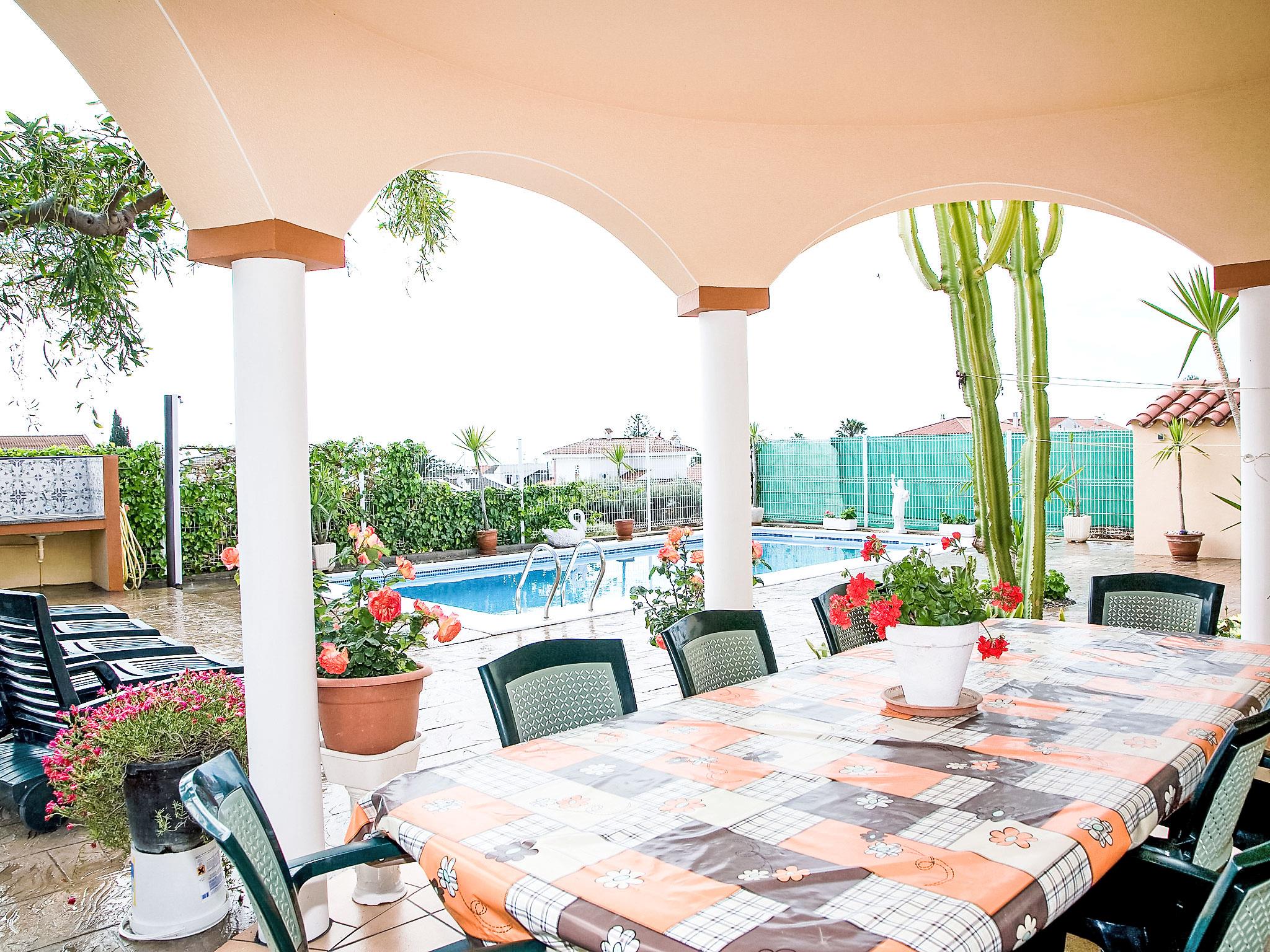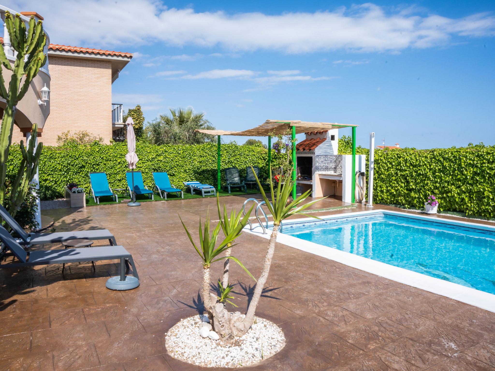 Alcanar: House "Mestral", 2 storeys, built in 2004. Outside the resort, 2 km from the centre of St.Carles de la Ràpita, 1.5 km from the sea. Private: property 451 m2 (fenced), swimming pool angular (4 x 8 m, depth 150 - 200 cm, seasonal availability: 29.Mar. - 01.Dec.) with salt-electrolysis pool-cleaning system. Outdoor shower. In the house: WiFi. Parking (for 2 cars). Supermarket 1.5 km, restaurant 100 m, bus stop 800 m, sandy beach 1.5 km pebble beach 300 m. Golf course (18 hole) 20 km, surf school 3 km, tennis 100 m. Nearby attractions: Parque Natural del Delta del Ebro 11 km, Peñíscola 20 km. The owner does not accept any youth groups. The outdoor shower is warm and cold water.