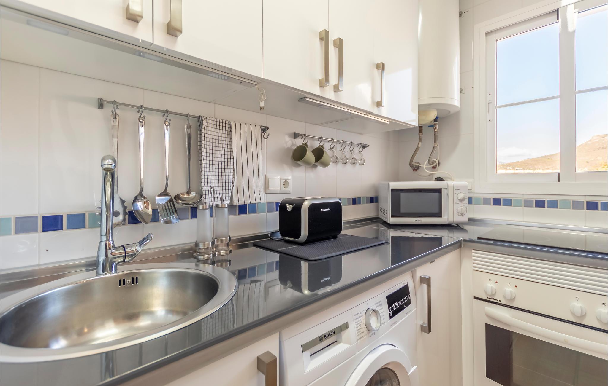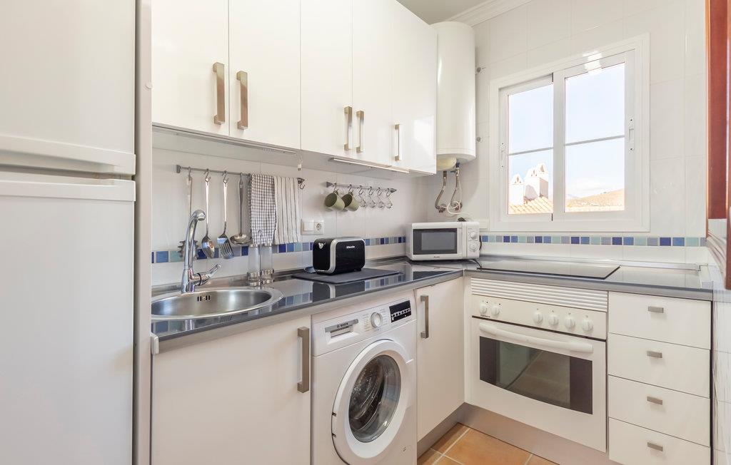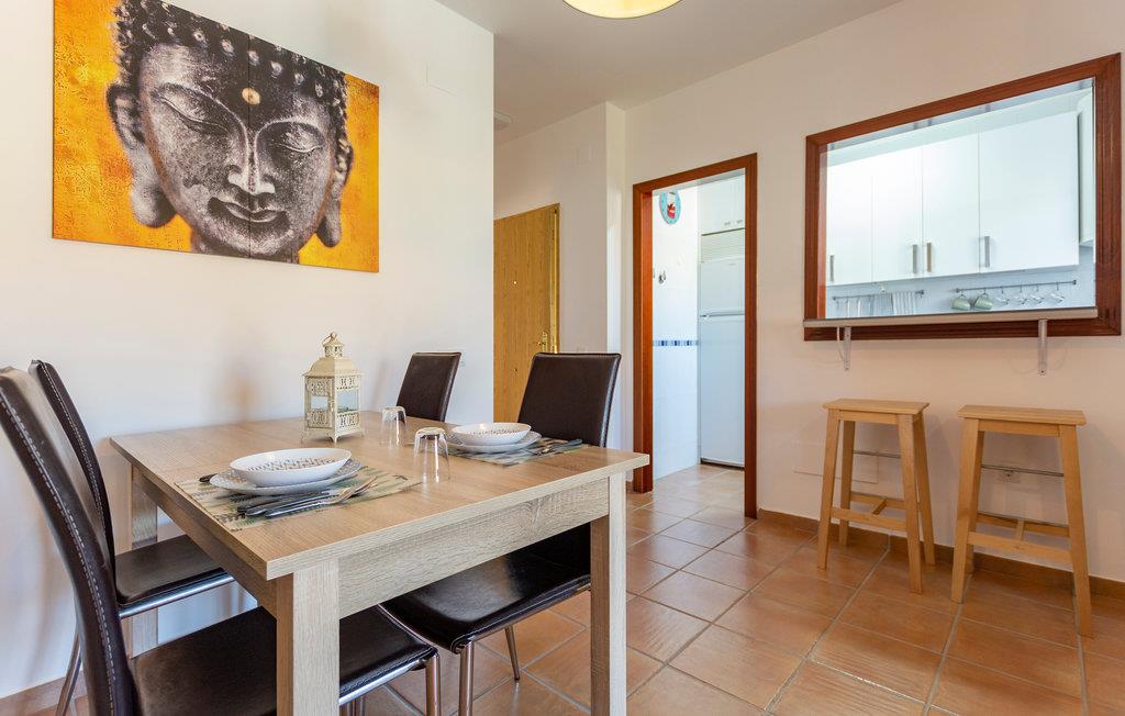 Etter en flott dag ute kan du slappe av og koble av. Kanskje du vil slappe av i stuen og se på TV, sole deg på stranden eller kanskje du vil unne deg litt deilig mat på den lokale restauranten? Det finnes også flere butikker og shoppingmuligheter i landsbyen, bare 300 meter fra leiligheten. Oppdag det regionale kjøkkenet og gled deg til nye gastronomiske opplevelser, eller du kan lage mat selv. På terrassen har du en fantastisk utsikt over havet og kan virkelig nyte livet. Her kan du nyte et koselig måltid og et glass vin i solnedgangen eller glede deg til neste dag.