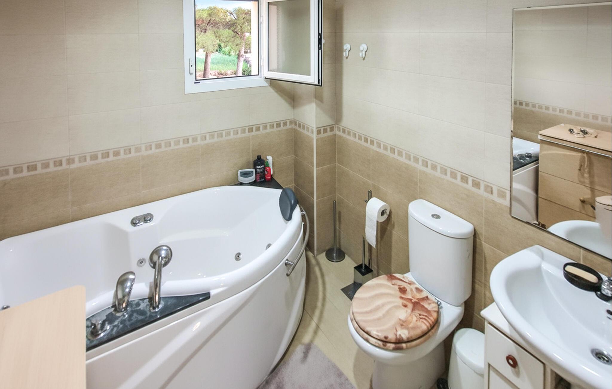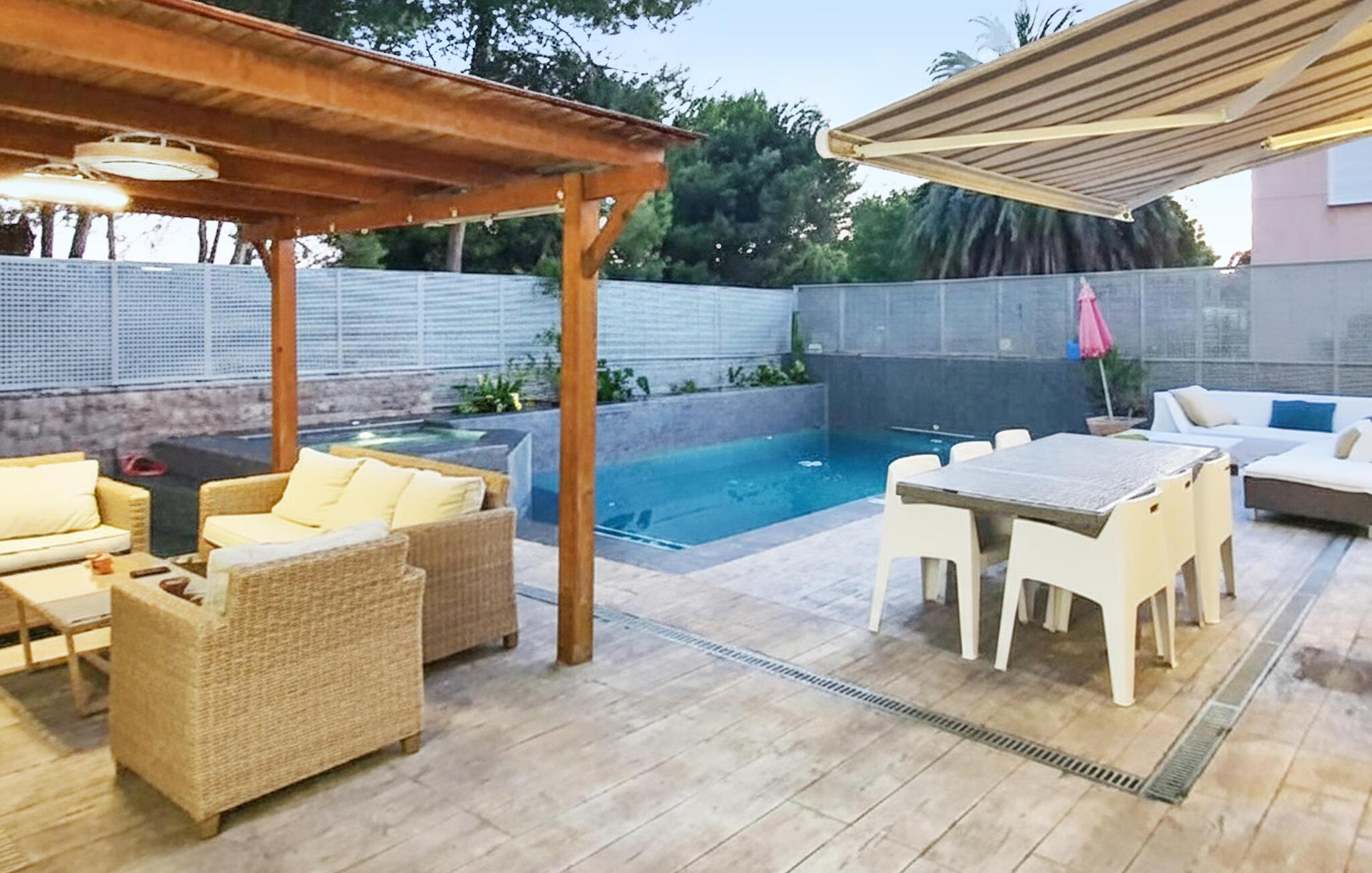 Unn deg en avslappende ferie i dette komfortable feriehuset med basseng og boblebad.
