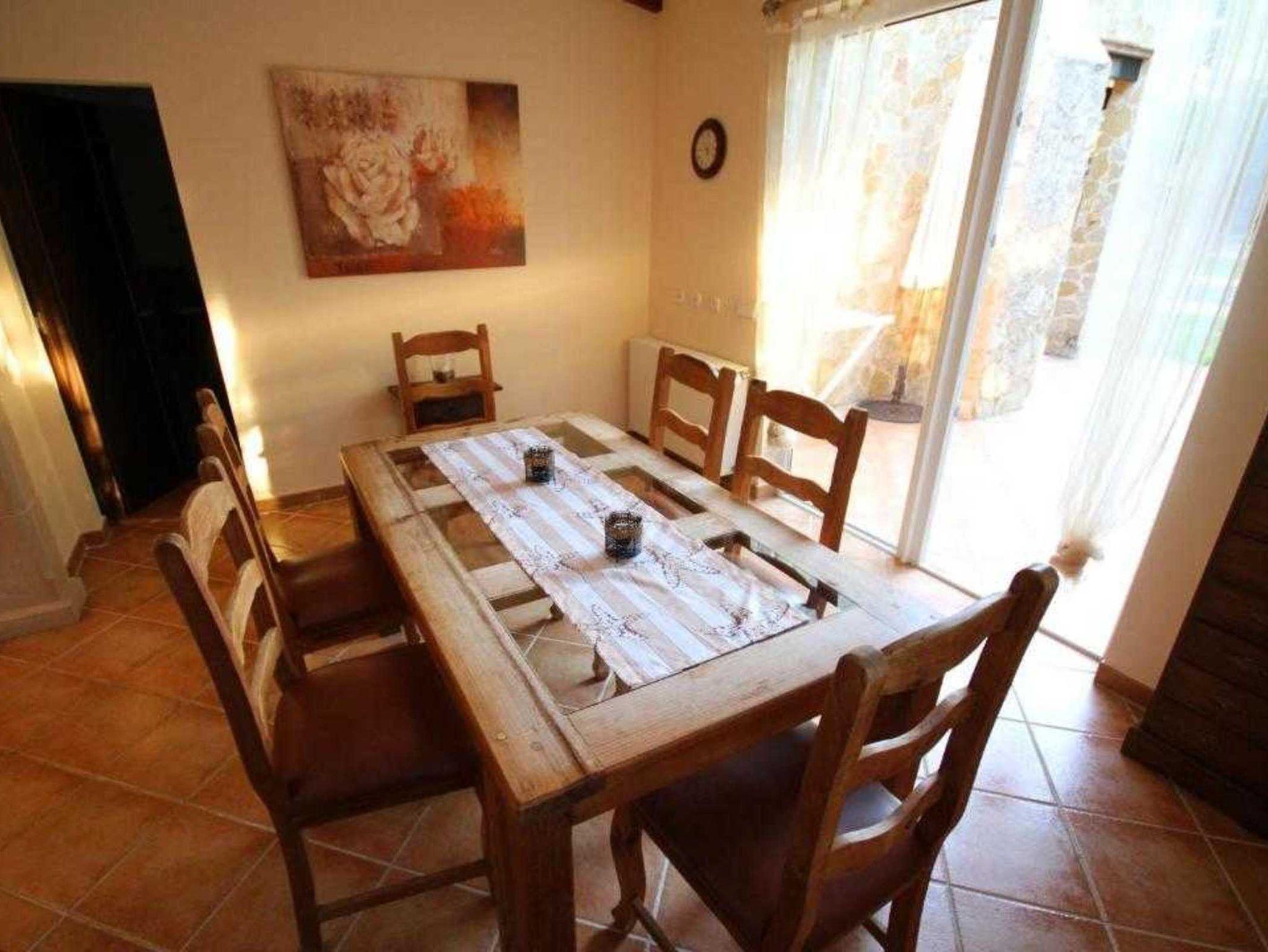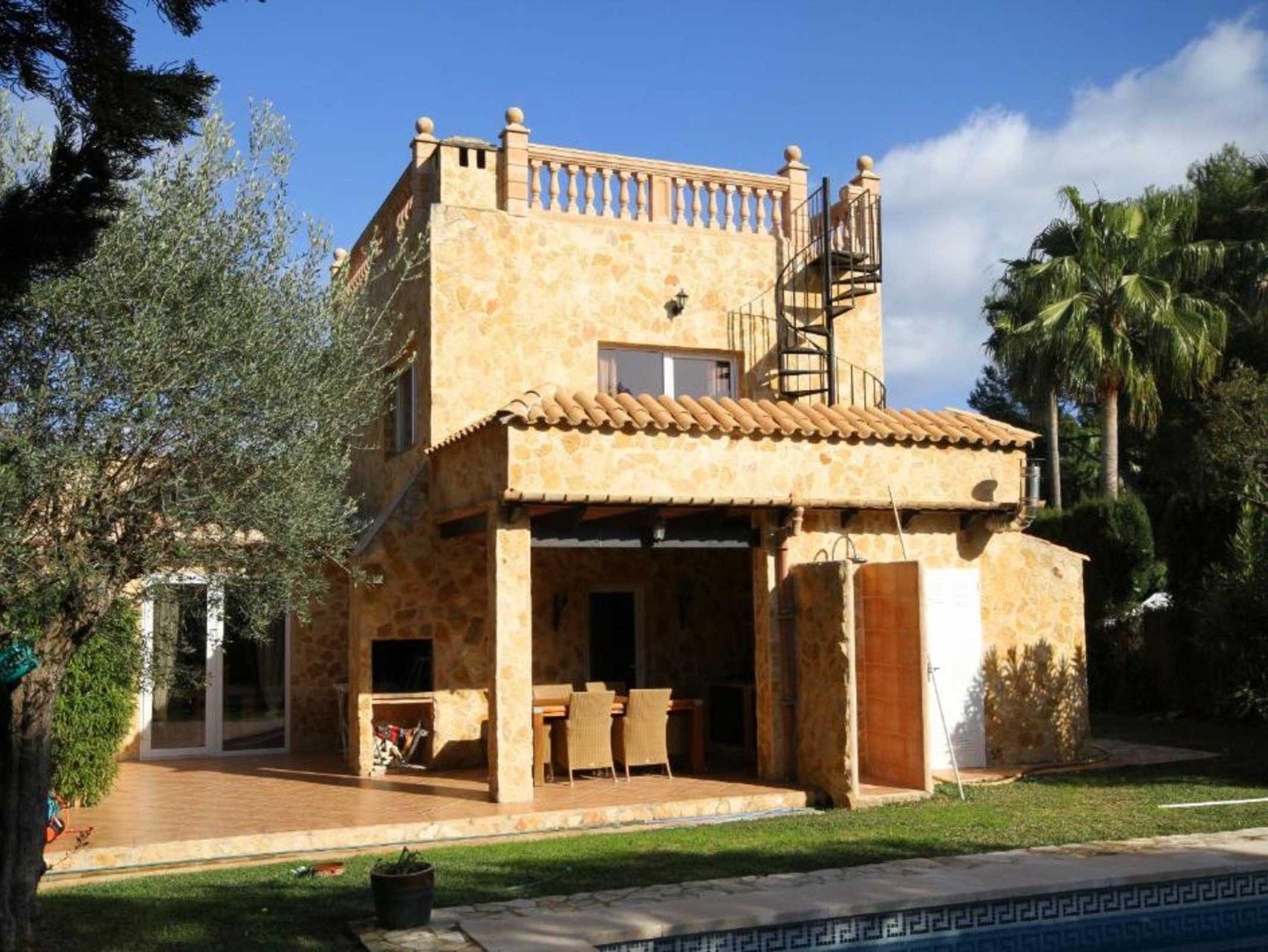 Die Finca besteht aus einem geräumigen Wohnzimmer mit Kamin, 3 Schlafzimmern (eines mit integriertem Badezimmer mit Dusche/WC), einem weiteren Bad mit Dusche und WC sowie Waschmaschine, einer voll ausgestatteten Küche mit Geschirrspüler, Ofen und Mikrowelle und einem Esszimmer, an das sich die große Terrasse anschließt, die einen eingebauten Grill und eine überdachte Außenküche hat.