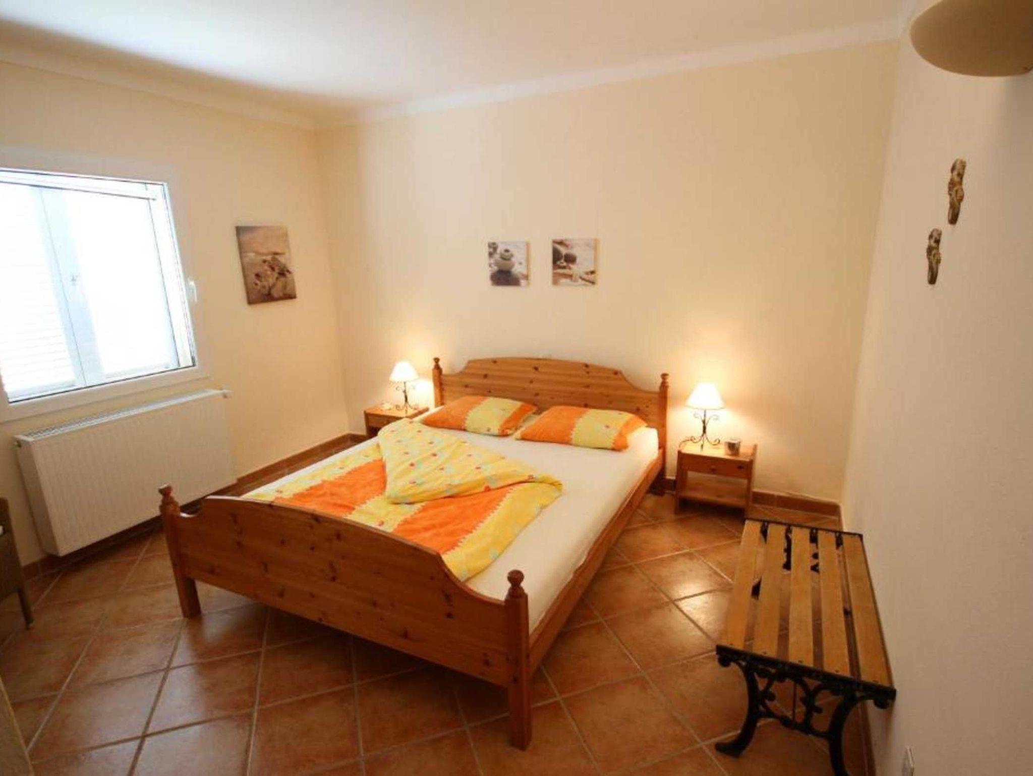 Anbau: Wohnzimmer, 1 Schlafzimmer, Bad mit Dusche u. WC sowie Bad mit Badewanne und zwei Waschbecken, Zugang zu Balkon und Dachterrasse.