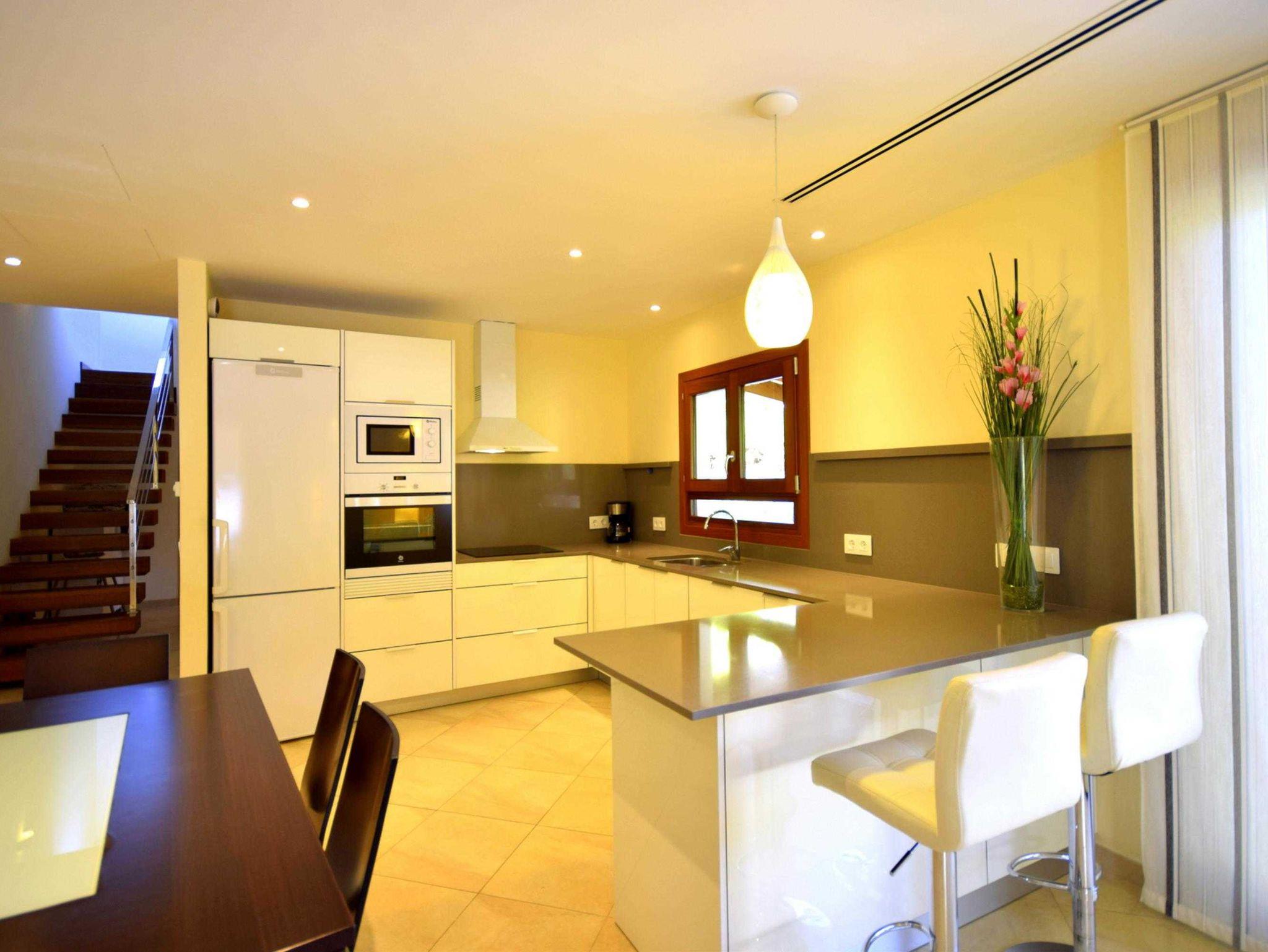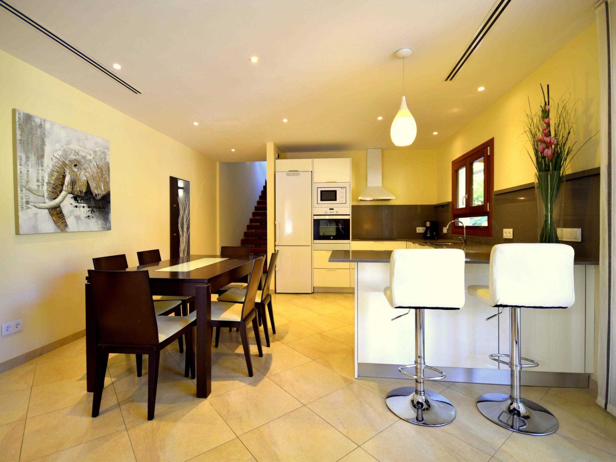 Es ist modern eingerichtet, mit Wohn-Esszimmer, offene, voll ausgestattete Küche, mit allem was man braucht. Der Wohnbereich ist schlicht aber elegant eingerichtet. Im EG findet man zwei von den drei hübschen Doppelzimmern, sowie zwei Bäder.