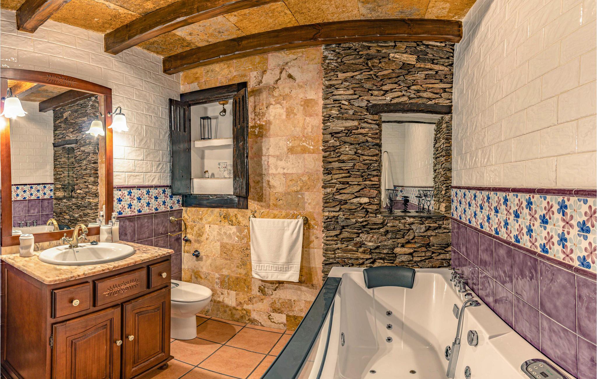 Det innbydende huset ønsker deg velkommen i en drømmeaktig beliggenhet i det pittoreske fjellandskapet i Alpujarra de la Sierra. I de autentisk innredede rommene kan du slappe av i en hjemmekoselig atmosfære. Gamle tretak, upusset murverk og tunge tredører gir interiøret i huset sin rustikke sjarm. Gjør deg komfortabel sammen på sofaen om kvelden, fyr opp peisen og legg planer for neste dag.