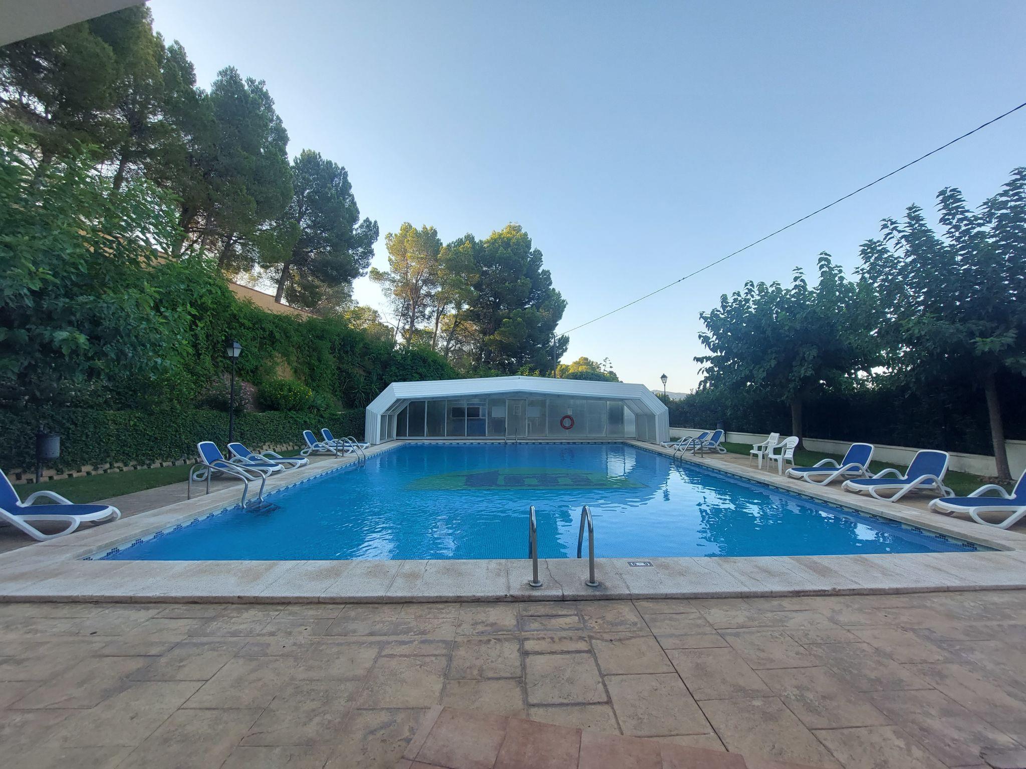 Santa Clara: Beautiful resort "Altea Natura". 2.3 km from the centre of Altea la Vieja, 5 km from the sea. For shared use: swimming pool (18 x 9 m, depth 90 - 180 cm, seasonal availability: 01.May. - 30.Oct.). WC in the pool area, shower/WC in the pool area, outdoor shower. Private: property (fenced), garden. In the house: sauna, fitness room. Supermarket 2 km, restaurant 2 km, bar 2 km, bus stop 2 km, pebble beach 5 km. Sports harbour 5 km, marina 5 km, golf course 3.7 km. Nearby attractions: Aqualandia, Mundomar, Terra Mítica, Terra Natura, y Benidorm Palace (Benidorm). The owner does not accept any youth groups. From October to May, the swimming pool will be covered and heated.