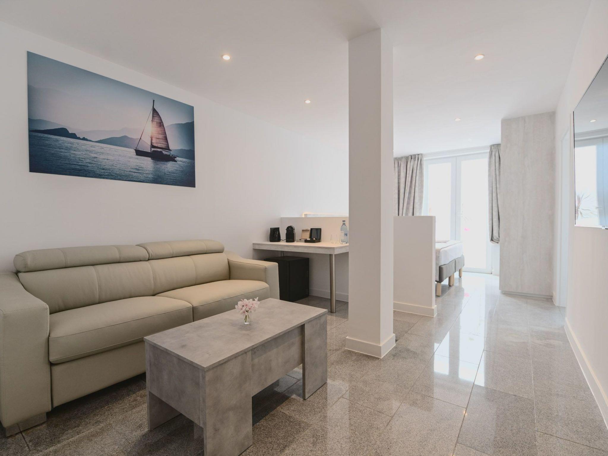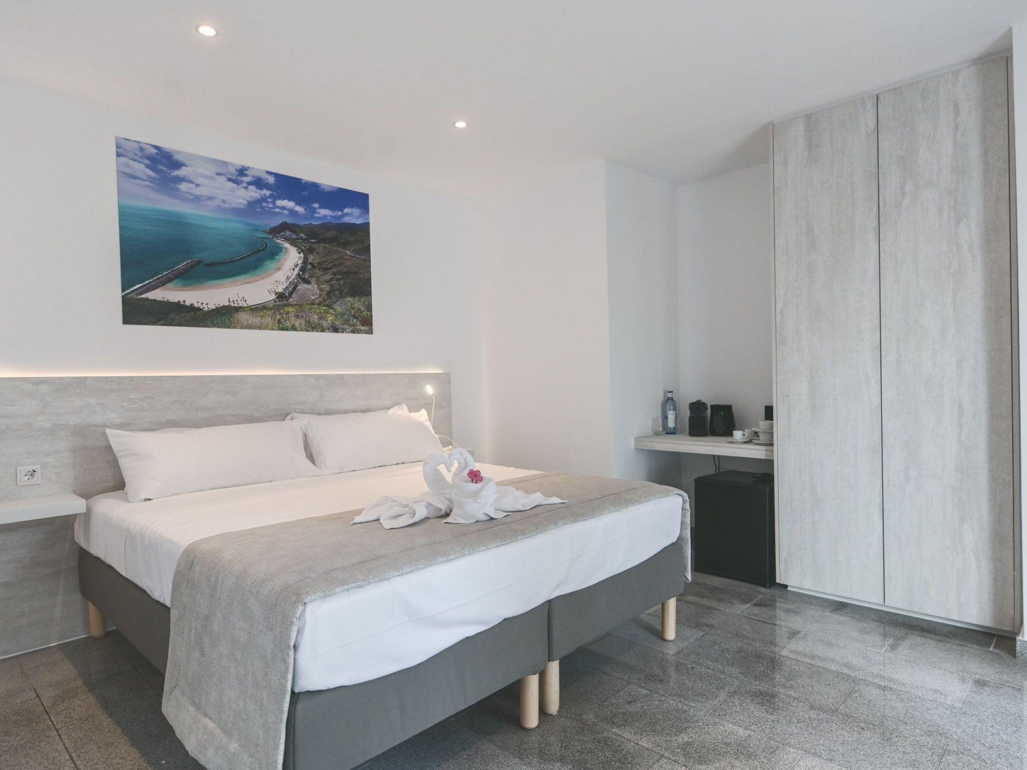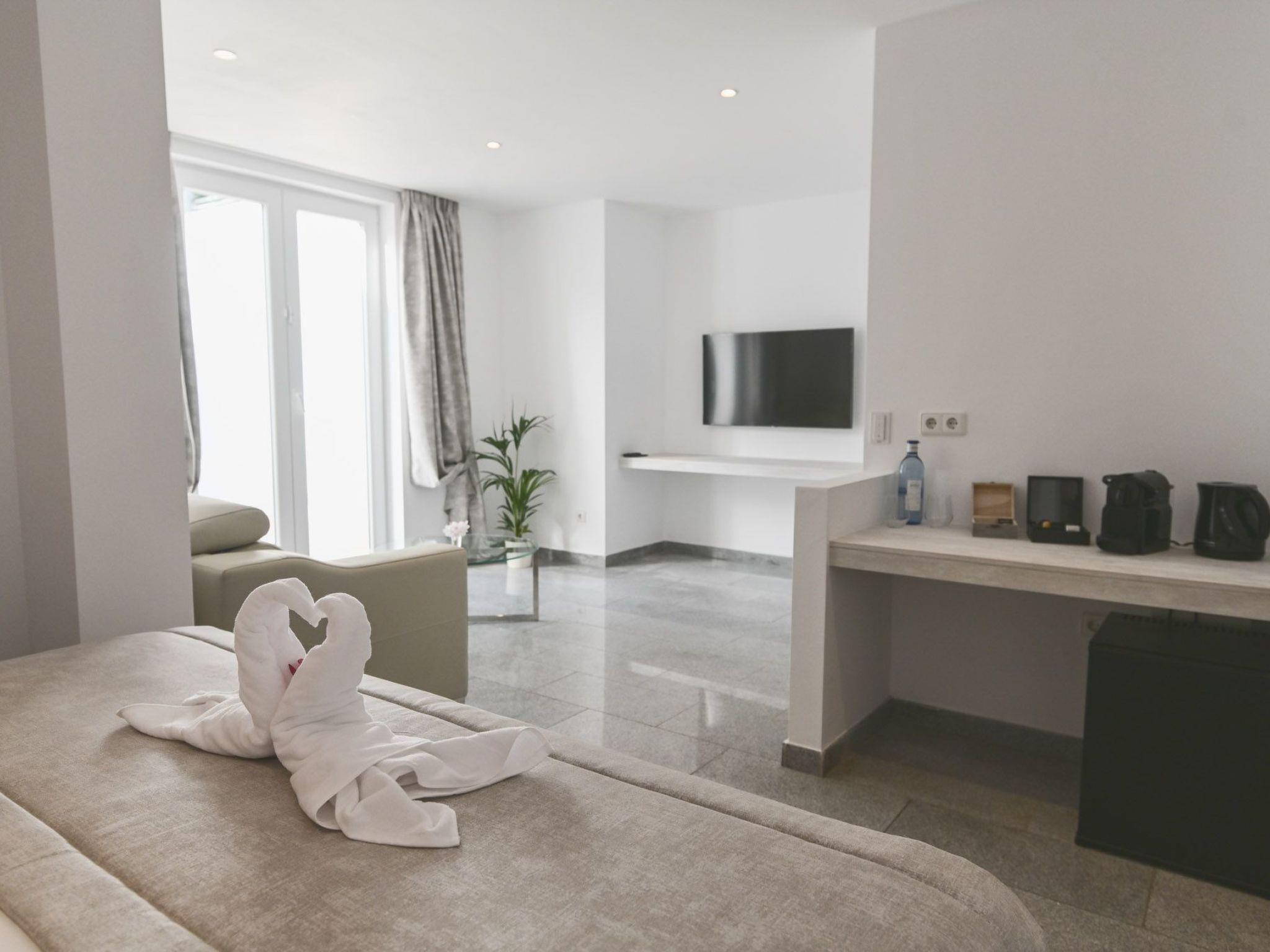 El Volcán has 3 bedrooms each with a King Size bed, 2 bathrooms, a kitchen with an American fridge, a large dining table and a living room with a sofa bed for 2 persons. Puesta de Sol is a suite with a king size bed, living room with minibar and desk, ensuite bathroom with all necessary amenities such as towels, shower gel, shampoo, hairdryer, ..... You also have a private safe to store all your valuables. El Barco is a luxurious suite with 27m2 and a King Size bed with a living room, mini bar, private safe and an ensuite bathroom with all necessary amenities such as towels, shower gel, shampoo, hairdryer,..... El Vinedo is a flat with a kitchen, dining table and a living room with sofa bed. The bedroom with King Size bed opens with 2 sliding doors and has an ensuite bathroom with all necessary amenities such as towels, shower gel, shampoo, hairdryer,...La Playa has 2 separate bedrooms, living room with sofa bed, bathroom with walk-in shower and a private terrace. The rooms are large and luxuriously finished. It is ideal for a family with children or friends.
