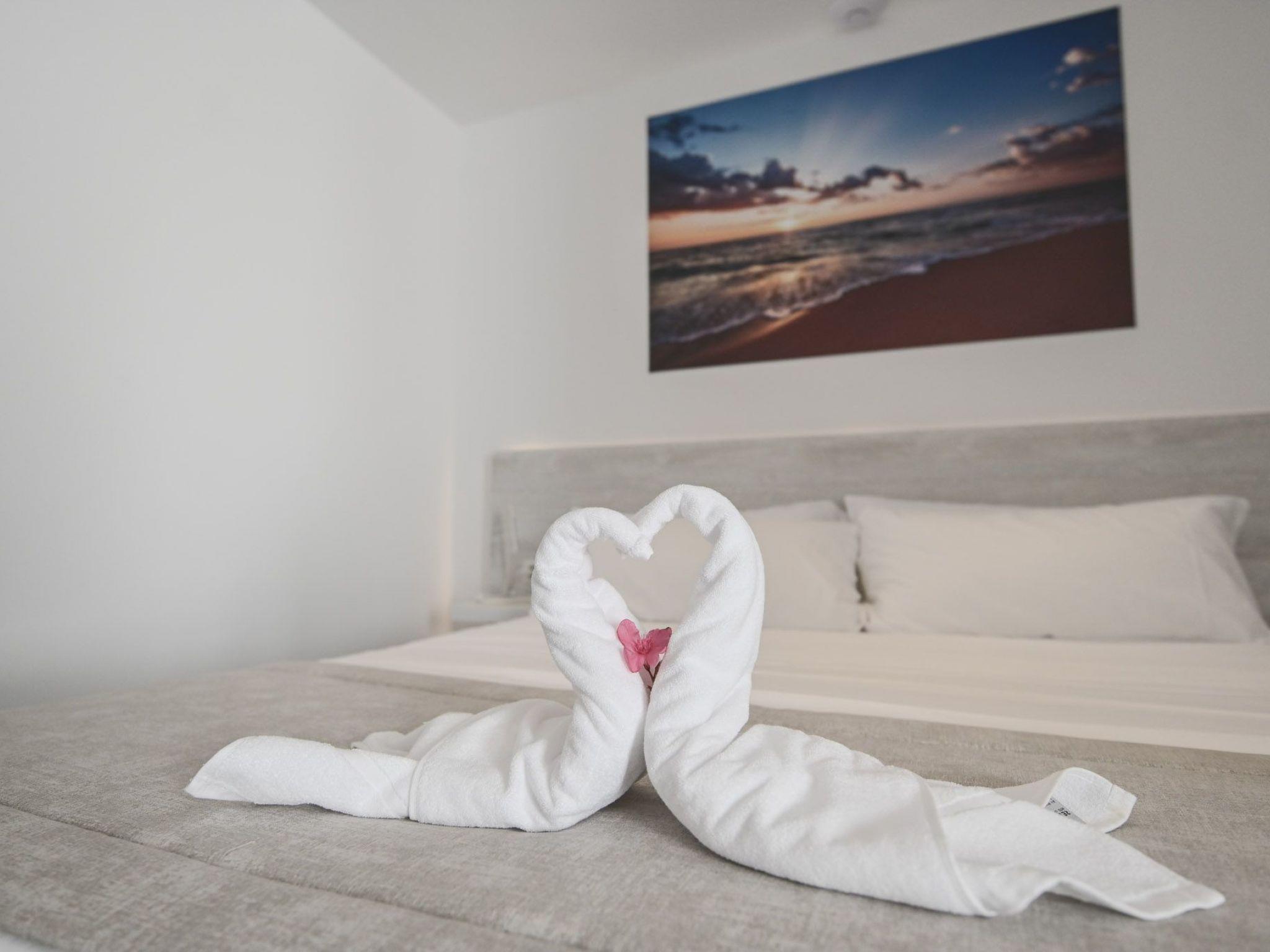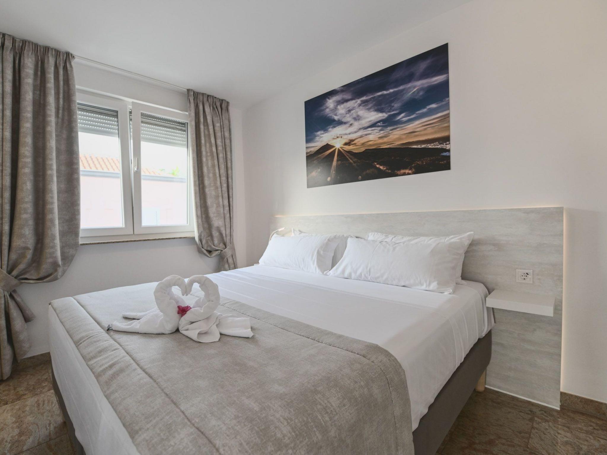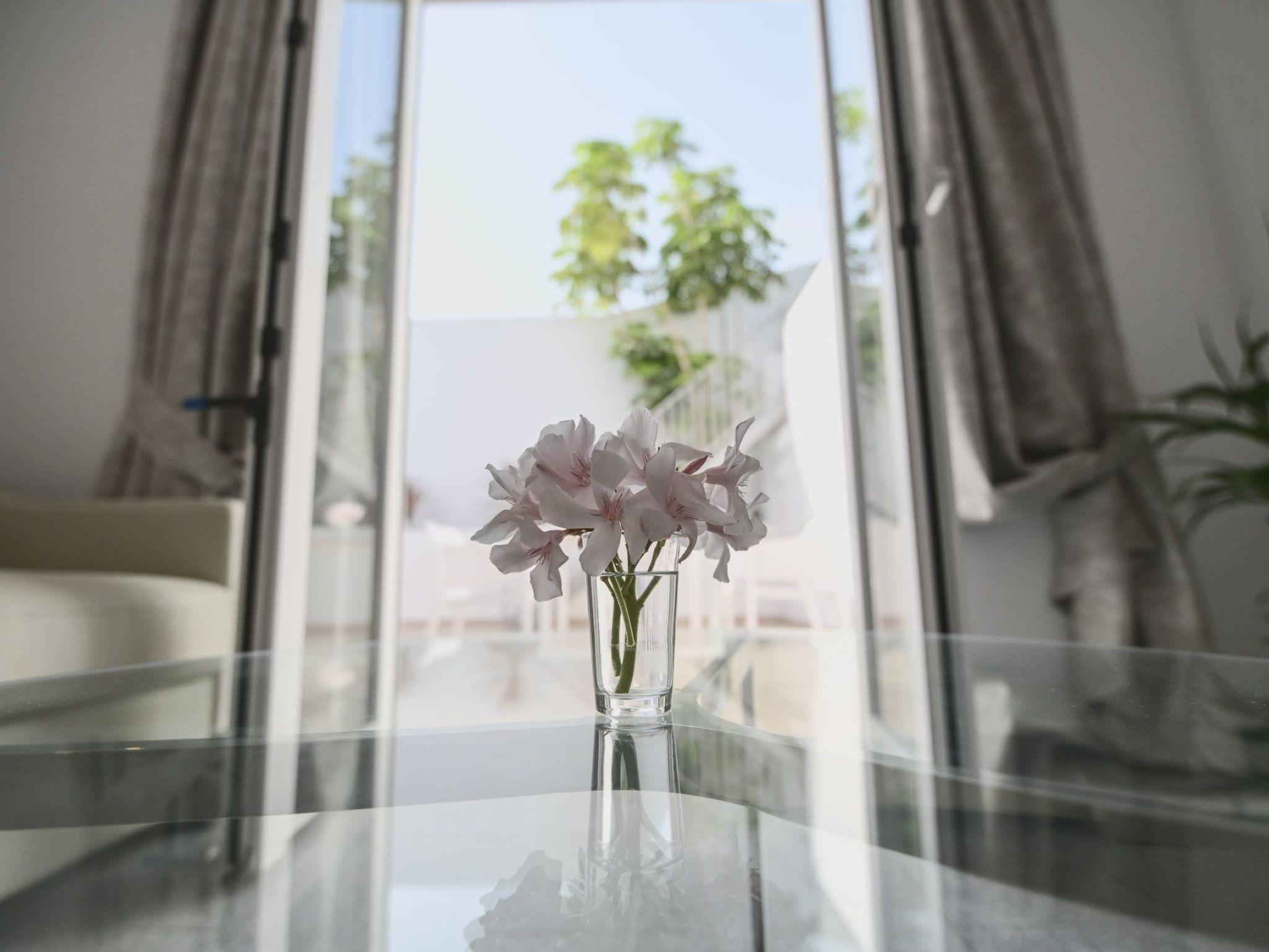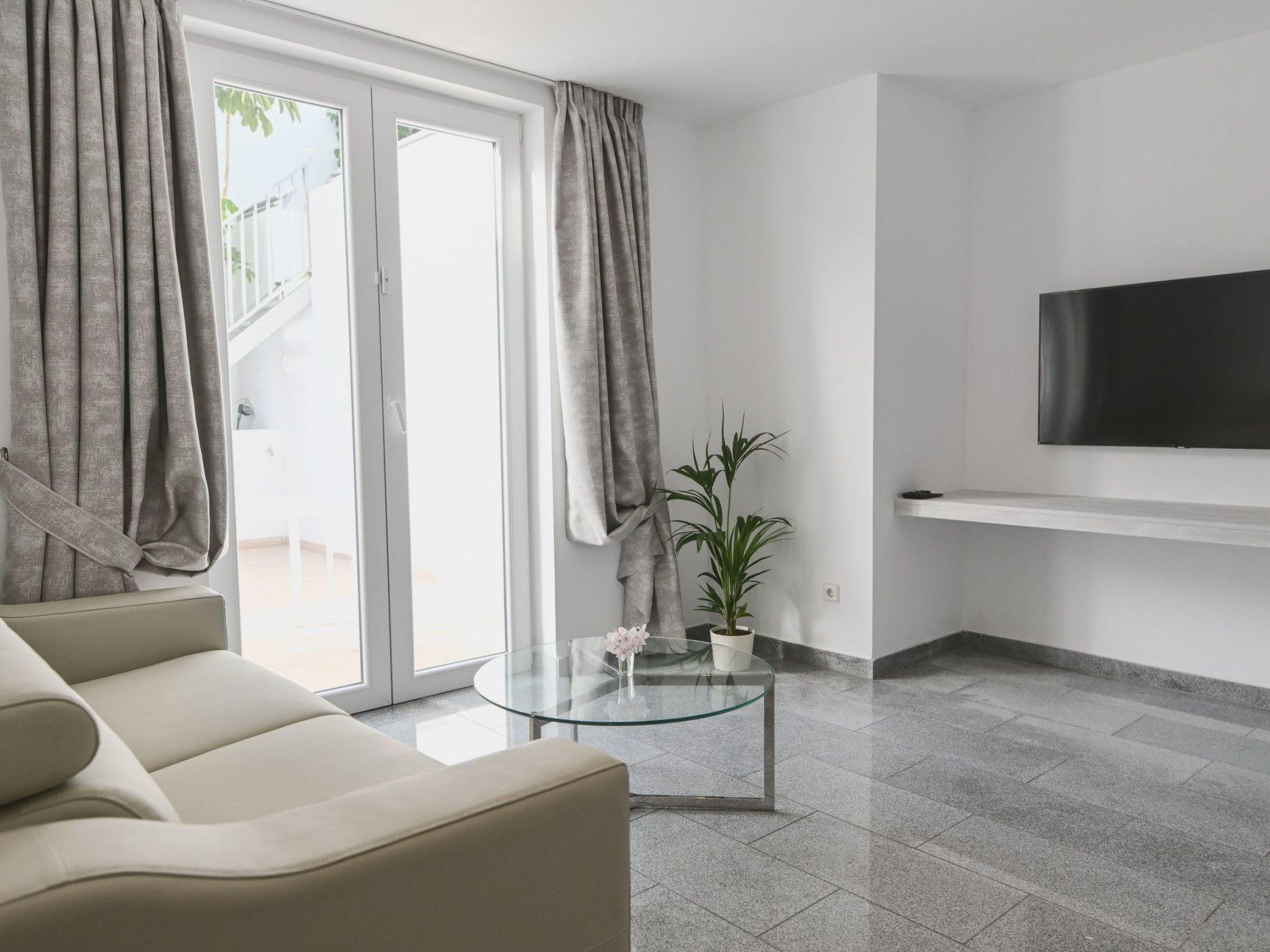 El Volcán has 3 bedrooms each with a King Size bed, 2 bathrooms, a kitchen with an American fridge, a large dining table and a living room with a sofa bed for 2 persons. Puesta de Sol is a suite with a king size bed, living room with minibar and desk, ensuite bathroom with all necessary amenities such as towels, shower gel, shampoo, hairdryer, ..... You also have a private safe to store all your valuables. El Barco is a luxurious suite with 27m2 and a King Size bed with a living room, mini bar, private safe and an ensuite bathroom with all necessary amenities such as towels, shower gel, shampoo, hairdryer,..... El Vinedo is a flat with a kitchen, dining table and a living room with sofa bed. The bedroom with King Size bed opens with 2 sliding doors and has an ensuite bathroom with all necessary amenities such as towels, shower gel, shampoo, hairdryer,...La Playa has 2 separate bedrooms, living room with sofa bed, bathroom with walk-in shower and a private terrace. The rooms are large and luxuriously finished. It is ideal for a family with children or friends.