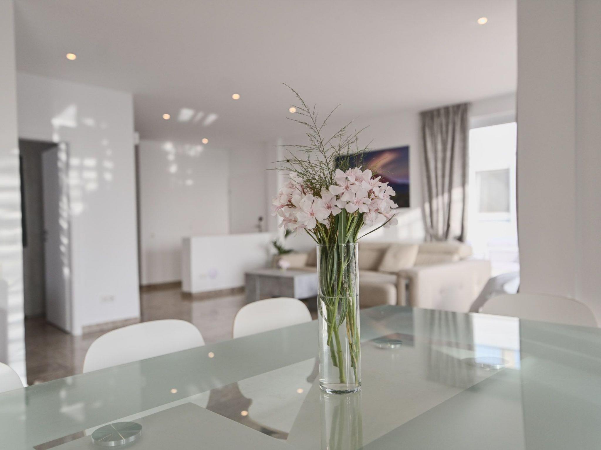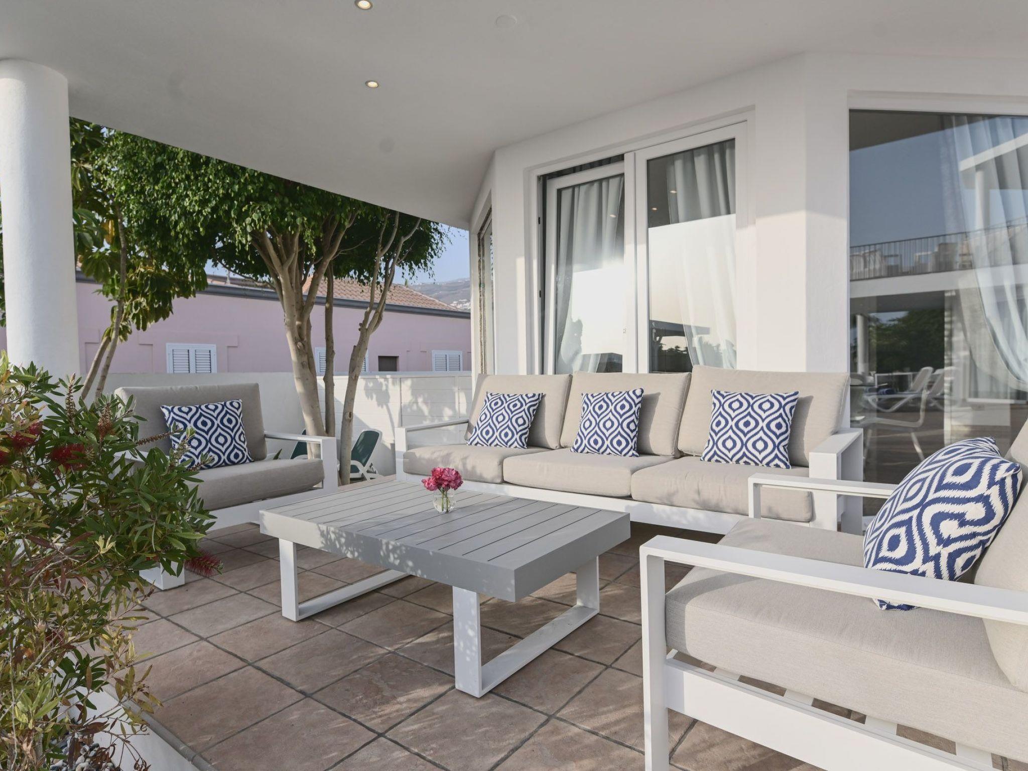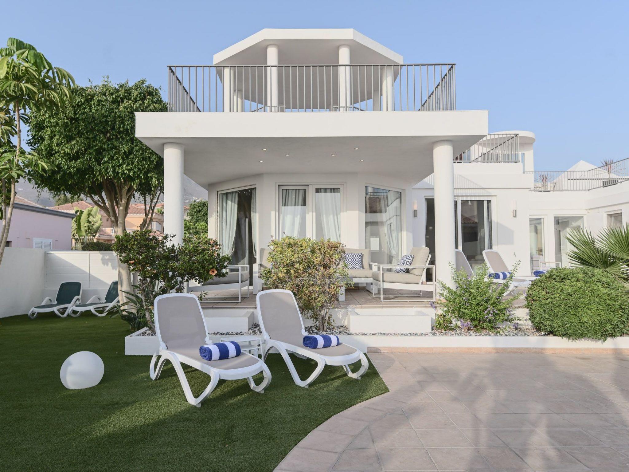 The Tenerife Private Boutique villa has 8 bedrooms and 5 livings with sofabed. This allows you to accommodate 16 people in the large KingSize beds and 10 extra people in the sofabeds, so the maximum capacity is 26 people.