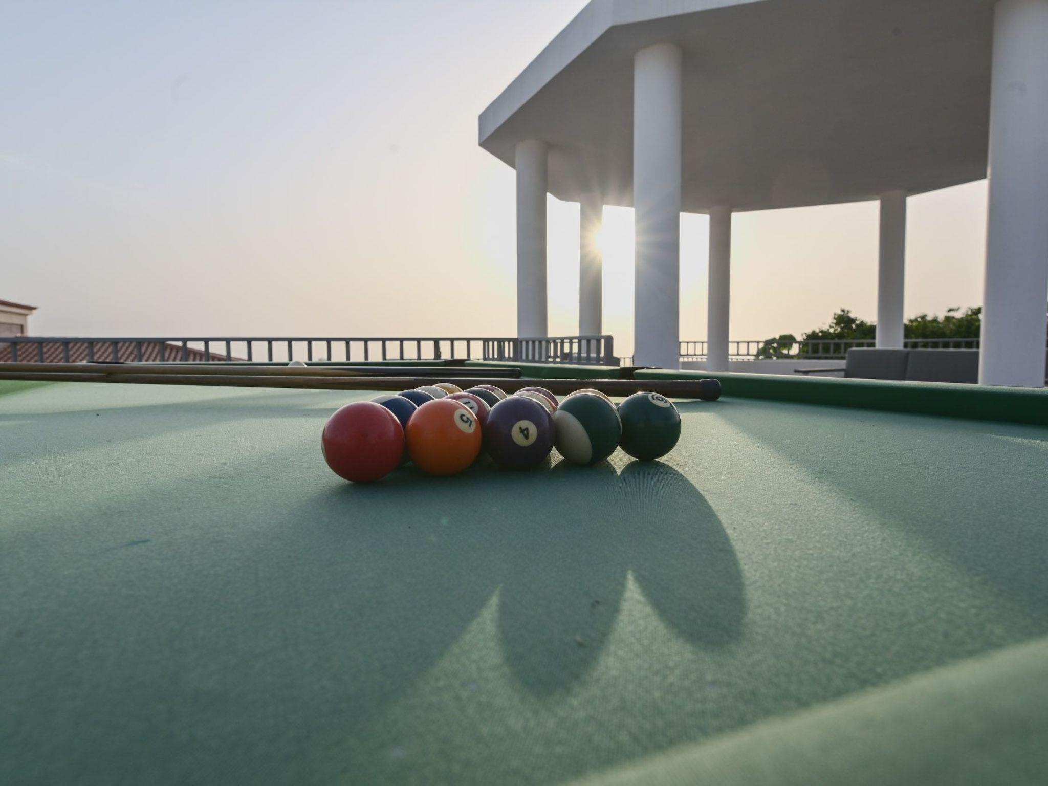 The billiard table has a 360 degree sea view and a view of the mountains.
