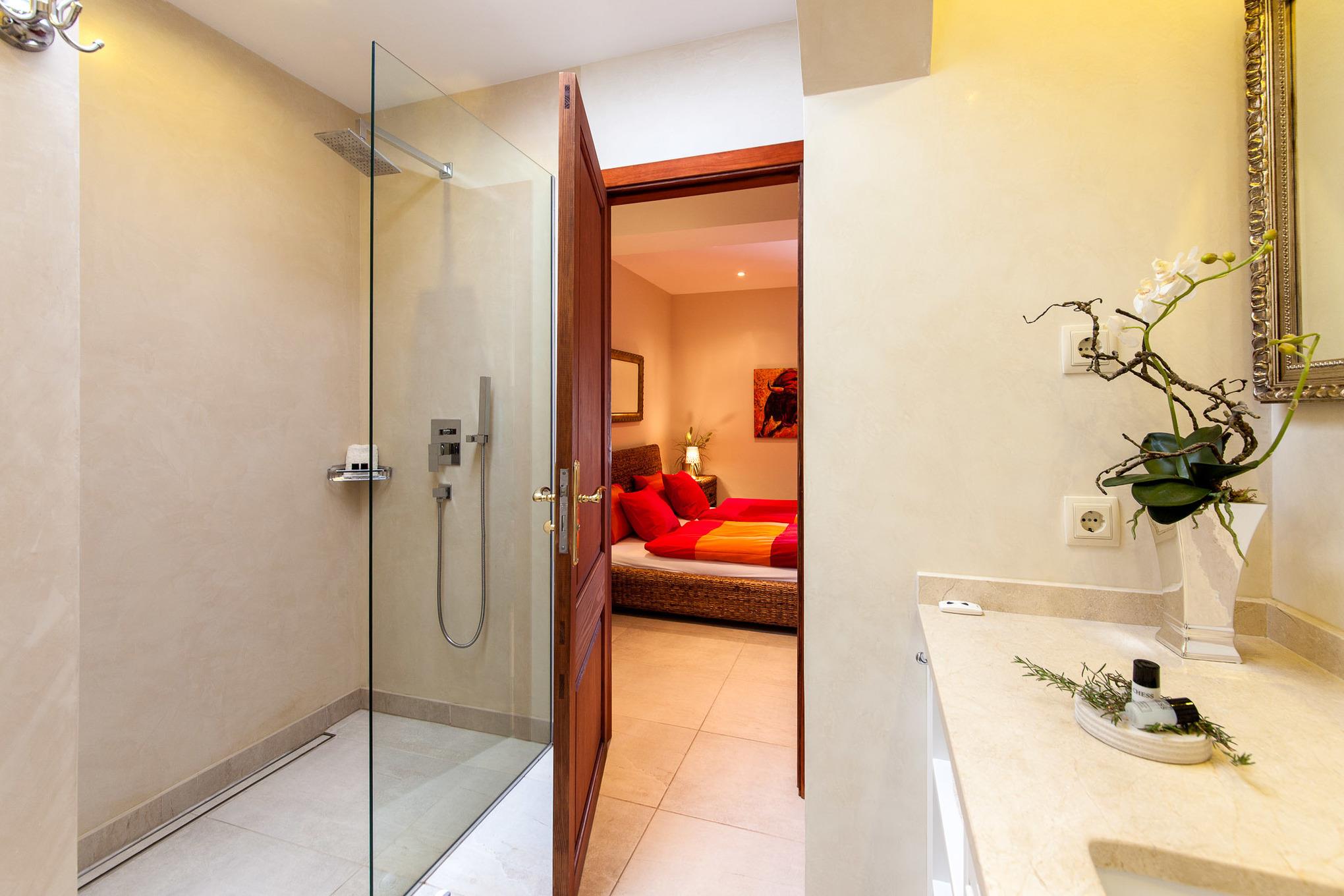 Das zweite Bad en Suite verfügt ebenfalls über eine ebenerdige Dusche, WC und Waschbecken.