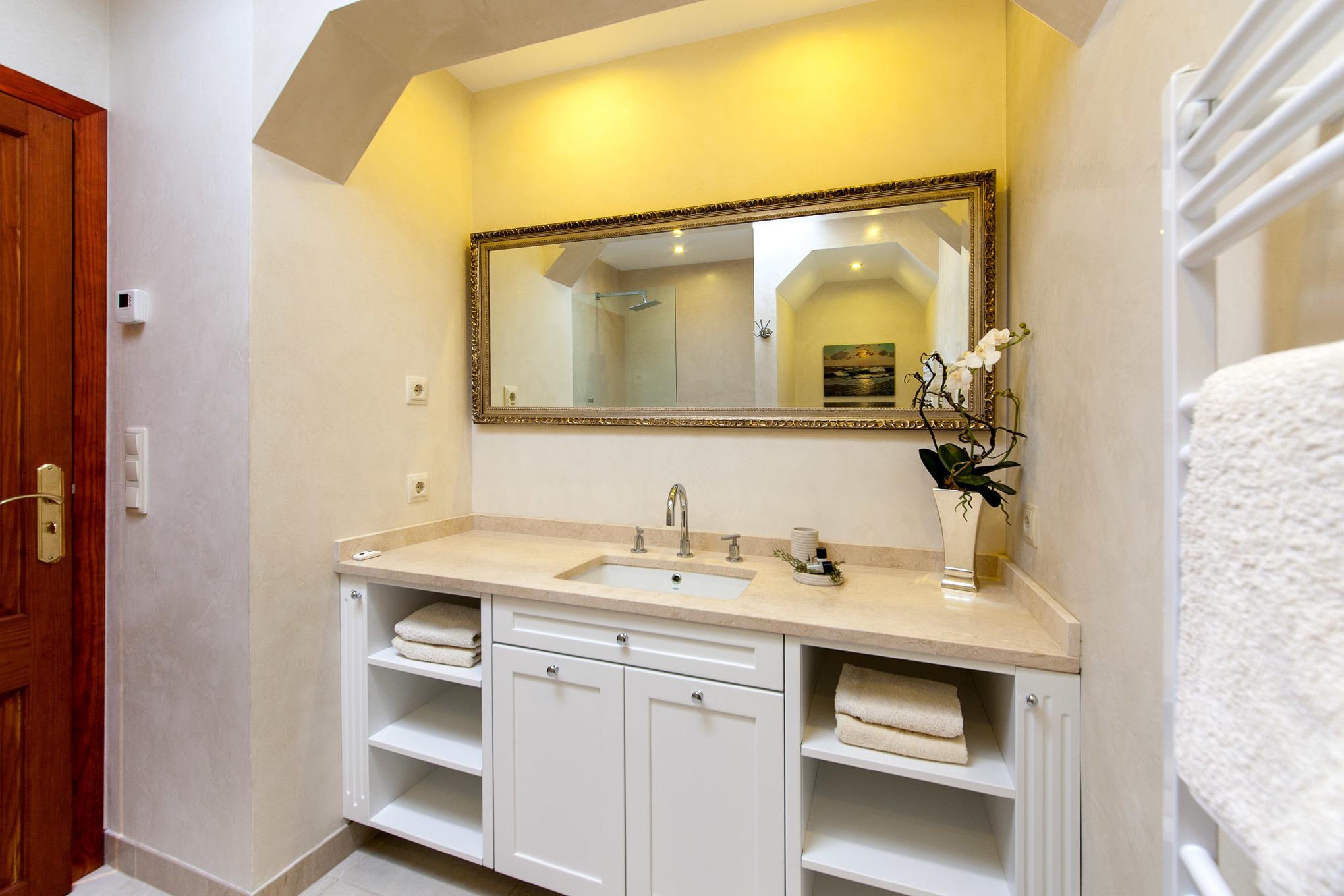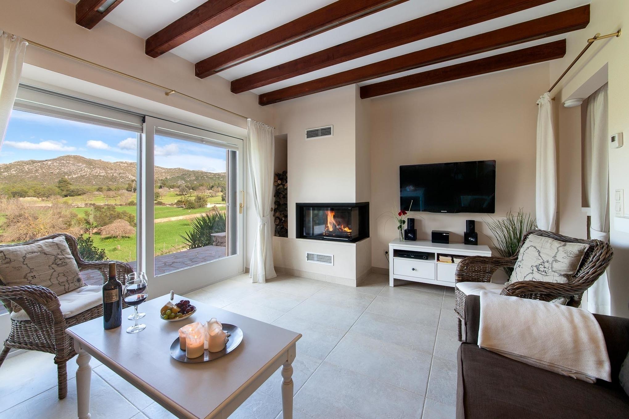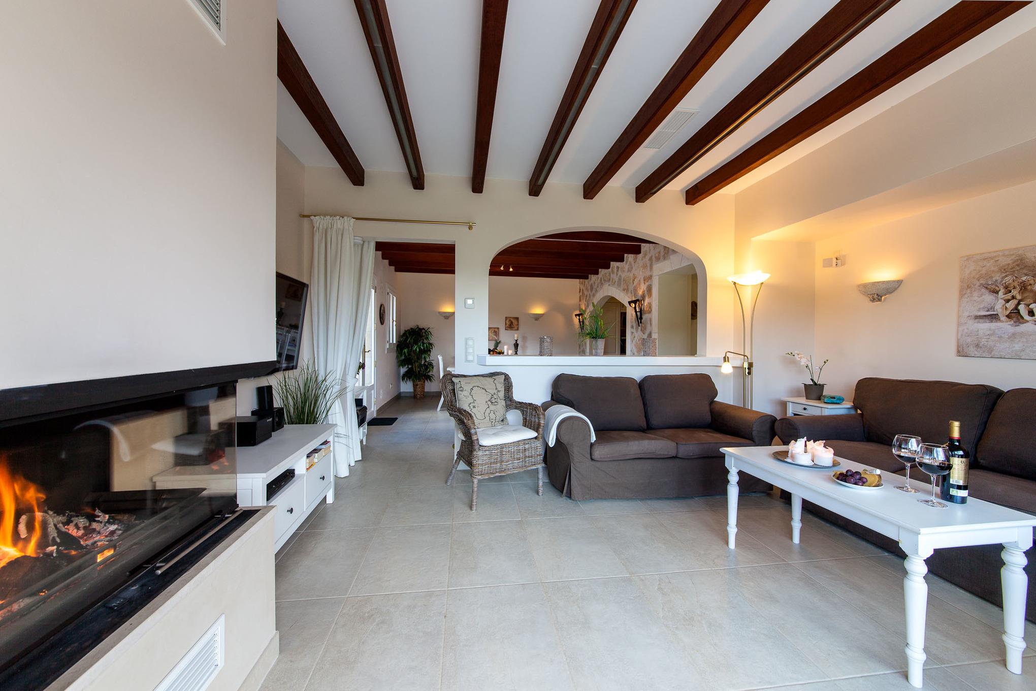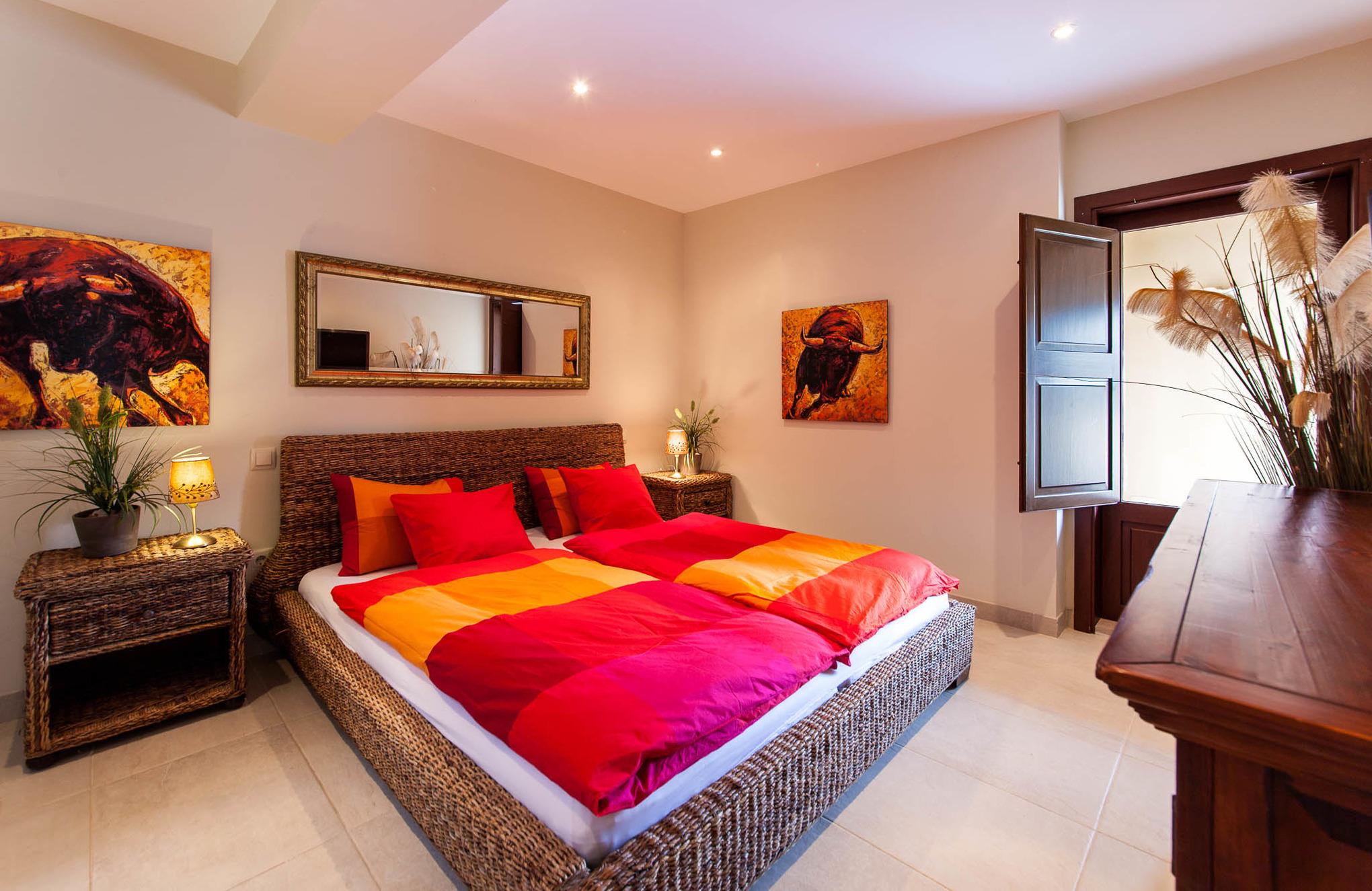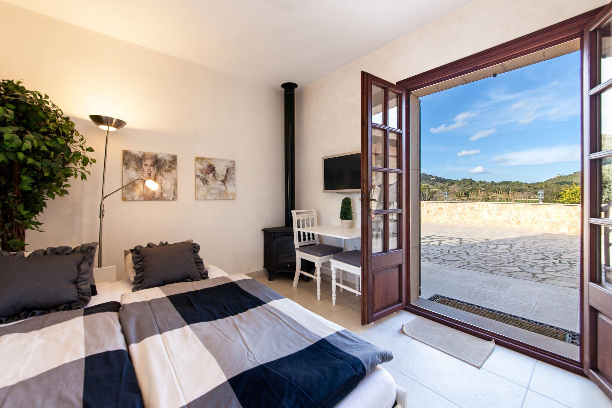 Alle Schlafzimmer und die Wohnstube verfügen über Klimaanlagen (warm/kalt), die gesamte Finca ist mit Fußbodenheizung ausgestattet – so ist sie im Sommer angenehm kühl und im Winter wohlig warm.