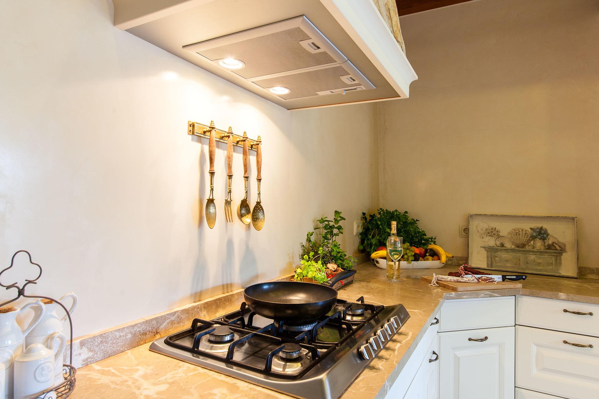 Die Küche ist hochwertig ausgestattet: Gasherd, Backofen, Geschirrspüler, Kühl-/Gefrierschrank, Nespresso-Maschine und alles, was man für gemütliche Kochabende braucht.