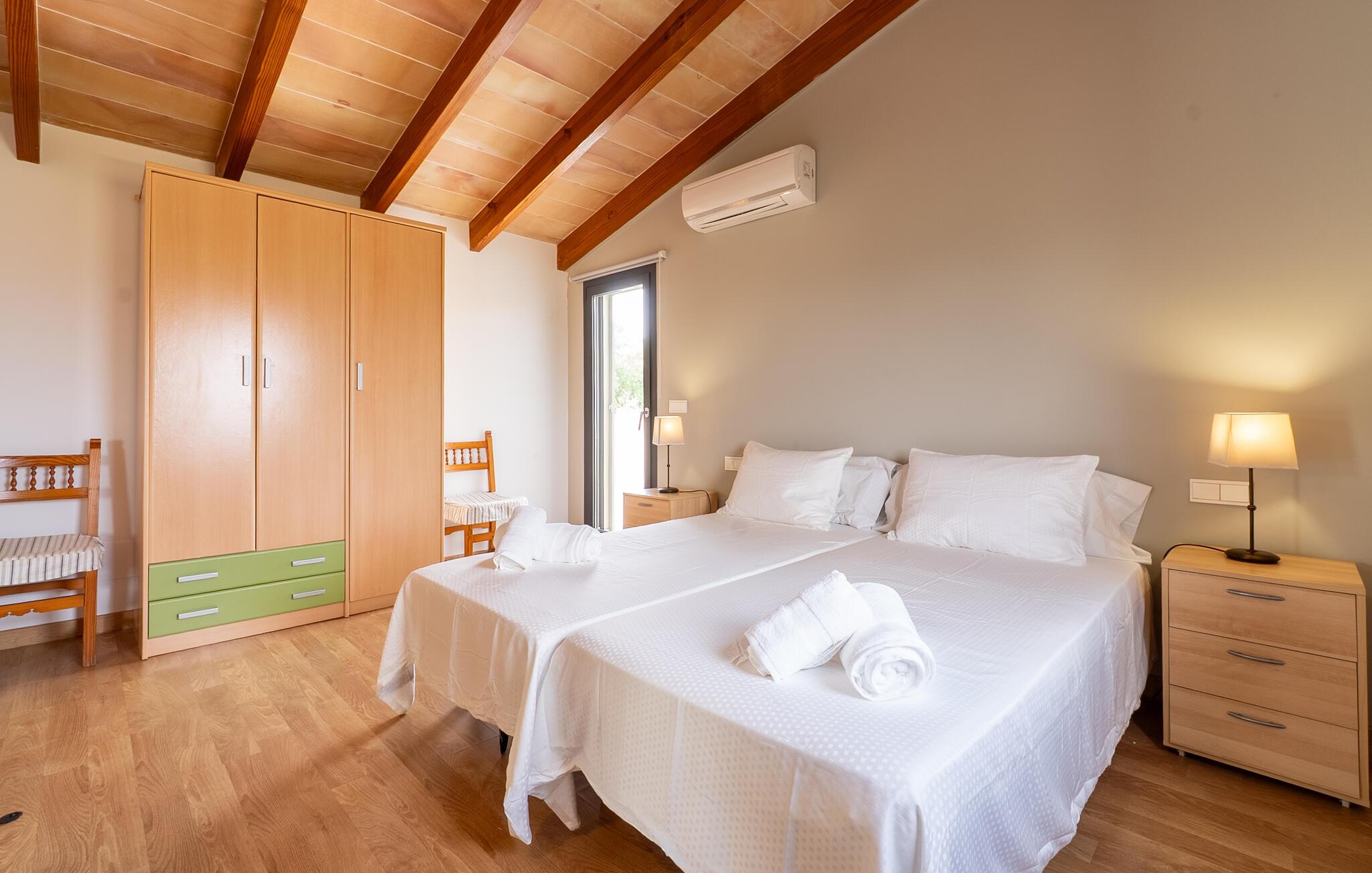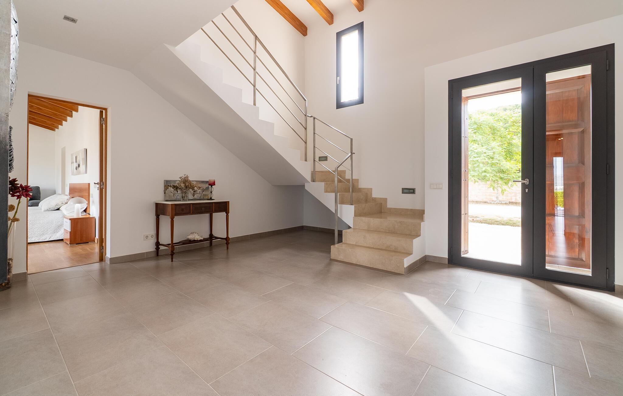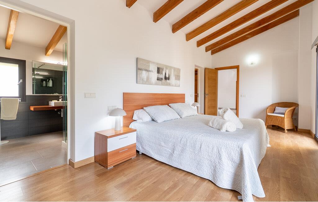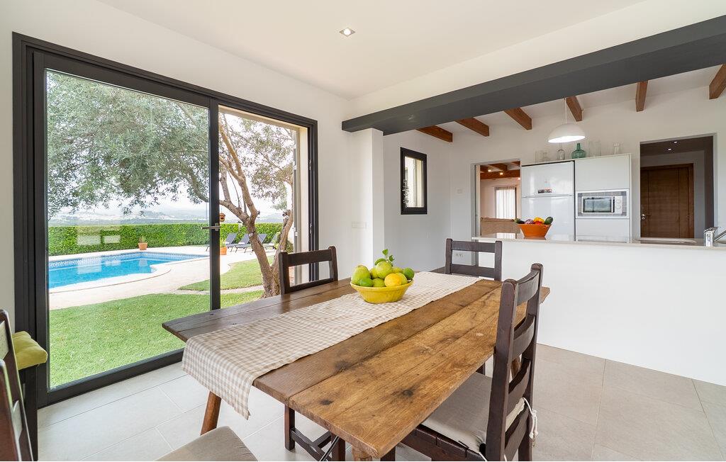 Dette huset ligger på det vidstrakte mallorcinske landskapet, og kombinerer enkel eleganse med rustikke treelementer. Den lyse stuen innbyr til en prat over en aromatisk espresso, en ettermiddag med spill eller en filmkveld. På det moderne kjøkkenet kan dere tilberede deilige måltider sammen og gi kreativiteten frie tøyler. Server en god spansk vin og nyt uforglemmelige kvelder i en stilfull atmosfære.