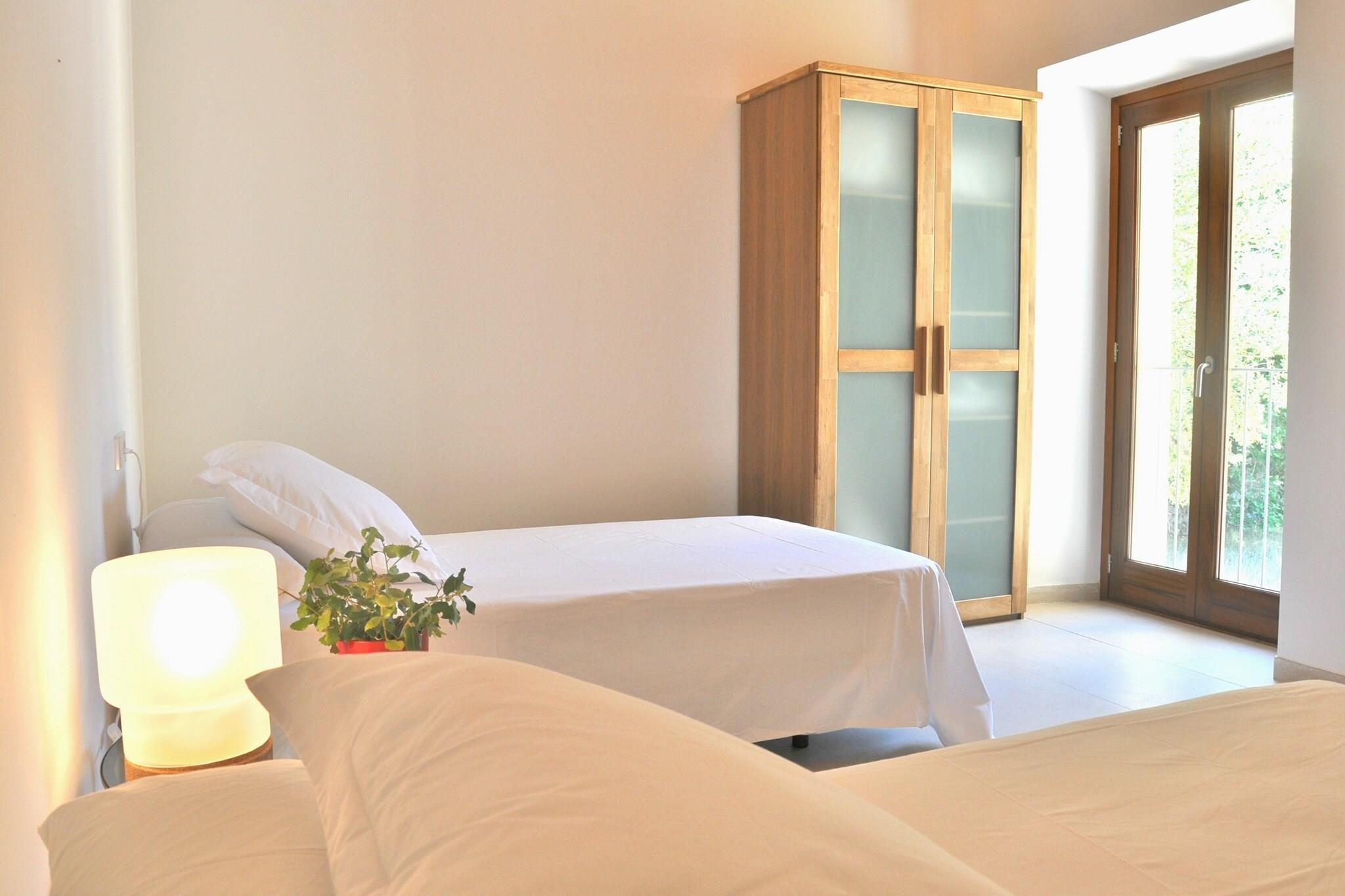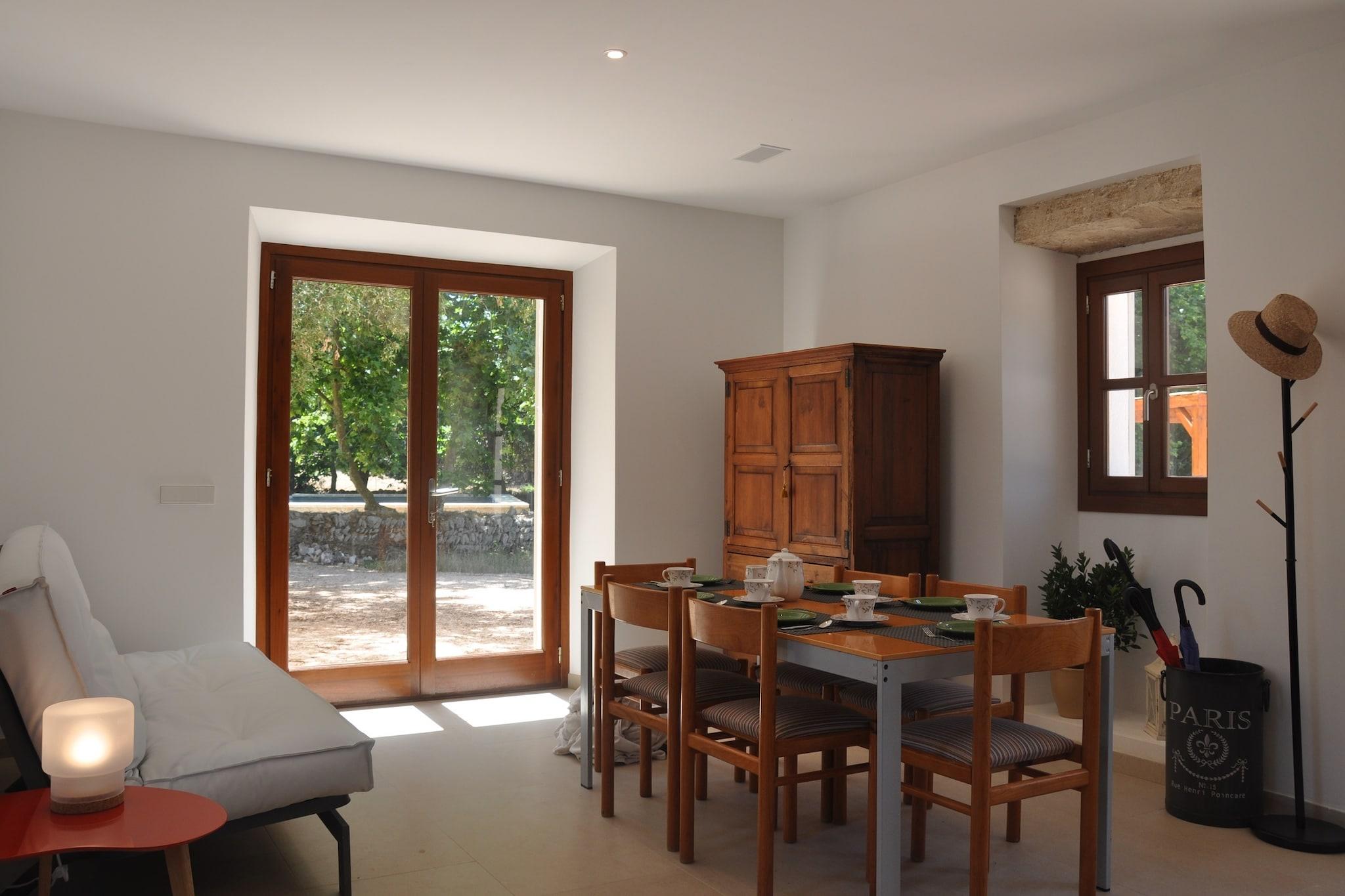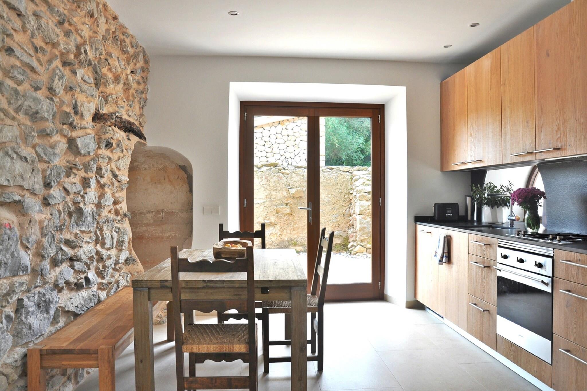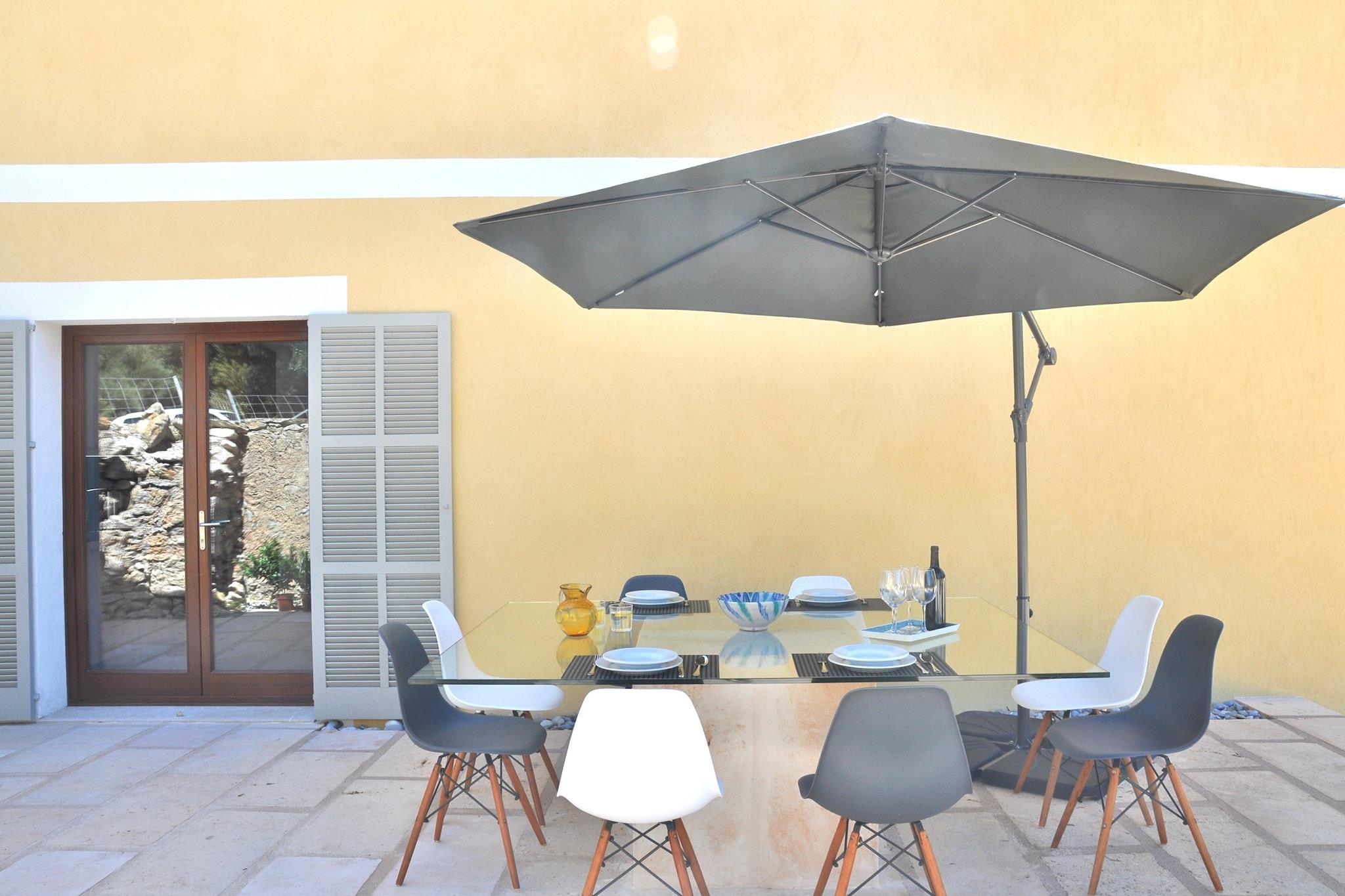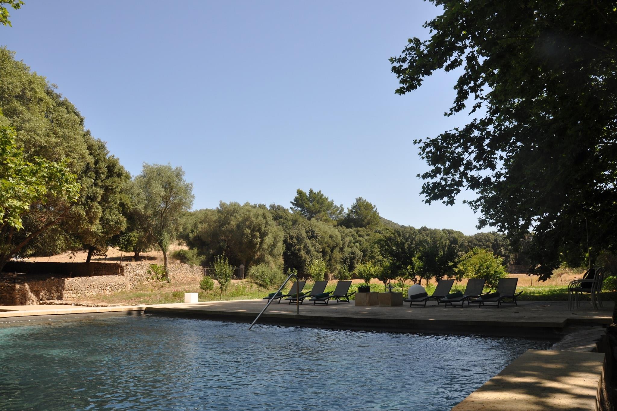 Denne vakre mallorcanske villaen ble totalrenovert i 2016 og kombinerer en tradisjonell stil med et virkelig moderne interiør. Ligger i en uforstyrret del av øya, på et område på 700 000 kvadratmeter, omgitt av århundre gamle hule eik, oliventrær og platantrær med fantastisk utsikt over landskapet, fjellet Llevant og nær den naturlige parken de Llevant, er denne villaen en perfekt ferie fra den hektiske verden. Villaen, med totalt 250 kvm, består av 4 soverom (2 en-suite) og 3 bad, en romslig stue med TV, spisestue og fullt utstyrt kjøkken. Villaen har en WIFI internettforbindelse. Spisestuen utvider også utendørs, og skaper en perfekt setting for de som liker et måltid i friluft. Med tanke på forurensning og energiforbruk ble det besluttet å bruke fornybare energikilder for kjøling og oppvarming i villaen. Huset kan være vert for opptil 10 personer. Imidlertid oppnås en optimal komfort med 8 gjester. Tucked away mellom middelhavet planter er det et stort svømmebasseng (12x12m) med både solrik og skyggefull salong. Disse salongene har utsikt mot en pitoresque hage og de mallorcanske åsene. Middelhavet landskap, åser og skoger, som omgir eiendommen, er beskyttet og krysset med trekking og sykkelstier. Villaen ligger i Llevant naturpark, kjent for sine fjerntliggende og uberørte strender, og dens kolonier av middelhavskildpadder. Du kan både vandre eller kjøre gjennom reservatet opp en smal vei, og nyt den spektakulære utsikten over Alcudiabukten. Innenfor parken kan Ermita de Betlem-kurven, like ved kysten, bli funnet. En rekke turstier starter herfra. Sandy og steinete strender og fantastiske klipper er bare 10 minutter unna. Den beste nordlige strender kan nytes: Cala Torta, Cala Mitjana, Cala Estreta, Cala d'Alarca, Cala Na Clara, Sa Canova, Cala Matzoc vil overraske deg med sin gjennomsiktige vann og jomfruelige natur! Villaen ligger kun 3 km fra Ar