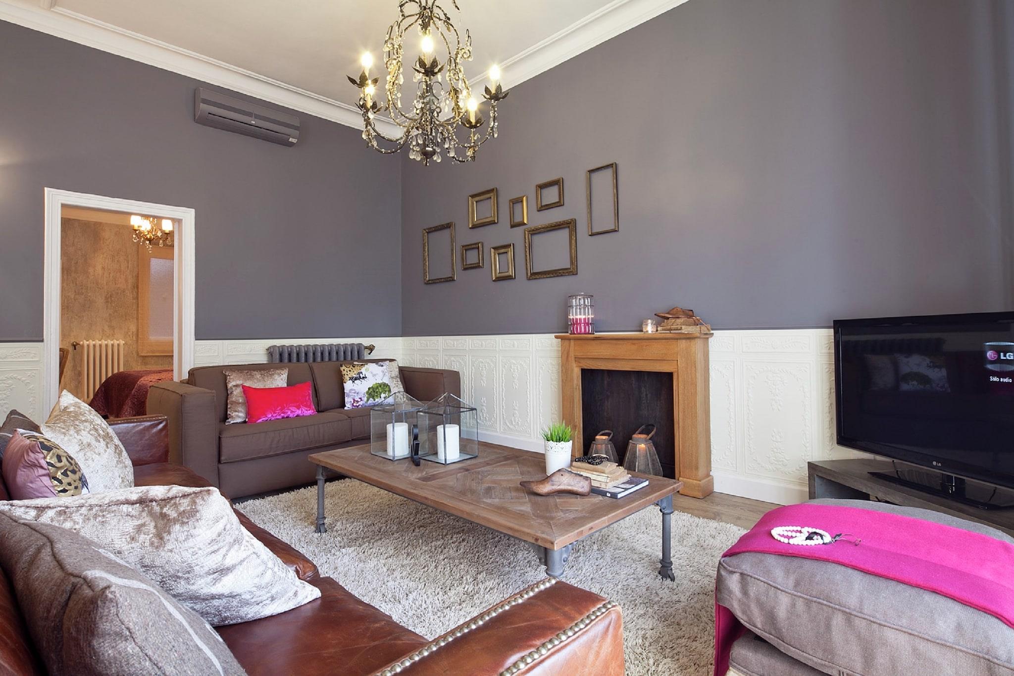 Eksklusiv leilighet i en av de mest emblematiske og fasjonable Barcelonas boulevarder, og ligger nær Ramblas, Plaça Catalunya og Passeig de Gràcia. Det har nylig blitt renovert og innredet. Den modernistiske bygningen er totalrenovert, har en fasjonabel entré og har en concierge fra mandag til fredag, morgen og ettermiddag. Leiligheten ligger i tredje etasje med heis. Stuen og et av soverommene er ganske store og begge vender mot Rambla Catalunya, noe som gir rom skinnende. CATALUNYA PALACE er en leilighet unik , luksuriøse, lyse og med mange franske detaljer. Leilighet ligger i hjertet av Barcelona, i Catalunya Ramblas, ved siden av Passeig de Gracia, svært nær Plaza Catalunya og Las Ramblas. For folk som ønsker å være midt i Barcelona. Utmerket kommunikasjon for å besøke byen Barcelona eller Sorroundings. Parkering bare noen få meter.