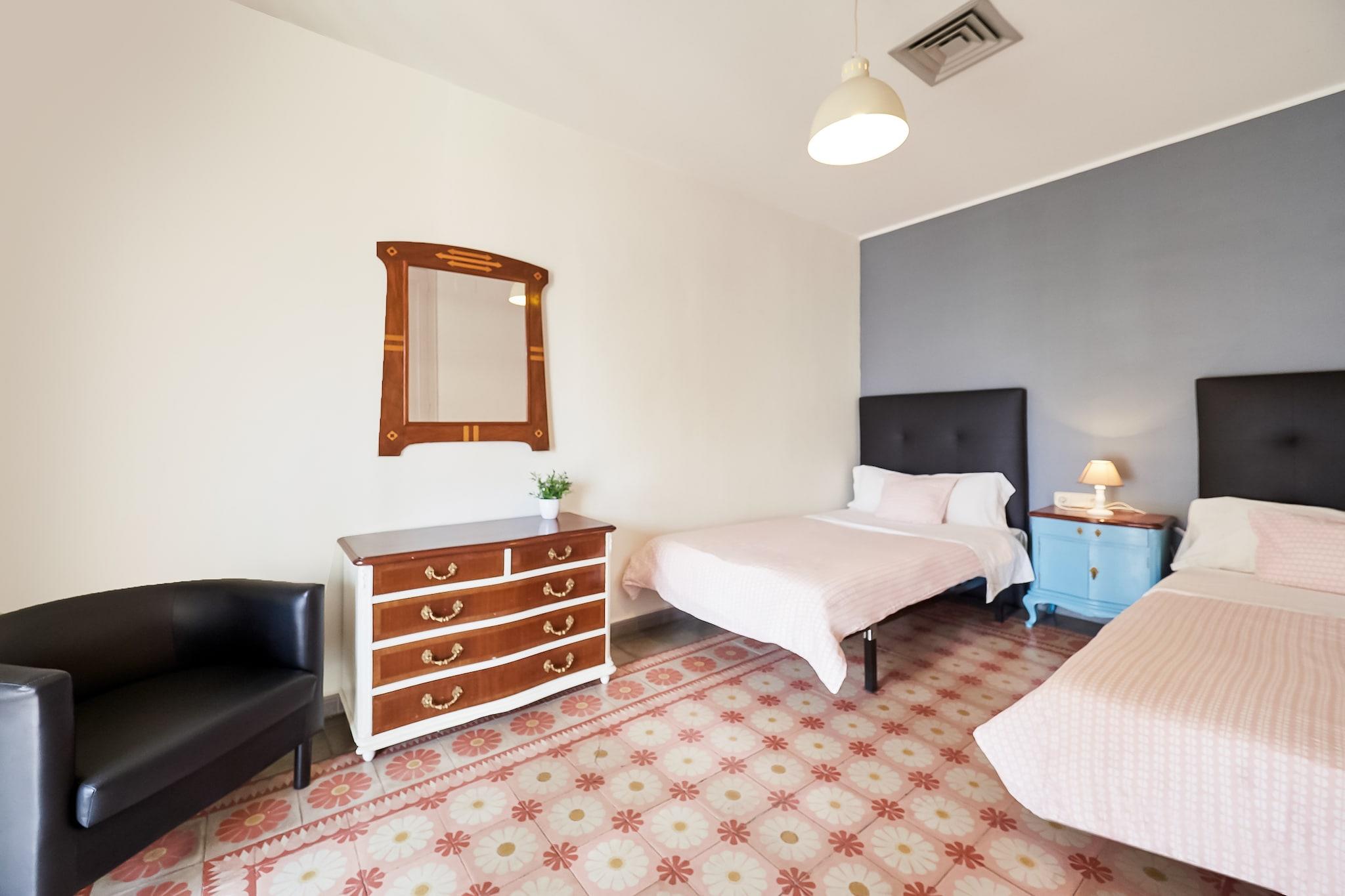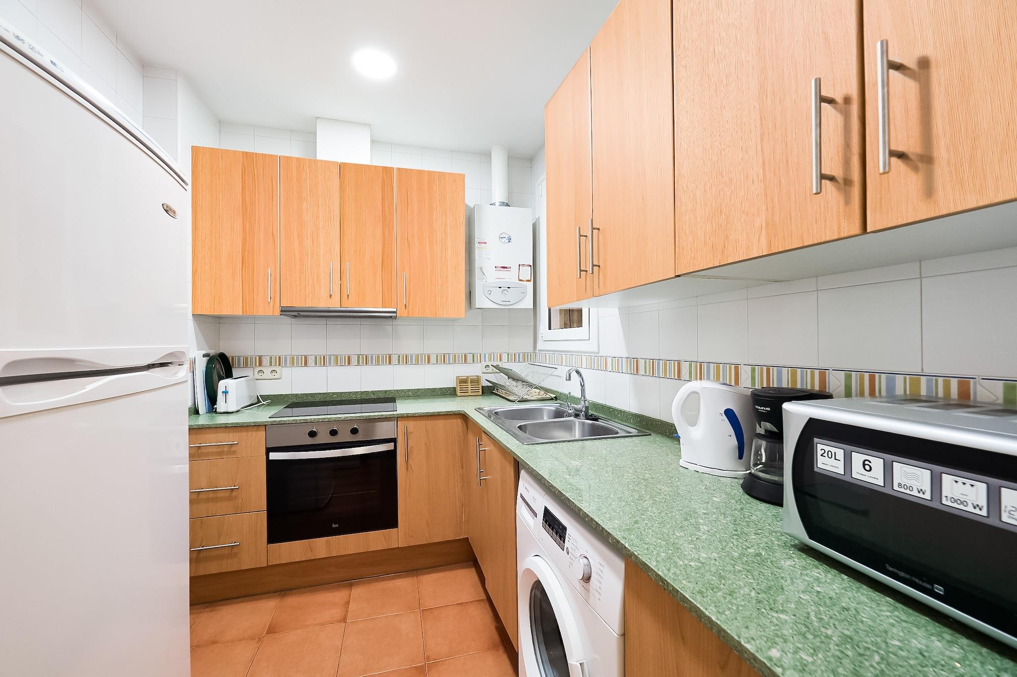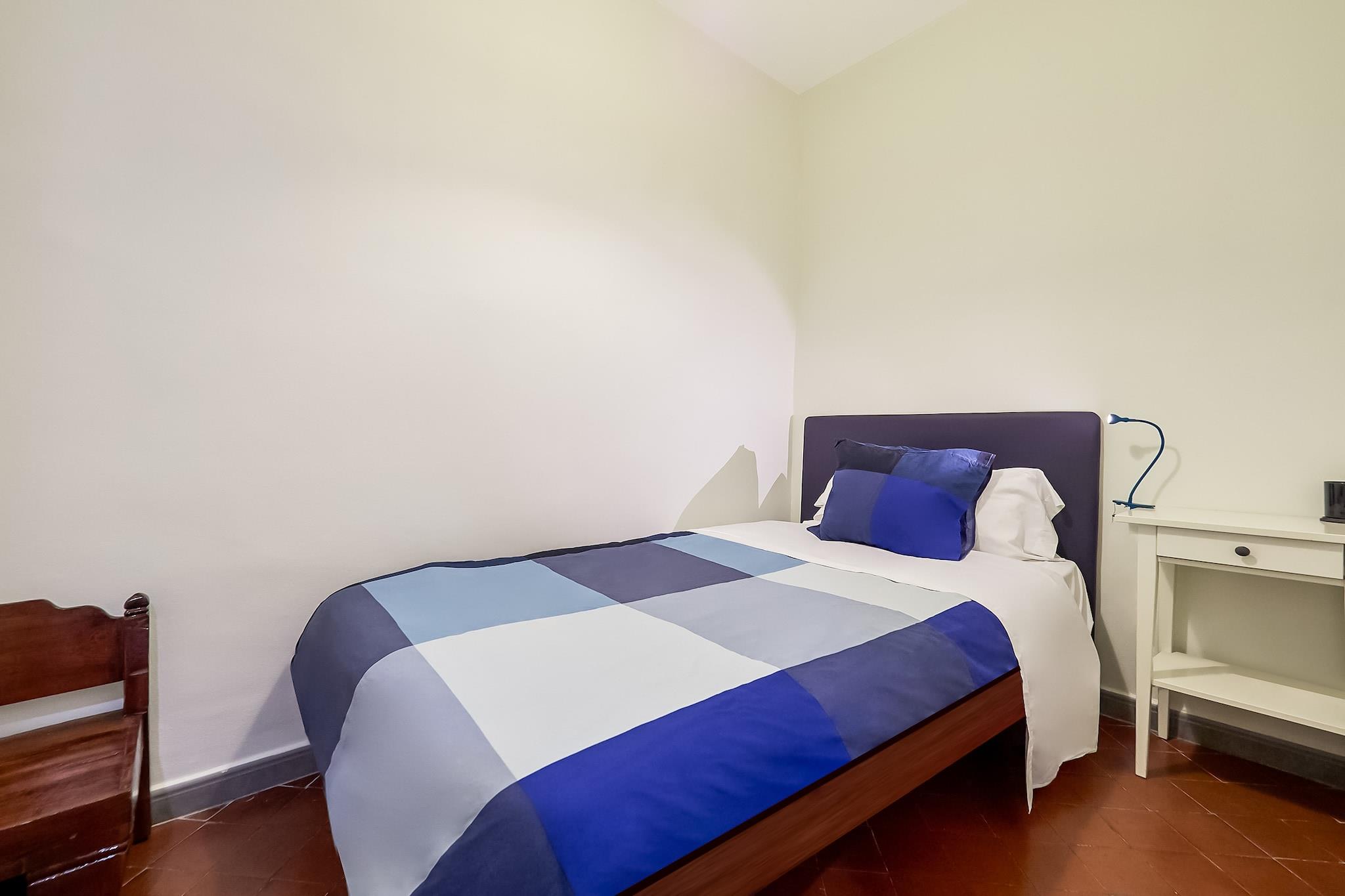 I 3. etasje: (Stue(TV), spisestue(spisebord), Kjøkken(komfyr, kaffetrakter, stekovn, mikrobølgeovn, oppvaskmaskin, kjøleskap med fryser), soveværelse(liten dobbeltseng(150 x 200 cm)), soveværelse(2x enkeltseng(95 x 200 cm)), soveværelse(uttrekkbar dobbeltseng), soveværelse(enkeltseng(100 x 200 cm)), bad(badekar, håndvask, toalett), balkon, oppvarming, klimaanlegg)