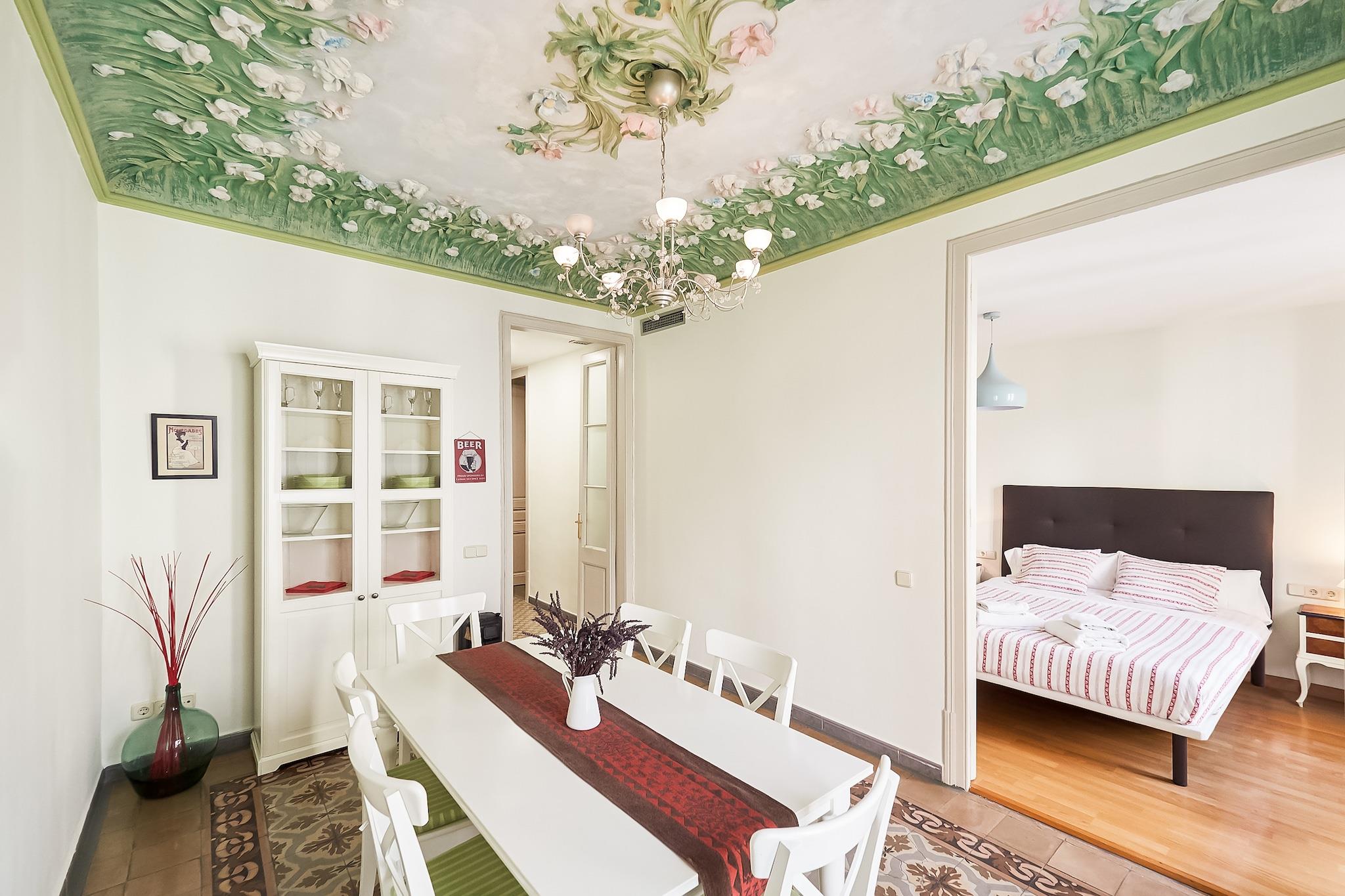 Sjarmerende leilighet i sentrum av Barcelona, med all luksus og komfort som du noen gang kan forestille deg. En gang inne, kan man glede seg over den magiske modernistiske bygningen av bygningen. Full av historiske detaljer og essenser som er mest usannsynlig å finne, har blitt pusset opp og dekorert i det siste med det nødvendige utstyret for et fantastisk opphold. For å ta le lift, er det nødvendig å gå opp noen trinn. En vaktmester er i hallen under arbeidstiden. Etablissementet ligger i det høyre sentrum av Barcelona, i Paris St. ved siden av Balmes Street, svært nær Passeig de Gràcia Boulevard, Catalunya Square og Rambla de Catalunya. For folk som ønsker å være i hjertet av City.Conveniently plassert for å komme seg rundt Barcelona og omgivelser. Parkering i nærheten av leiligheten.