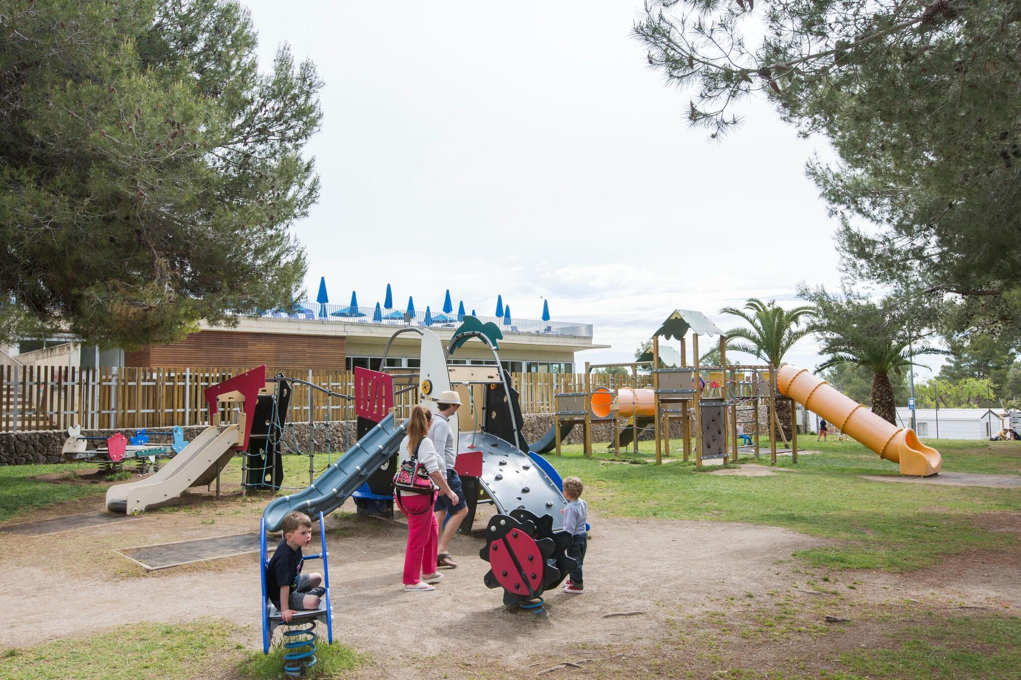 Vilanova Park ligger i utkanten av Vilanova i la Geltrú, og tilbyr overnatting i bugnalows, telt og mobile hjem. Komplekset har 2 svømmebassenger, et spa og Middelhavet. Camping prades camping har en tomtesone, bungalower og bobiler. Den har alle tjenestene du trenger for en fantastisk ferie. Bungalow på 48m2 med en maksimal kapasitet på 5-6 personer med stue, kjøkken, bad, 1 dobbeltrom og 1 rom med 1 enkeltseng og 2 køyesenger. Kjøkken (kjøkkenutstyr for 6 personer, elektrisk kaffetrakter, kjøleskap, mikrobølgeovn og toast) TV, Terrasse med utvendige møbler av tre. Eget bad med dusj. Klimaanlegg/oppvarming, Wifi**, Sengetøy inkludert, Håndklær ikke inkludert**, Parkering for 1 bil. **Tjenester med ekstra kostnad