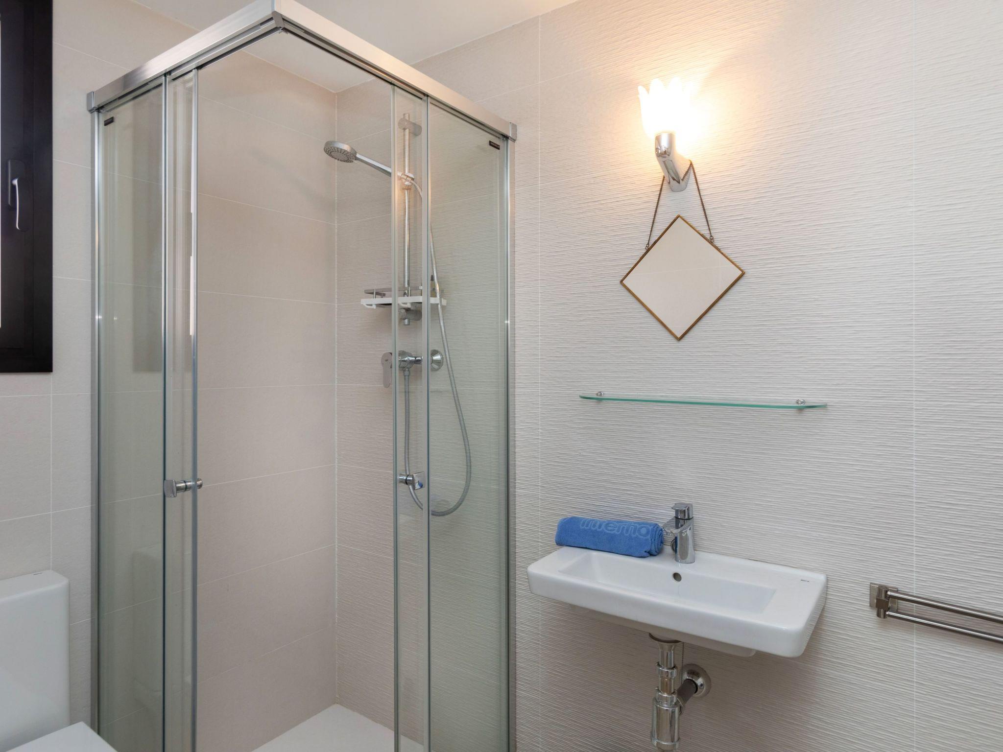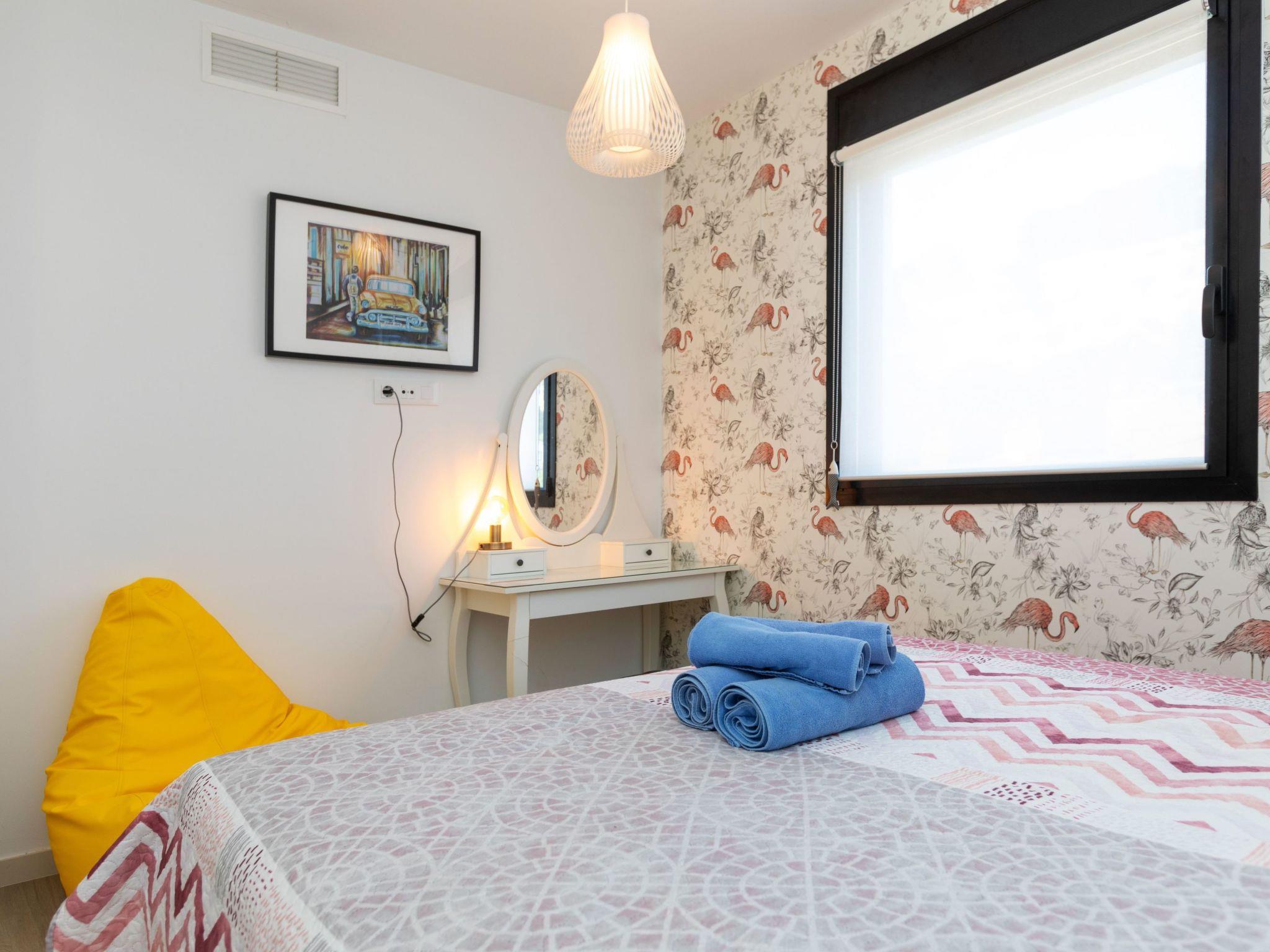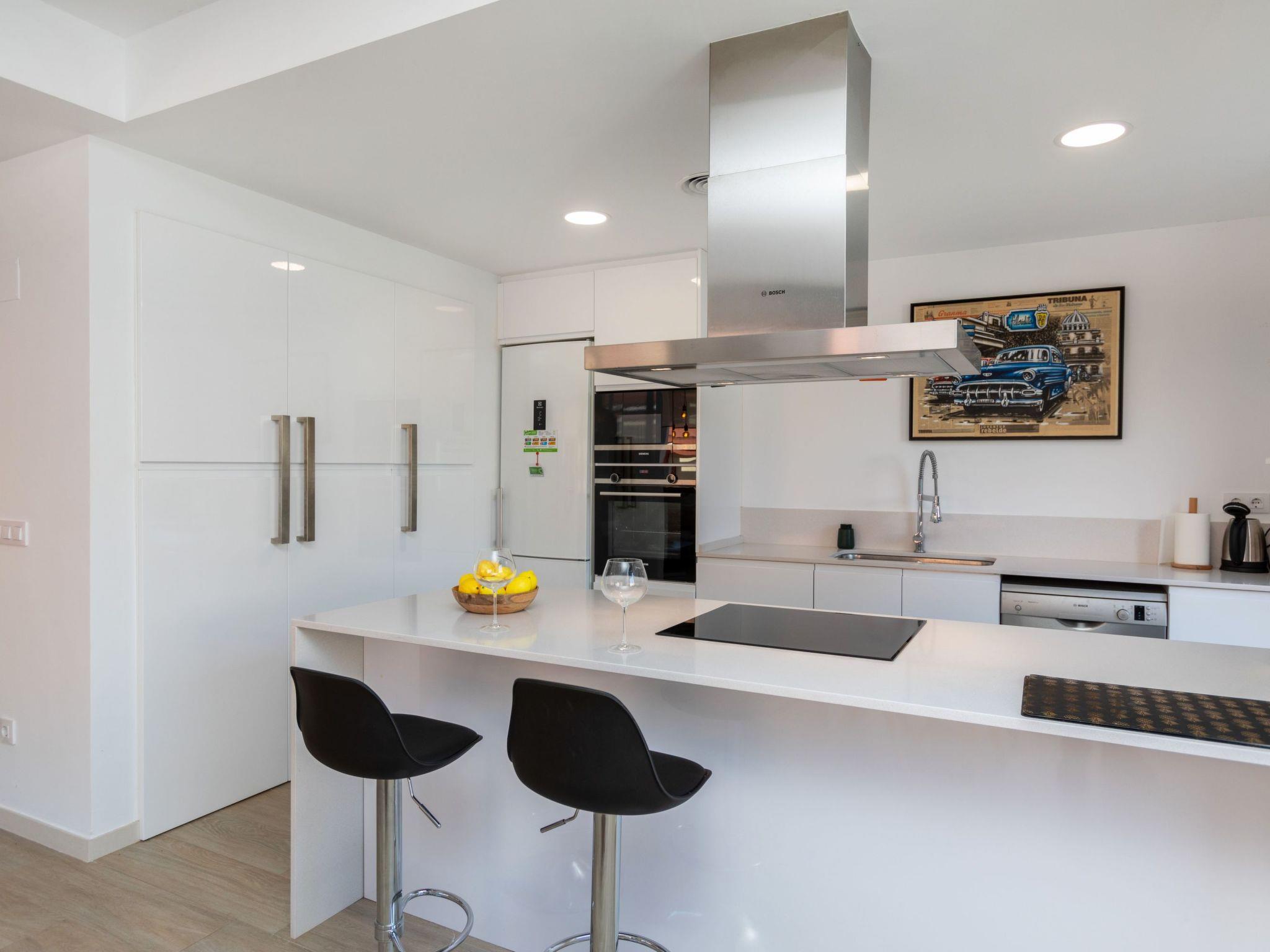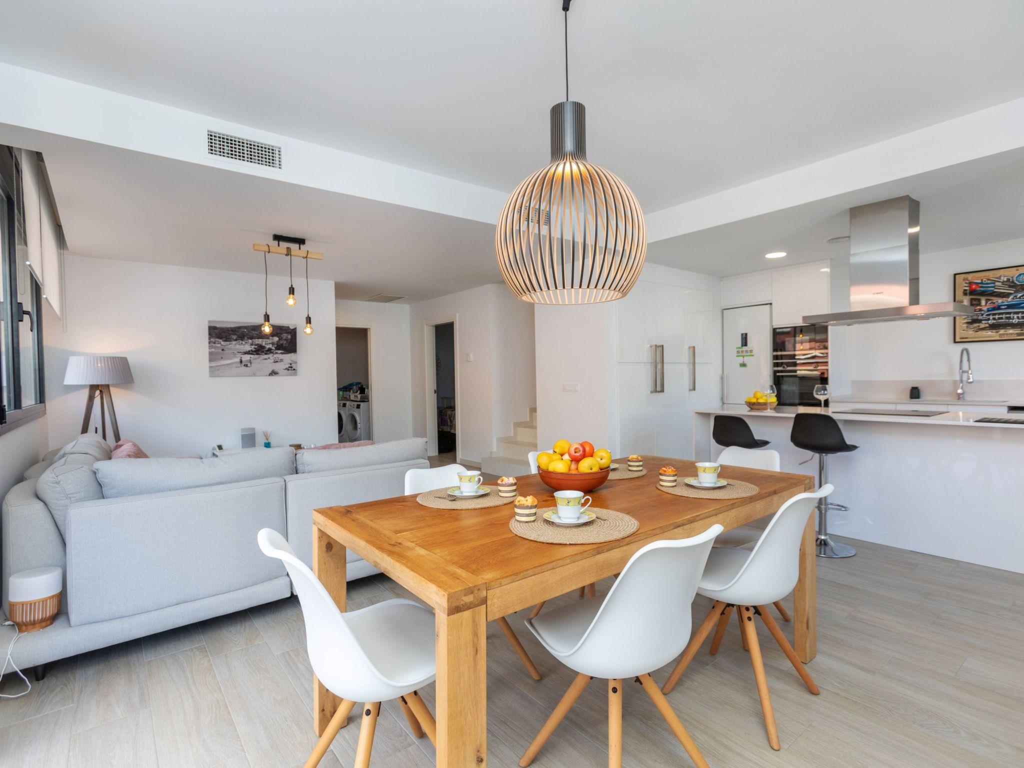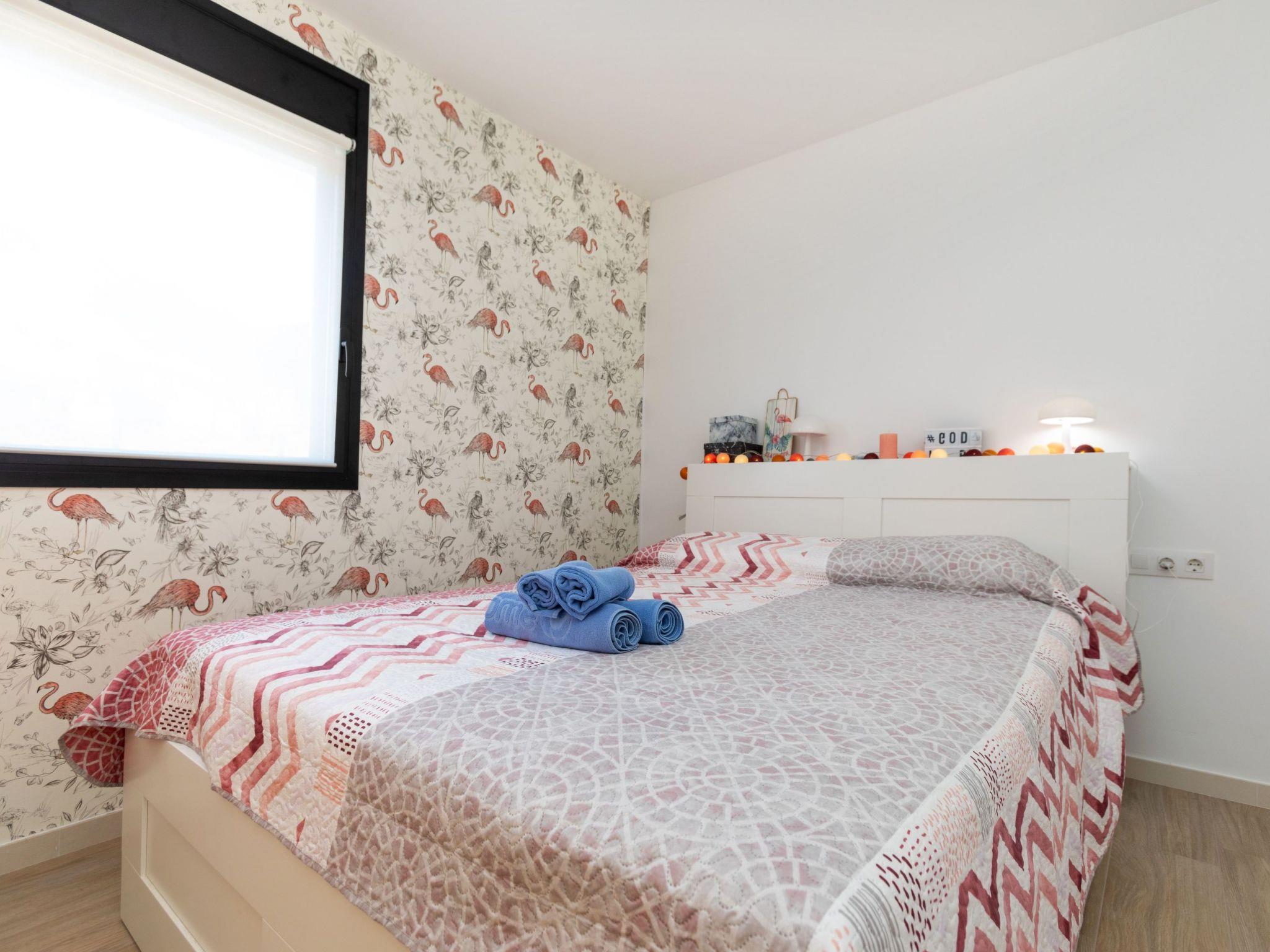 "Sa Riera White on the Beach", 5-room terraced house 150 m2 on 2 levels. Object suitable for 8 adults. Spacious and bright, comfortable and modern furnishings: open large living/dining room with shower/WC, TV, air conditioning and electric shutters. Exit to the terrace. 1 room with 1 french bed (160 cm, length 200 cm), air conditioning. Open kitchen (4 induction hot plates, toaster, kettle, microwave, freezer, electric coffee machine) with air conditioning. Shower/WC. Upper floor: 1 room with 1 french bed (180 cm, length 200 cm), bath/WC and air conditioning. 1 room with 1 french bed (160 cm, length 200 cm), air conditioning. 1 room with 2 beds (90 cm, length 200 cm), air conditioning. Large terrace. Terrace furniture, barbecue, deck chairs (2). Facilities: washing machine, iron, children's high chair, baby cot, hair dryer. Garage (2 cars). Please note: TV only ES. HUTG-067007 // Reg. Nr.: ESFCTU00001701400048754900000000000000000HUTG-0670071