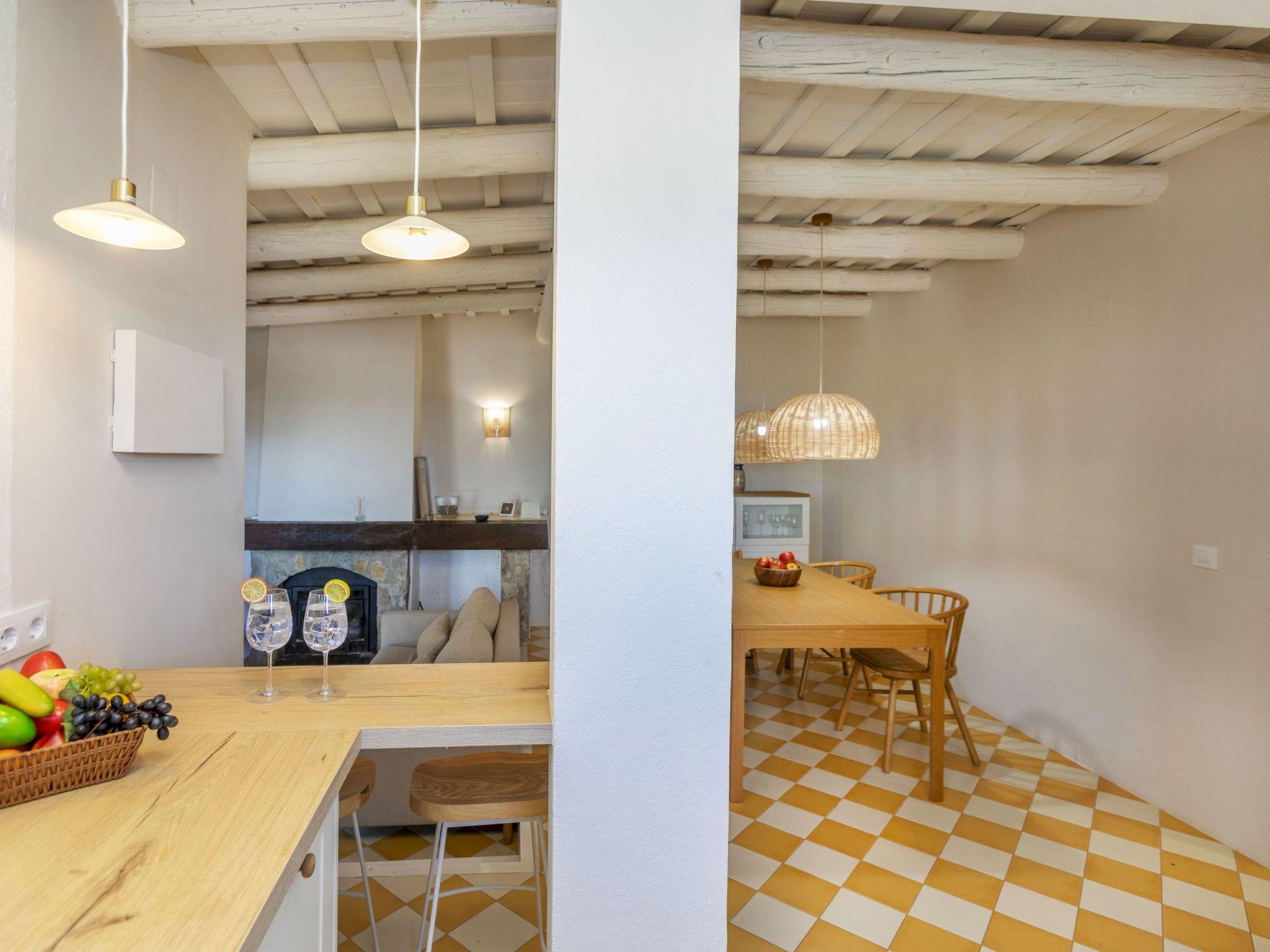 "Villa Joan Salvat", 3-room house 70 m2. Bright, practical and comfortable furnishings: living/dining room with dining table, digital TV, air conditioning and forced-air heating. Exit to the terrace. 1 room with 1 french bed (140 cm, length 190 cm). 1 room with 1 french bed (140 cm, length 190 cm). Open kitchen (dishwasher, 3 ceramic glass hob hotplates, toaster, kettle, microwave). Bath/WC. Small terrace. Terrace furniture. View of the mountains and the countryside. Facilities: washing machine, iron, children's high chair, baby cot for up to 2 year olds, hair dryer. Internet (WiFi, free). Please note: non-smoking house. TV only ES. HUTG-058853 // Reg. Nr.: ESFCTU00001701400001555100000000000000000000000588539
