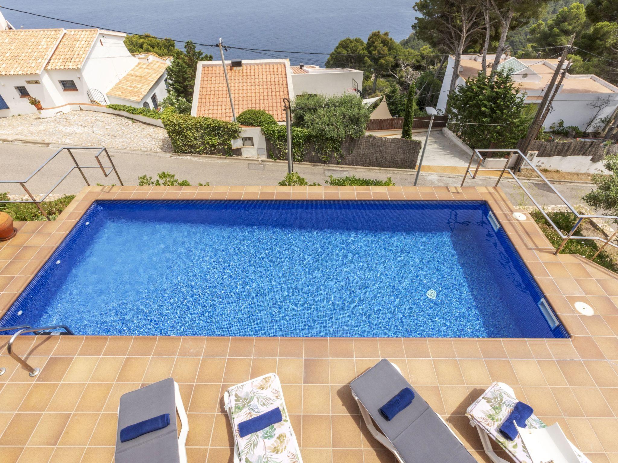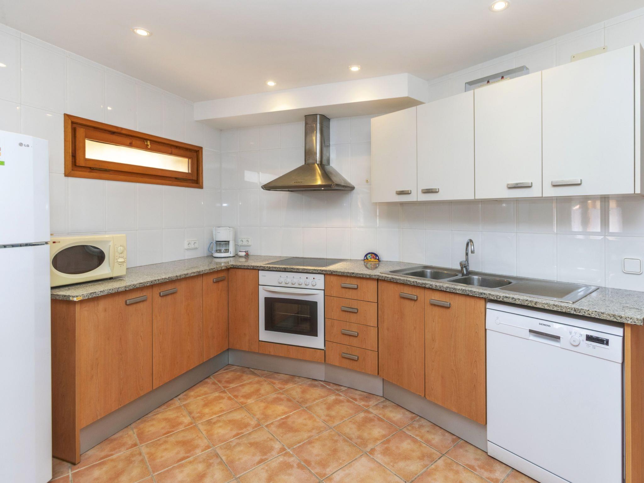 "Ses Falguerines", 4-room apartment 80 m2. Practical and comfortable furnishings: living/dining room with digital TV. Exit to the terrace, to the swimming pool. 1 room with 2 beds (90 cm, length 190 cm). 1 children's room with 2 beds (90 cm, length 180 cm). 1 room with 1 french bed (180 cm, length 190 cm). Open kitchen (oven, dishwasher, 4 induction hot plates, toaster, microwave, electric coffee machine). 2 showers/WC. Terrace furniture, deck chairs (4), covered balcony. Marvellous view of the sea. Facilities: washing machine, iron, children's high chair, baby cot for up to 2 year olds, hair dryer. Please note: non-smokers only. The pool mentioned in the description is for private use. HUTG-021065 // Reg. Nr.: ESFCTU00001701400018706700000000000000000HUTG-0210651