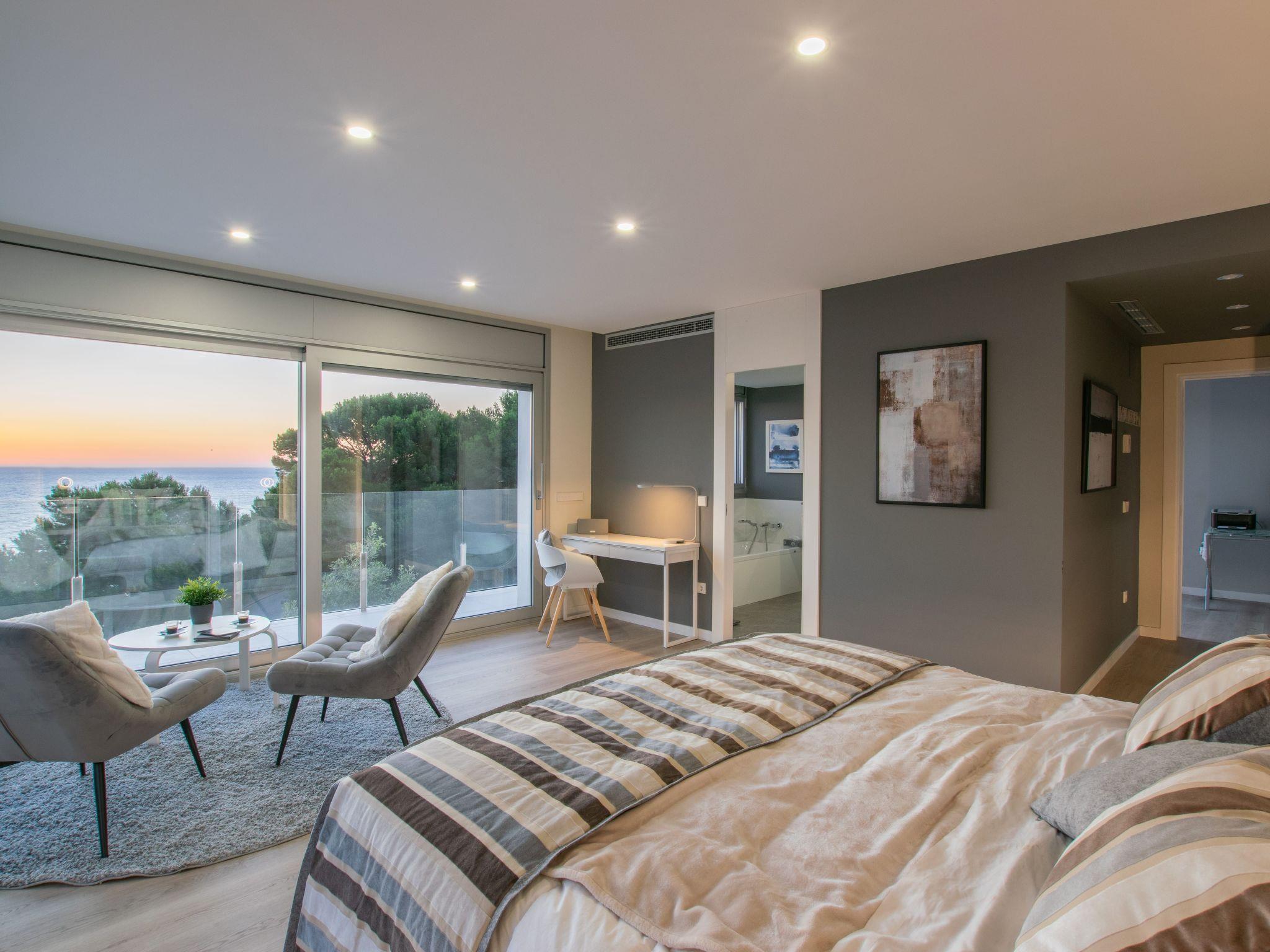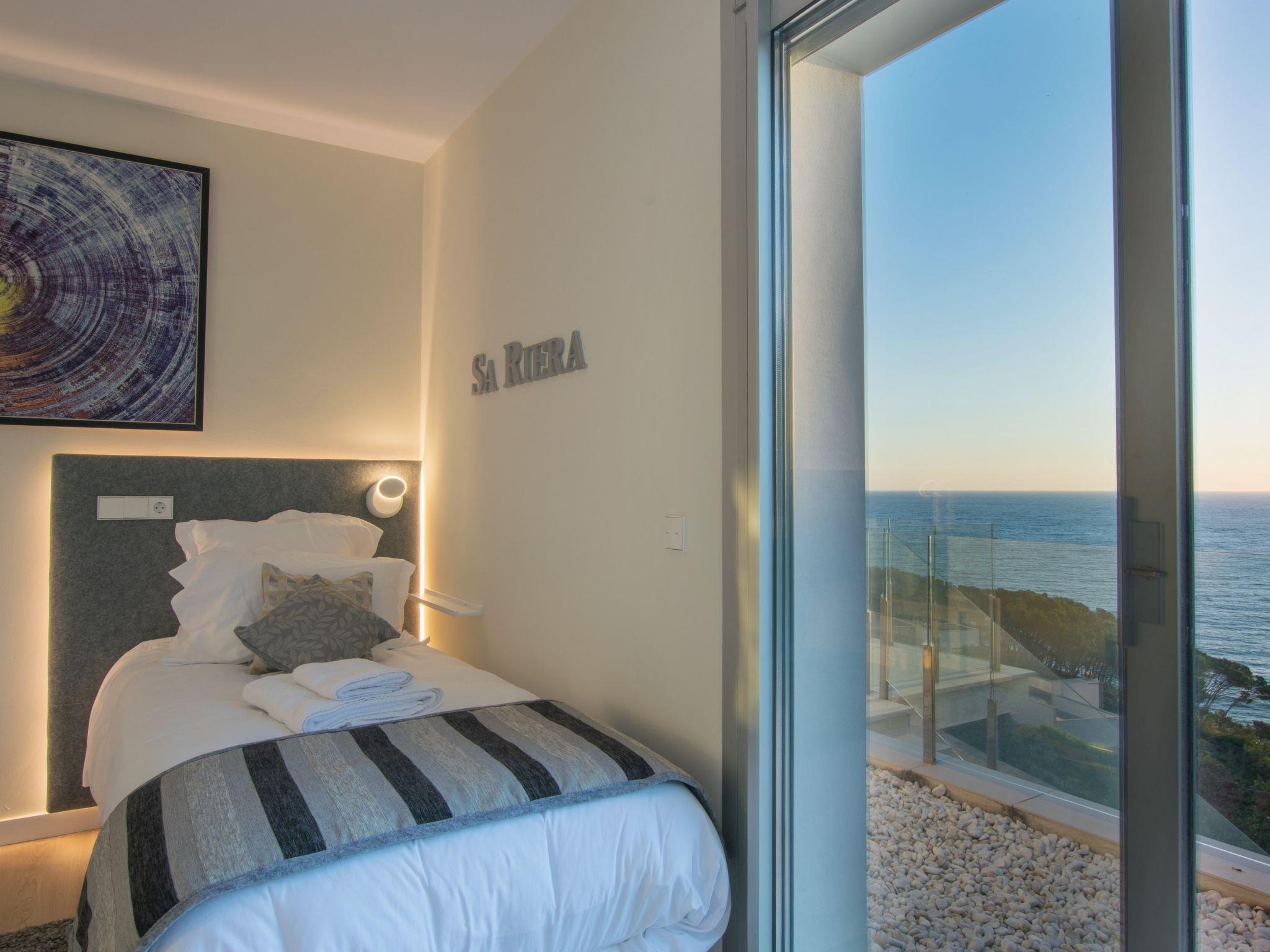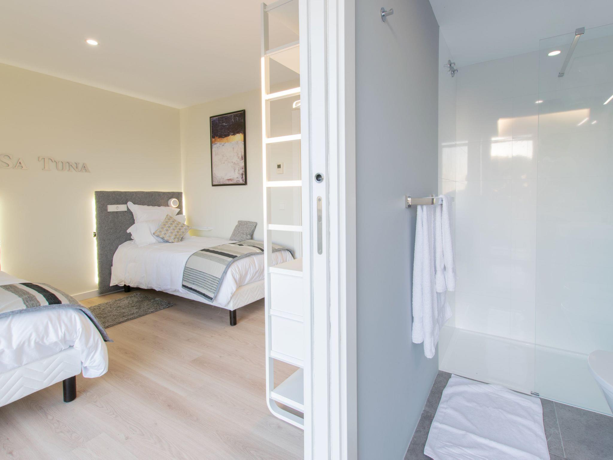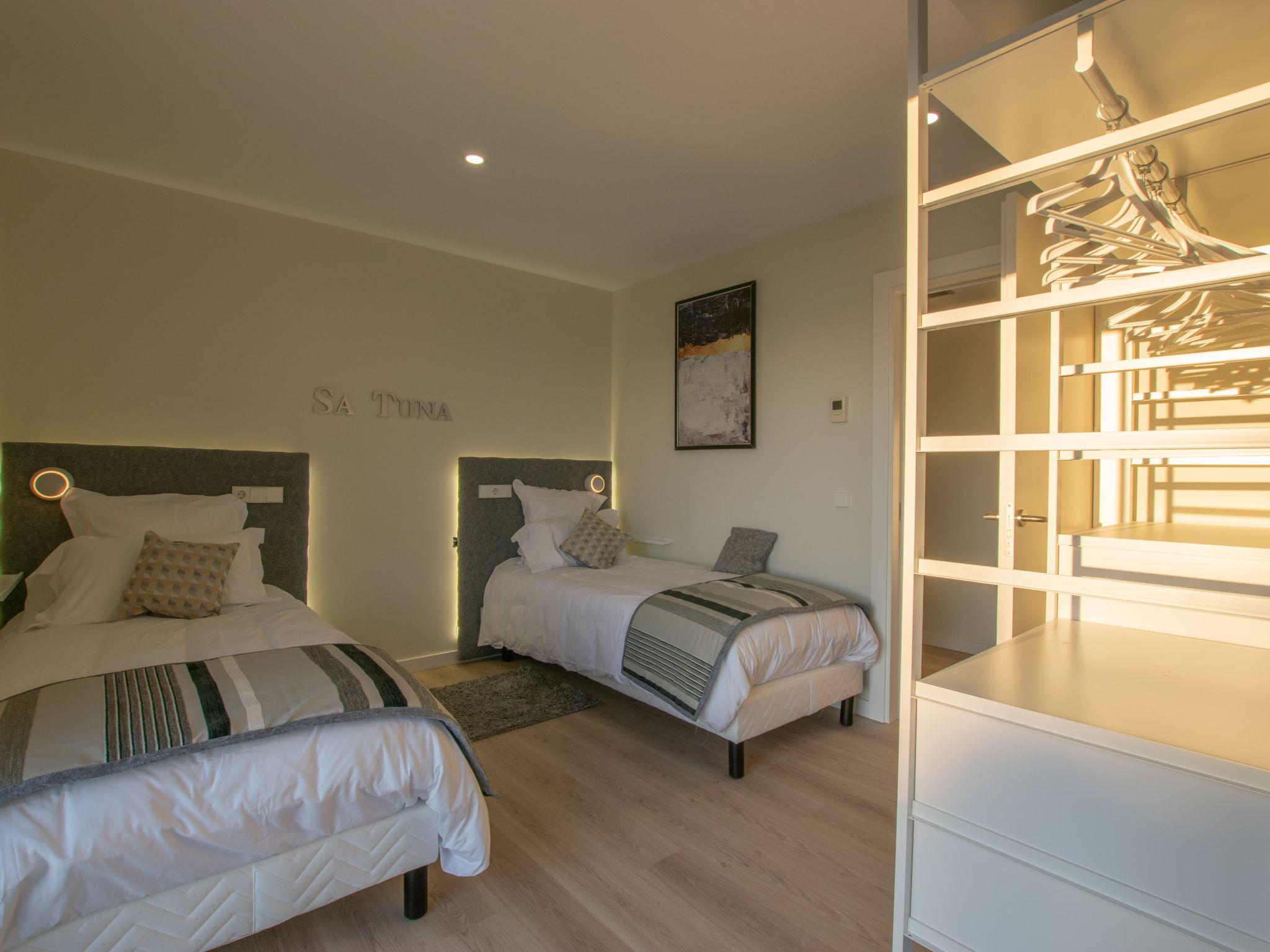 Accommodation:Descending one floor, you'll find the sleeping area, comprising 2 master suites, two en suite double bedrooms and a fifth bedroom with 2 bunk beds for children. All rooms have a sea view, and there is an office area with a screen and printer. The 4 en-suite bedrooms are on the seafront, while the dormitory is on the left-hand side of the house.The bedrooms are as follows:Aiguafreda: Large master suite with dressing room and en-suite bathroom. It has a 180x200 bed, two sofas, a desk area, a television and an independent dressing area. The bathroom has two sinks, a Jacuzzi bath, a walk-in shower, a toilet and a bidet.Aiguablava: Master suite with dressing room and en suite bathroom. It has a 180x200 bed, two sofas, a desk and a television. The bathroom has a sink, walk-in shower, toilet and bidet.Sa Riera : En suite bedroom with two 90x200 beds, private bathroom with sink, walk-in shower, toilet and bidet.Sa Tuna: En suite bedroom with two 90x200 beds, private bathroom with sink, walk-in shower, toilet and bidet.Dormitory: Room with two bunk beds (4 beds 90x200) for younger guests. The laundry room is next to the dormitory and has a washing machine and tumble dryer.The villa has an enclosed garage for two cars and a charging point for electric vehicles (Type 2). Casa Emnitan is located in a quiet, secluded area of around ten villas. It is accessed via a single road that links Sa Riera beach to Aiguafreda. The villa is in a cul-de-sac with another villa. From Casa Emnitan, you can take the path that runs alongside the sea to Sa Riera on one side and Aiguafreda on the other.