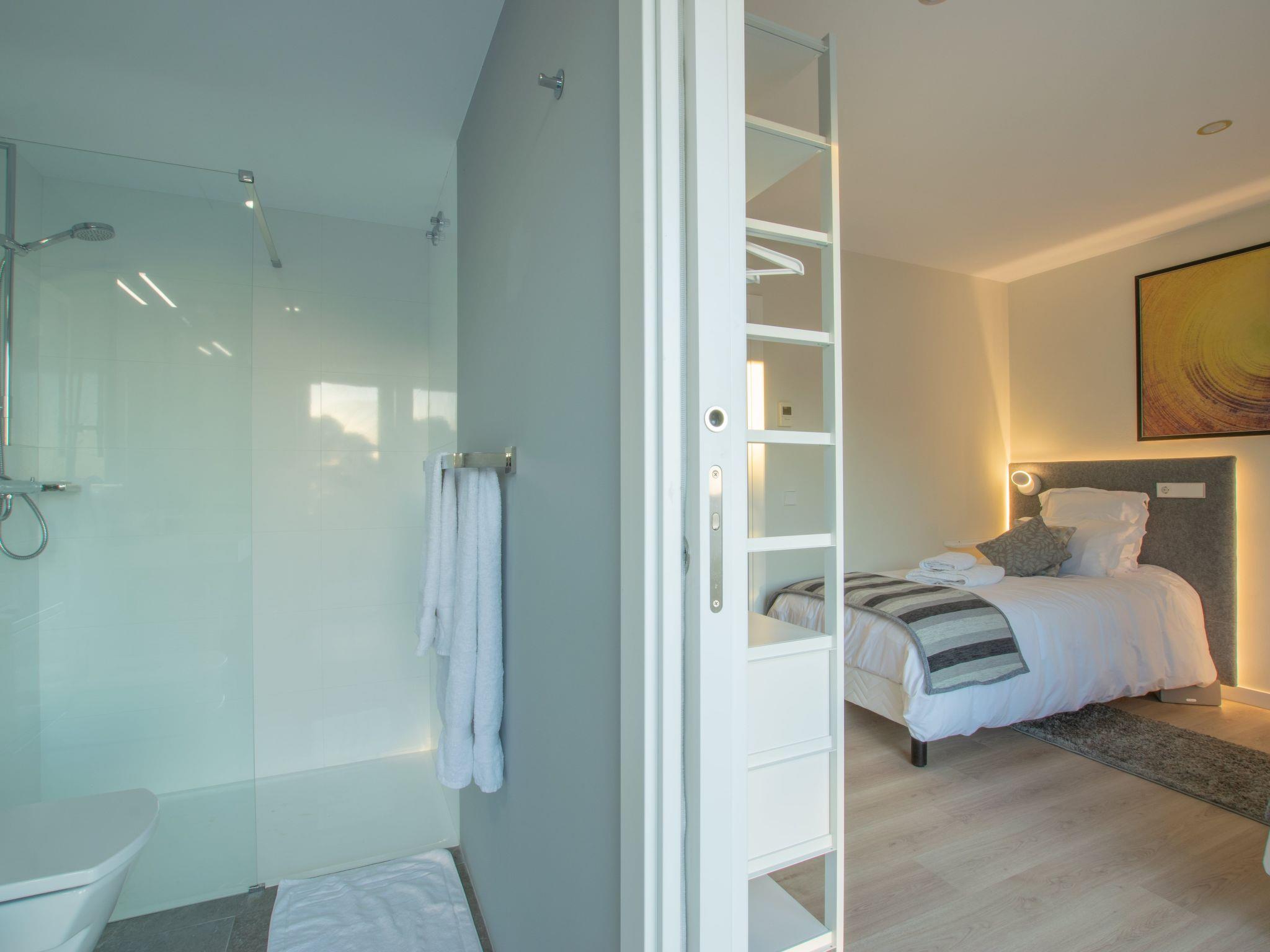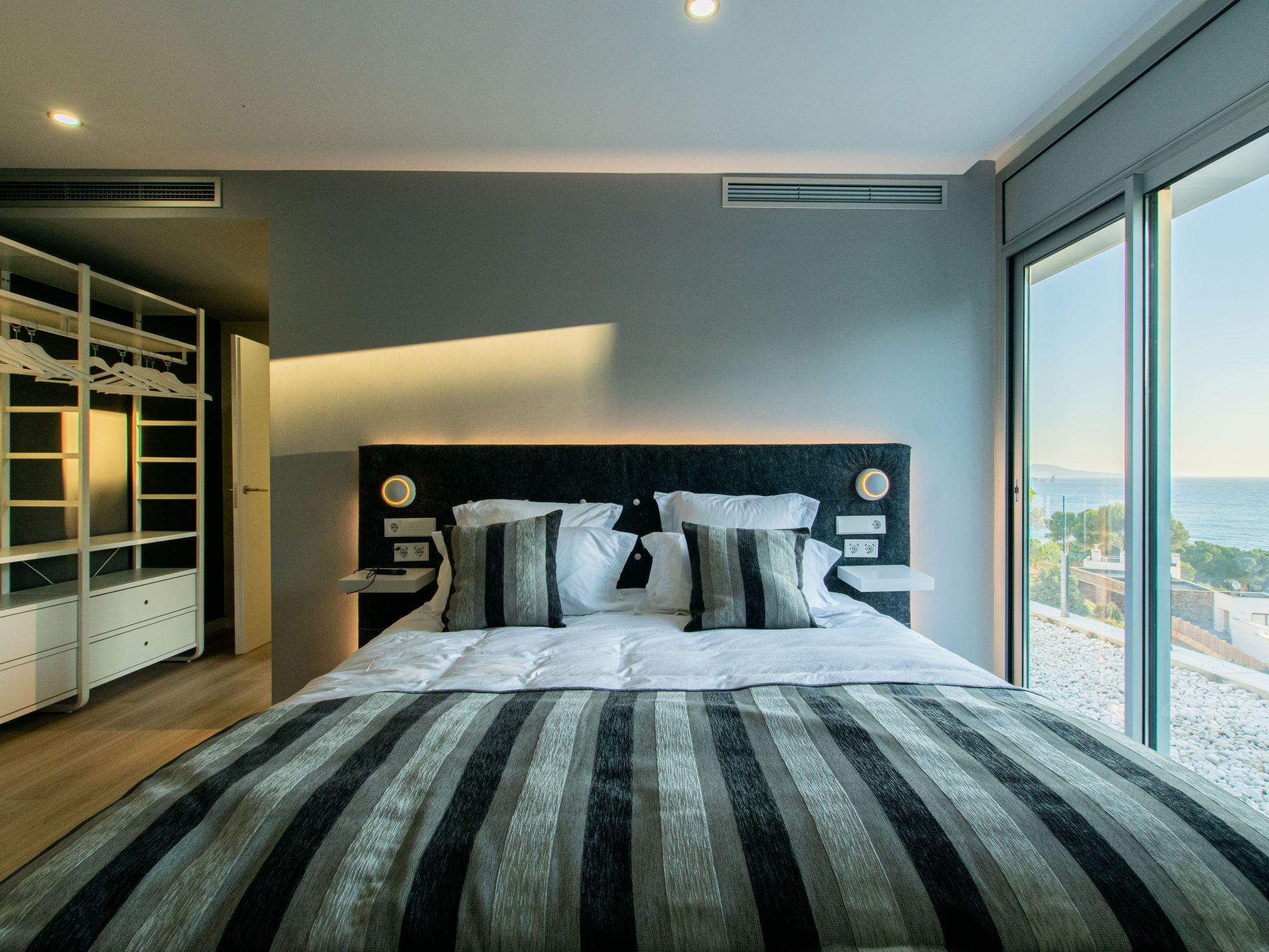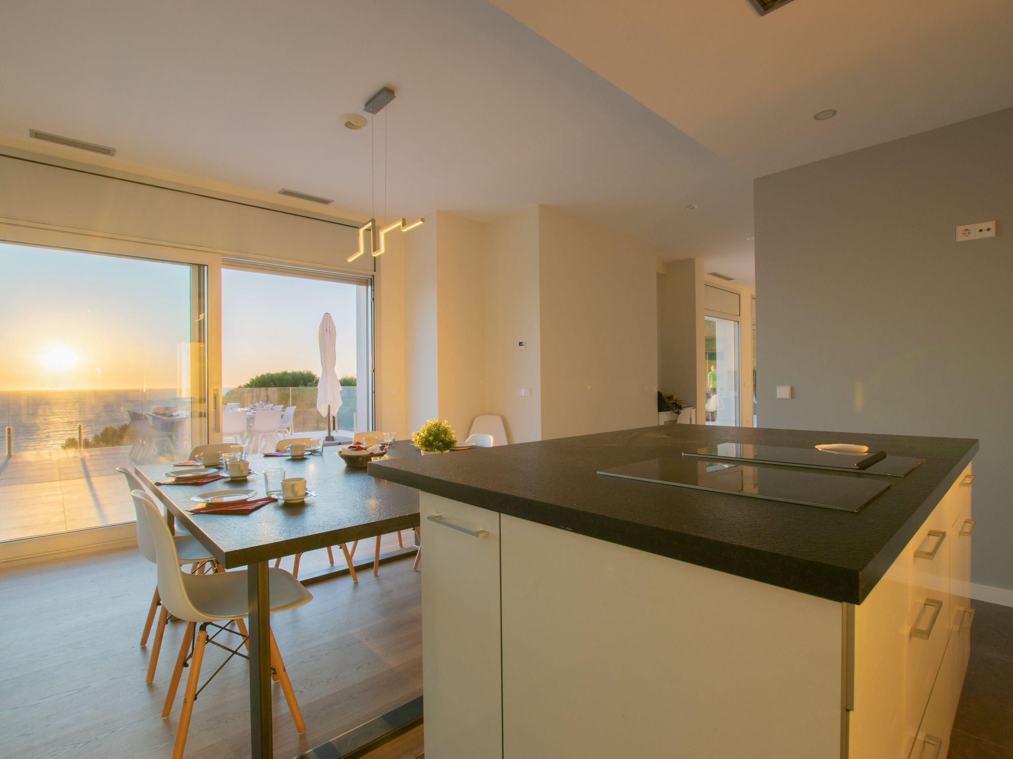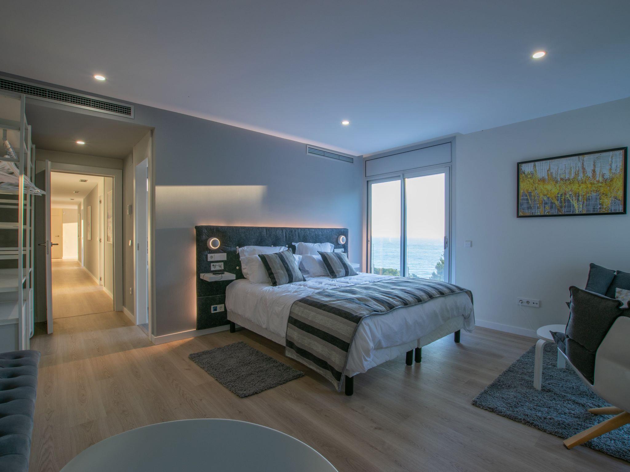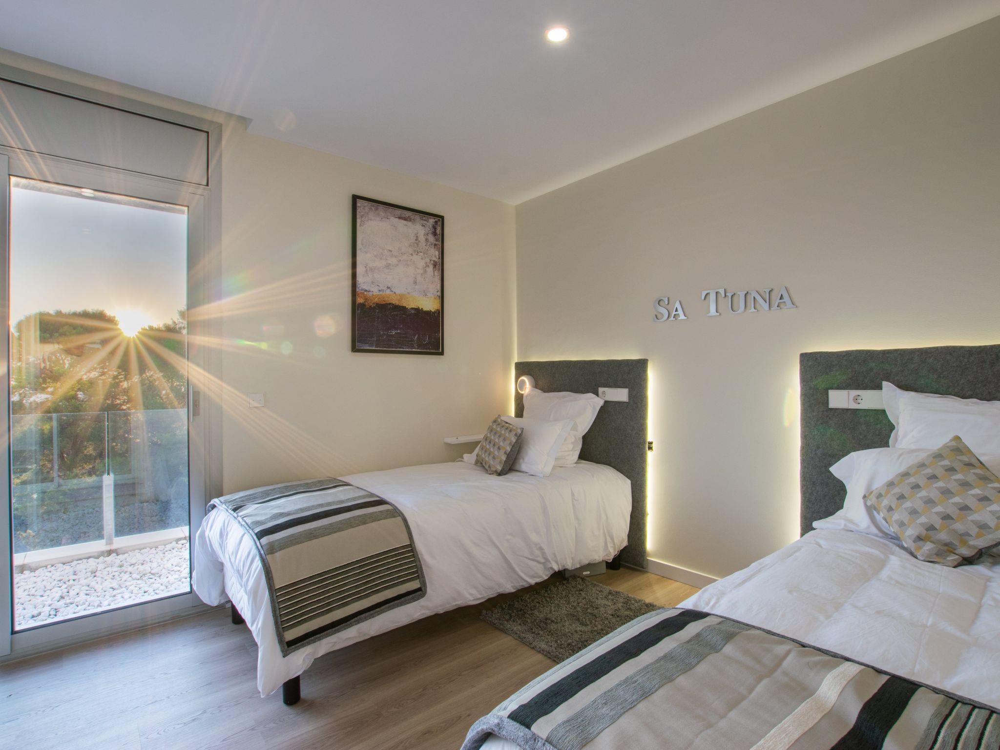 Accommodation:Descending one floor, you'll find the sleeping area, comprising 2 master suites, two en suite double bedrooms and a fifth bedroom with 2 bunk beds for children. All rooms have a sea view, and there is an office area with a screen and printer. The 4 en-suite bedrooms are on the seafront, while the dormitory is on the left-hand side of the house.The bedrooms are as follows:Aiguafreda: Large master suite with dressing room and en-suite bathroom. It has a 180x200 bed, two sofas, a desk area, a television and an independent dressing area. The bathroom has two sinks, a Jacuzzi bath, a walk-in shower, a toilet and a bidet.Aiguablava: Master suite with dressing room and en suite bathroom. It has a 180x200 bed, two sofas, a desk and a television. The bathroom has a sink, walk-in shower, toilet and bidet.Sa Riera : En suite bedroom with two 90x200 beds, private bathroom with sink, walk-in shower, toilet and bidet.Sa Tuna: En suite bedroom with two 90x200 beds, private bathroom with sink, walk-in shower, toilet and bidet.Dormitory: Room with two bunk beds (4 beds 90x200) for younger guests. The laundry room is next to the dormitory and has a washing machine and tumble dryer.The villa has an enclosed garage for two cars and a charging point for electric vehicles (Type 2). Casa Emnitan is located in a quiet, secluded area of around ten villas. It is accessed via a single road that links Sa Riera beach to Aiguafreda. The villa is in a cul-de-sac with another villa. From Casa Emnitan, you can take the path that runs alongside the sea to Sa Riera on one side and Aiguafreda on the other.