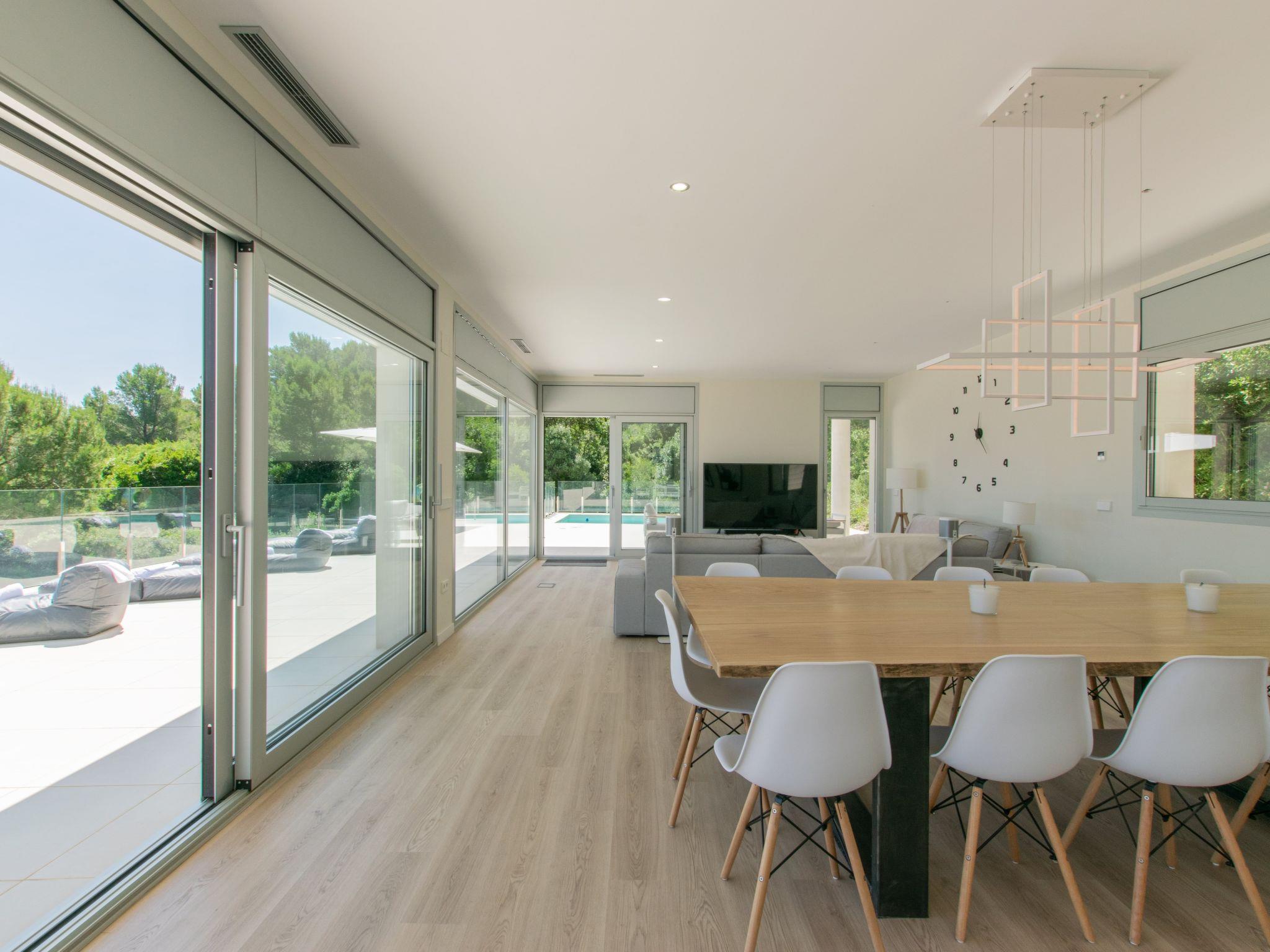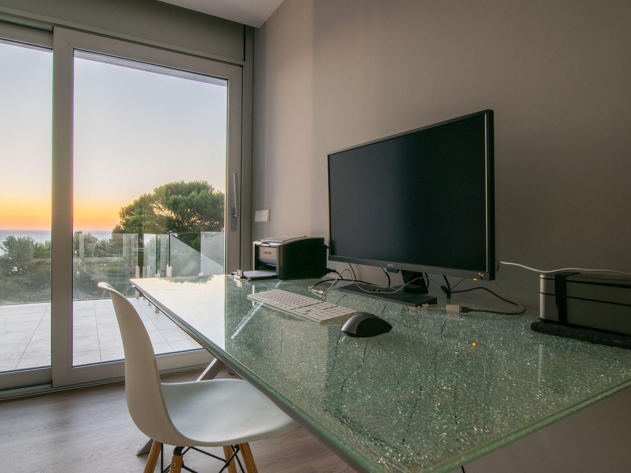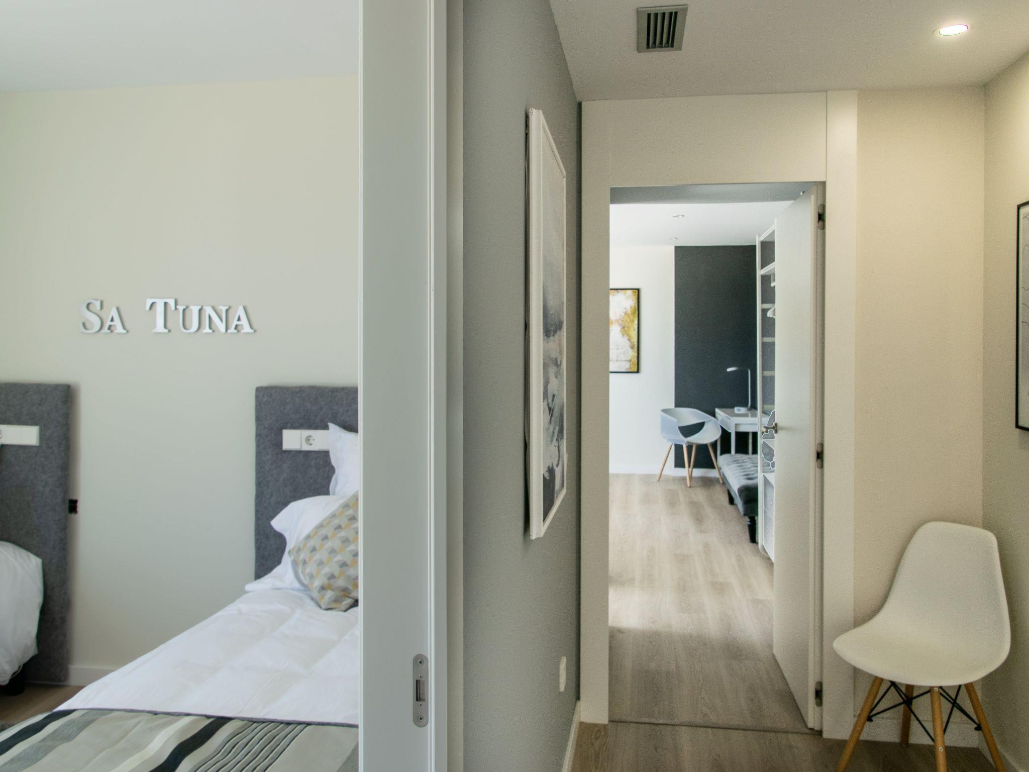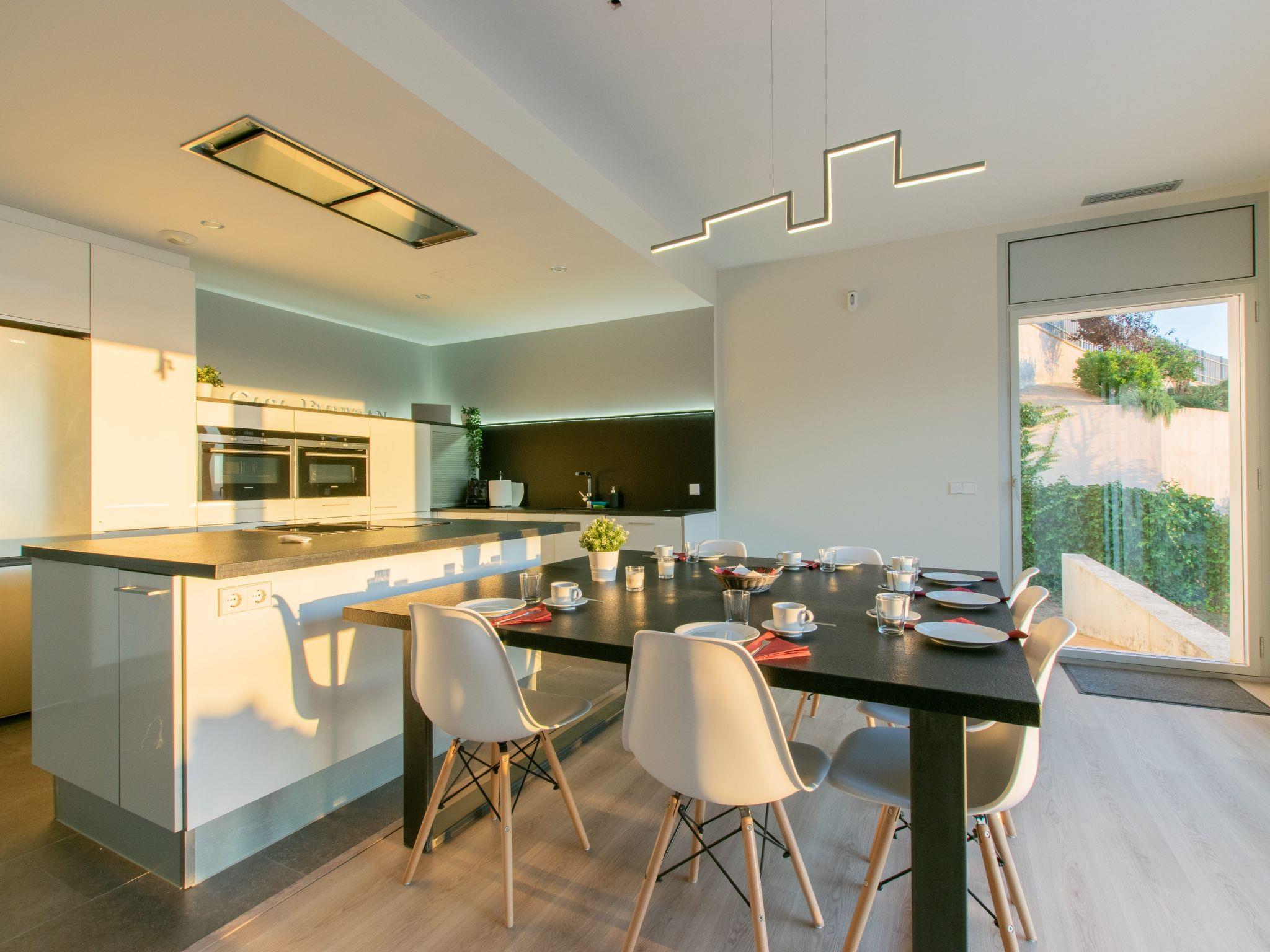 Accommodation:Descending one floor, you'll find the sleeping area, comprising 2 master suites, two en suite double bedrooms and a fifth bedroom with 2 bunk beds for children. All rooms have a sea view, and there is an office area with a screen and printer. The 4 en-suite bedrooms are on the seafront, while the dormitory is on the left-hand side of the house.The bedrooms are as follows:Aiguafreda: Large master suite with dressing room and en-suite bathroom. It has a 180x200 bed, two sofas, a desk area, a television and an independent dressing area. The bathroom has two sinks, a Jacuzzi bath, a walk-in shower, a toilet and a bidet.Aiguablava: Master suite with dressing room and en suite bathroom. It has a 180x200 bed, two sofas, a desk and a television. The bathroom has a sink, walk-in shower, toilet and bidet.Sa Riera : En suite bedroom with two 90x200 beds, private bathroom with sink, walk-in shower, toilet and bidet.Sa Tuna: En suite bedroom with two 90x200 beds, private bathroom with sink, walk-in shower, toilet and bidet.Dormitory: Room with two bunk beds (4 beds 90x200) for younger guests. The laundry room is next to the dormitory and has a washing machine and tumble dryer.The villa has an enclosed garage for two cars and a charging point for electric vehicles (Type 2). Casa Emnitan is located in a quiet, secluded area of around ten villas. It is accessed via a single road that links Sa Riera beach to Aiguafreda. The villa is in a cul-de-sac with another villa. From Casa Emnitan, you can take the path that runs alongside the sea to Sa Riera on one side and Aiguafreda on the other.