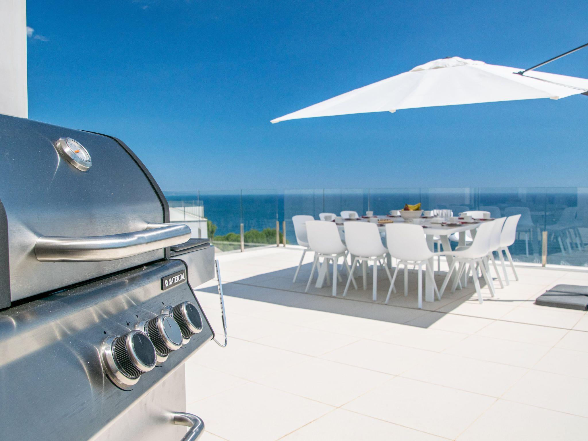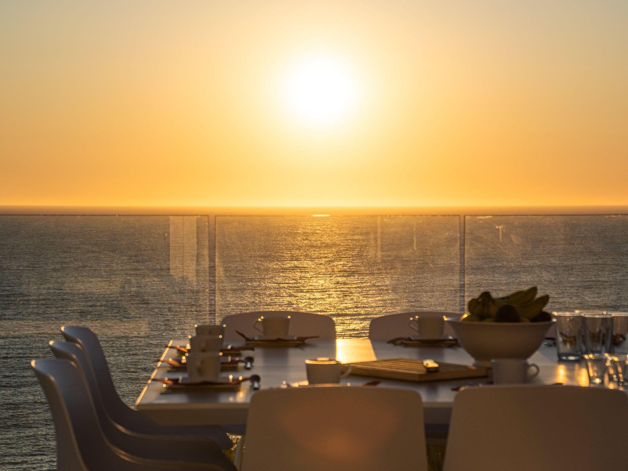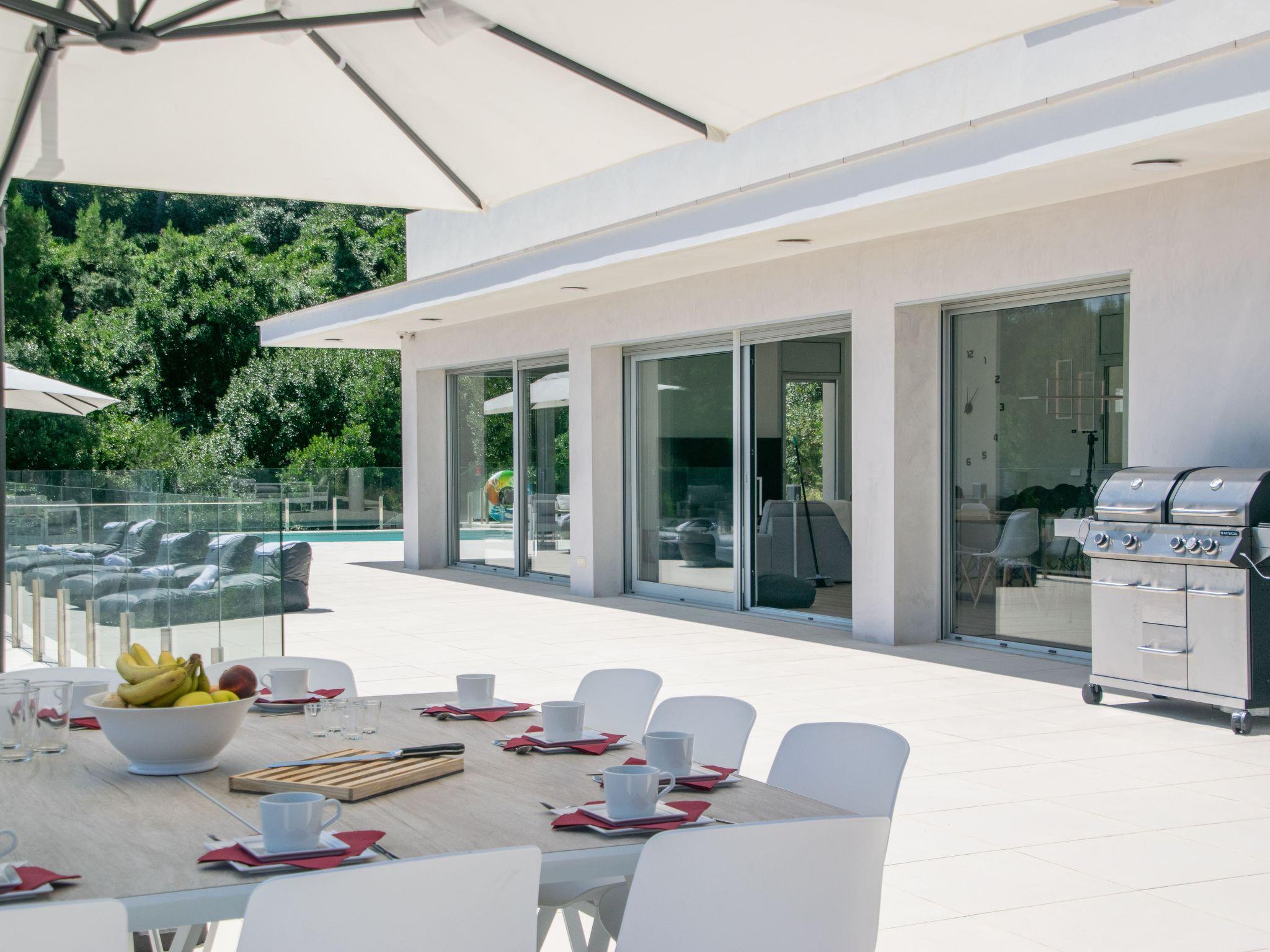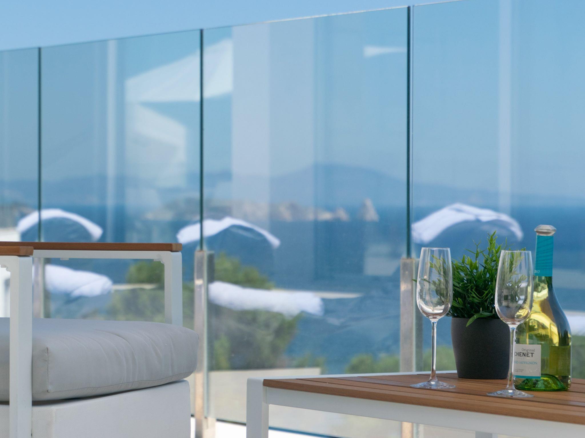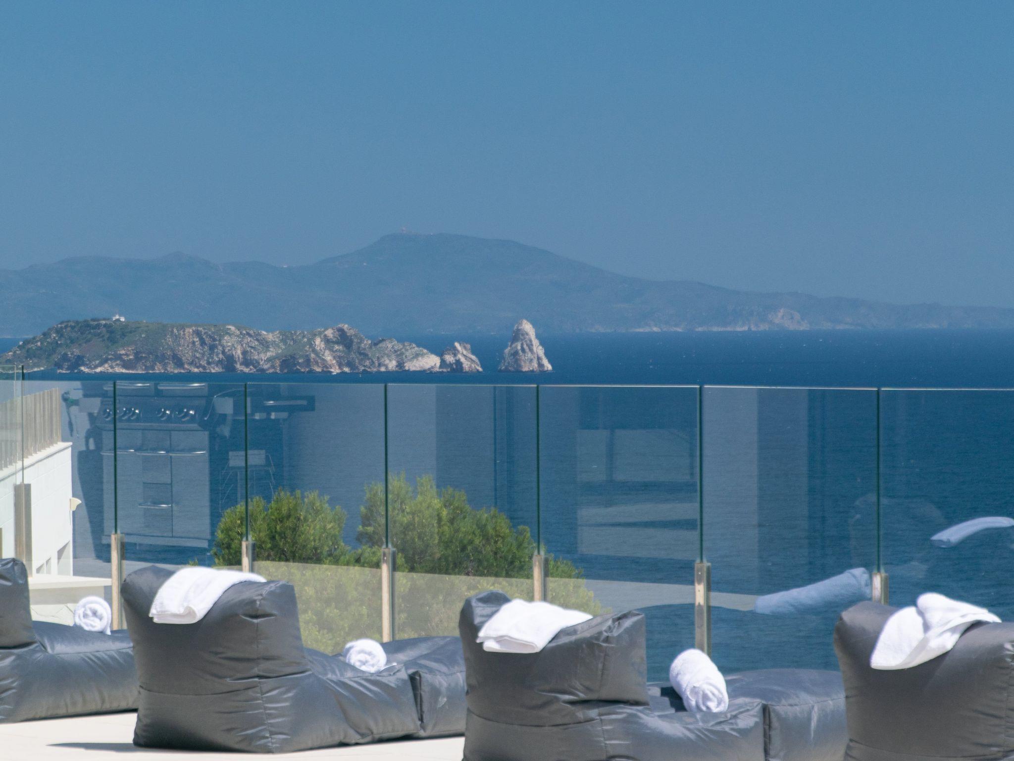 As soon as you enter the house, you will enjoy an exceptional view of the sea. As you go down one floor, you will find on your right the dining room with an oak table for 12 people, then the living room with its sofas and big screen TV. On the left there is a toilet and a large, fully-equipped kitchen with a central island, double fridge, microwave and traditional oven, dishwasher, Nespresso, and a dining table. All the rooms have sea views and direct access to the terrace of over 120m2. A garden table and 12 chairs await you to enjoy this space facing the sea. The swimming pool is to the right of the terrace, out of sight. Fatboy sun loungers allow you to enjoy the space around the pool.