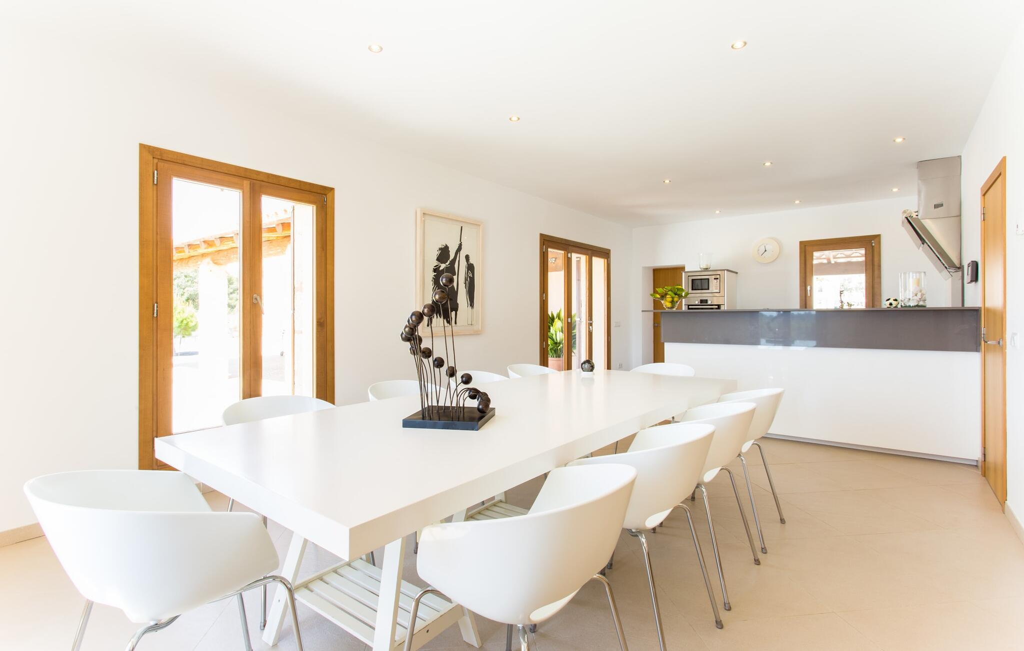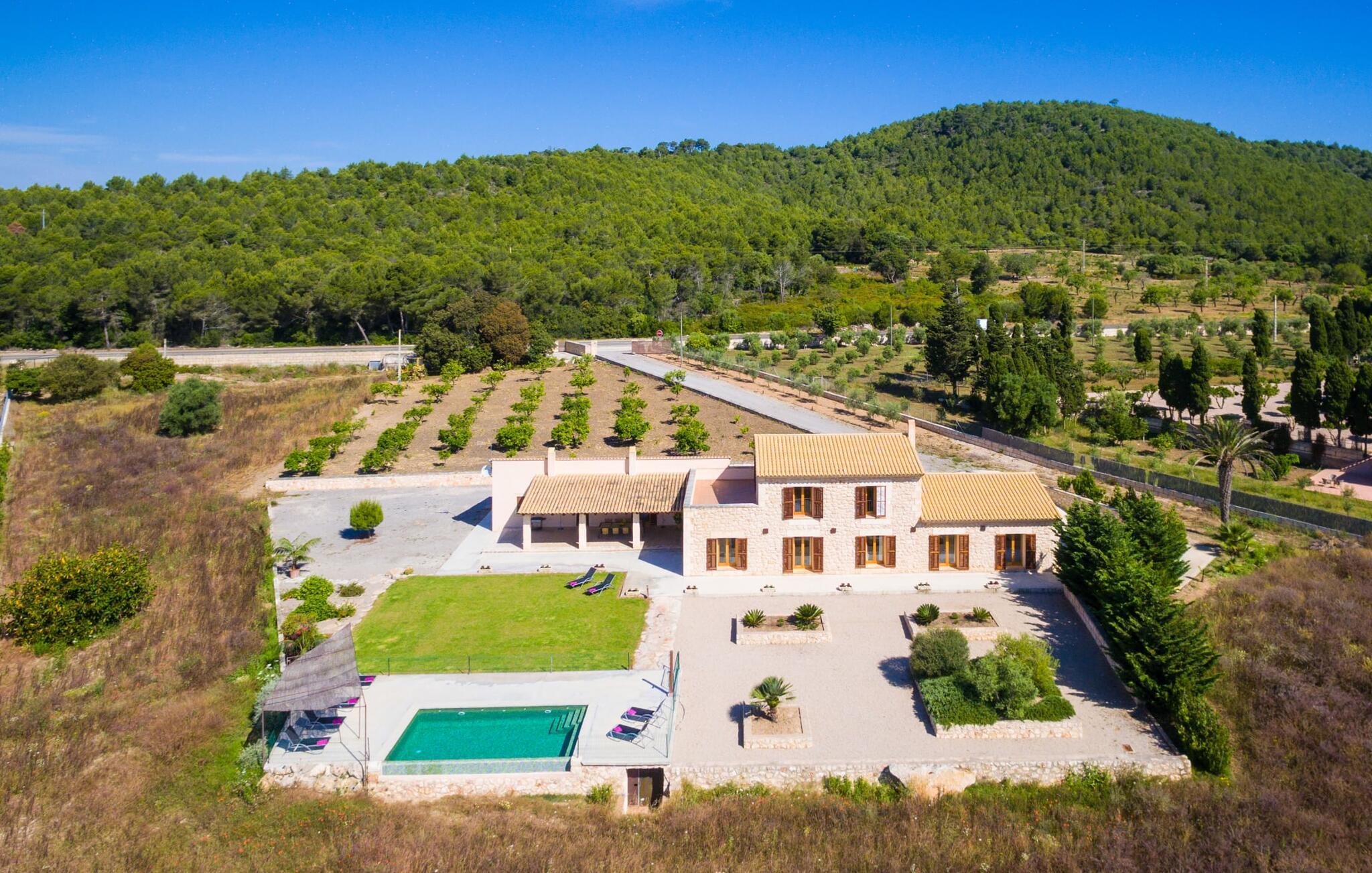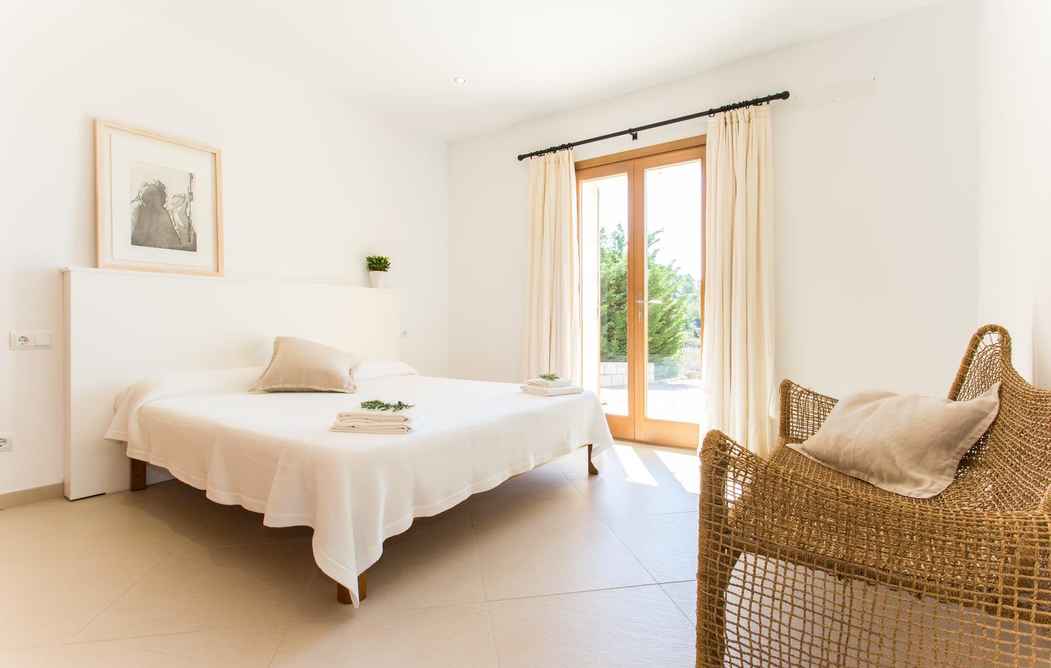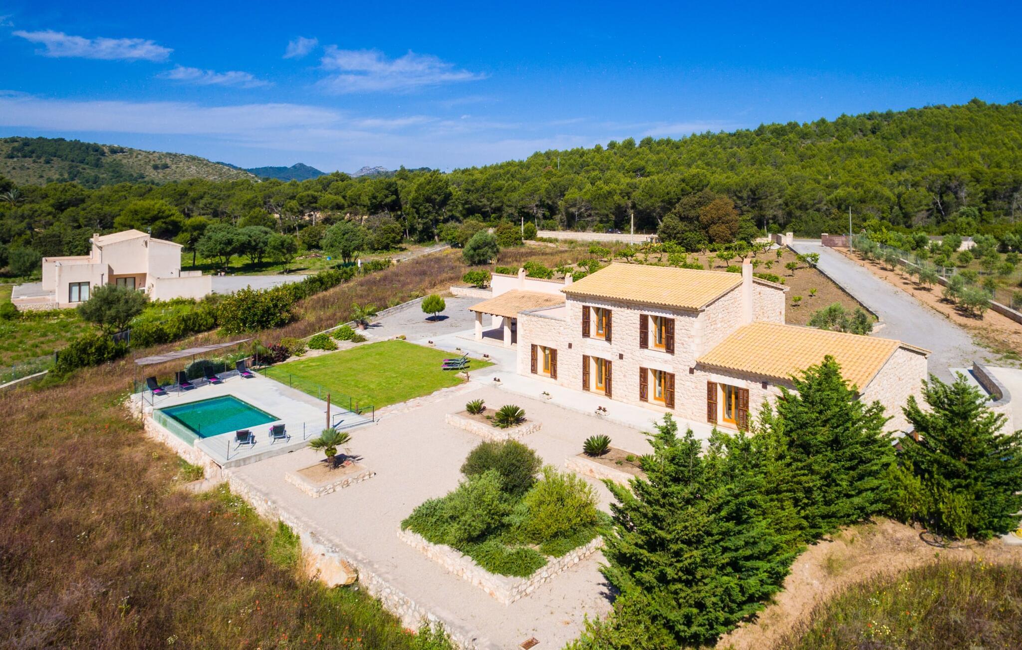 Selv når du forlater villaen for å utforske området rundt, vil du finne mange naturlige fargetoner. Villaen ligger rett ved en vei, som du noen ganger kan høre. Fordelen med dette er imidlertid at du har gode forbindelser, og du kan gjøre dine daglige innkjøp i landsbyen Son Servera, som ligger bare 7 km unna og innbyr til en spasertur med sine bratte smug. På veien dit passerer du Pula golfbane, hvor du kan trene på handikappet ditt. Eller du kan kjøre til den livlige kystbyen Cala Millor, som ligger bare 7 kilometer fra villaen din. Her kan du besøke det lokale markedet på søndager, hvor du kan kjøpe fersk fisk som fiskerne har fanget om morgenen. Du kan selvfølgelig også ta en dukkert i havet, for takket være den fine, hvite sanden og den utmerkede vannkvaliteten er det lett og uproblematisk å gå i sjøen. Costa de los Pinos, med sitt turkise vann og idylliske bukter som får ethvert feriehjerte til å banke raskere, ligger bare 8 minutter unna. For å runde av dagen kan du nyte den uforglemmelige kveldsstemningen i den lille byen Artà, ca. 7,6 km unna, med sine mange svingete smug. Villa Bell Jardi kombinerer århundrer med tradisjon med uovertruffen modernitet, og er et bevis på allsidigheten i denne spesielle regionen på Mallorca. Her står Son Servera med sine bratte gater i sterk kontrast til den vakre, milde naturen som omgir den. Hvis du elsker havet og naturen, vil de mange vakre kystbyene og strendene, som Cala Millor, Cala Bona, Costa dels Pins og Cala Agulla, få deg til å føle at du er i paradis, og gjett hva: Det er du virkelig! Artà, middelalderbyen med magisk sjarm, ligger bare en 10-minutters kjøretur unna.