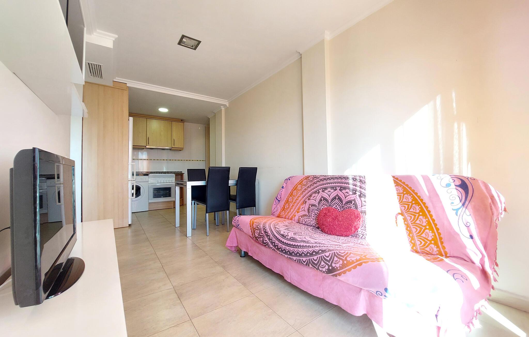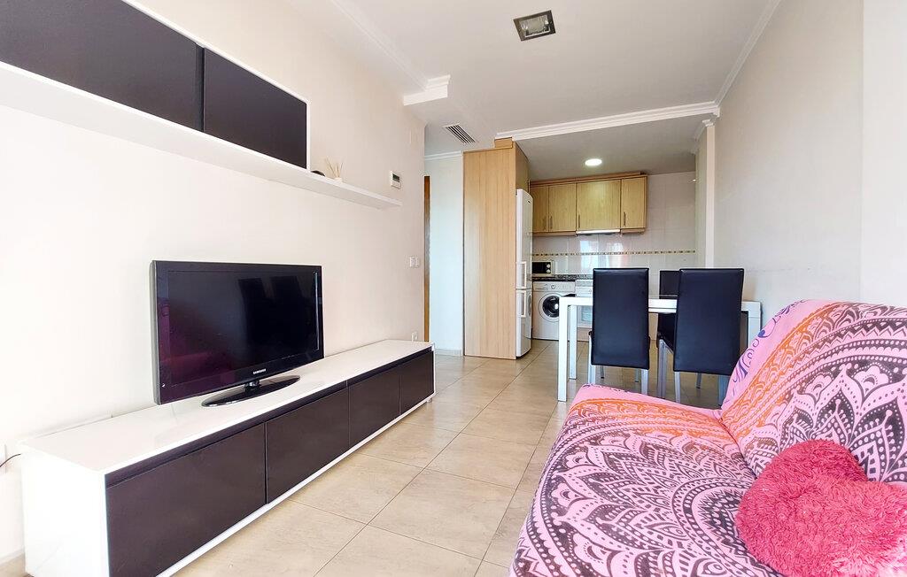 Tilbring bekymringsløse ferier i denne sjarmerende leiligheten med vakker utsikt. Boligen ligger bare en kort spasertur fra strendene på Costa de Valencia. Gå inn i den funksjonelle, åpne stue- og spisestuen med sofa, TV og direkte tilgang til balkongen. På det kompakte kjøkkenet kan du lage små måltider og snacks til utfluktene dine.