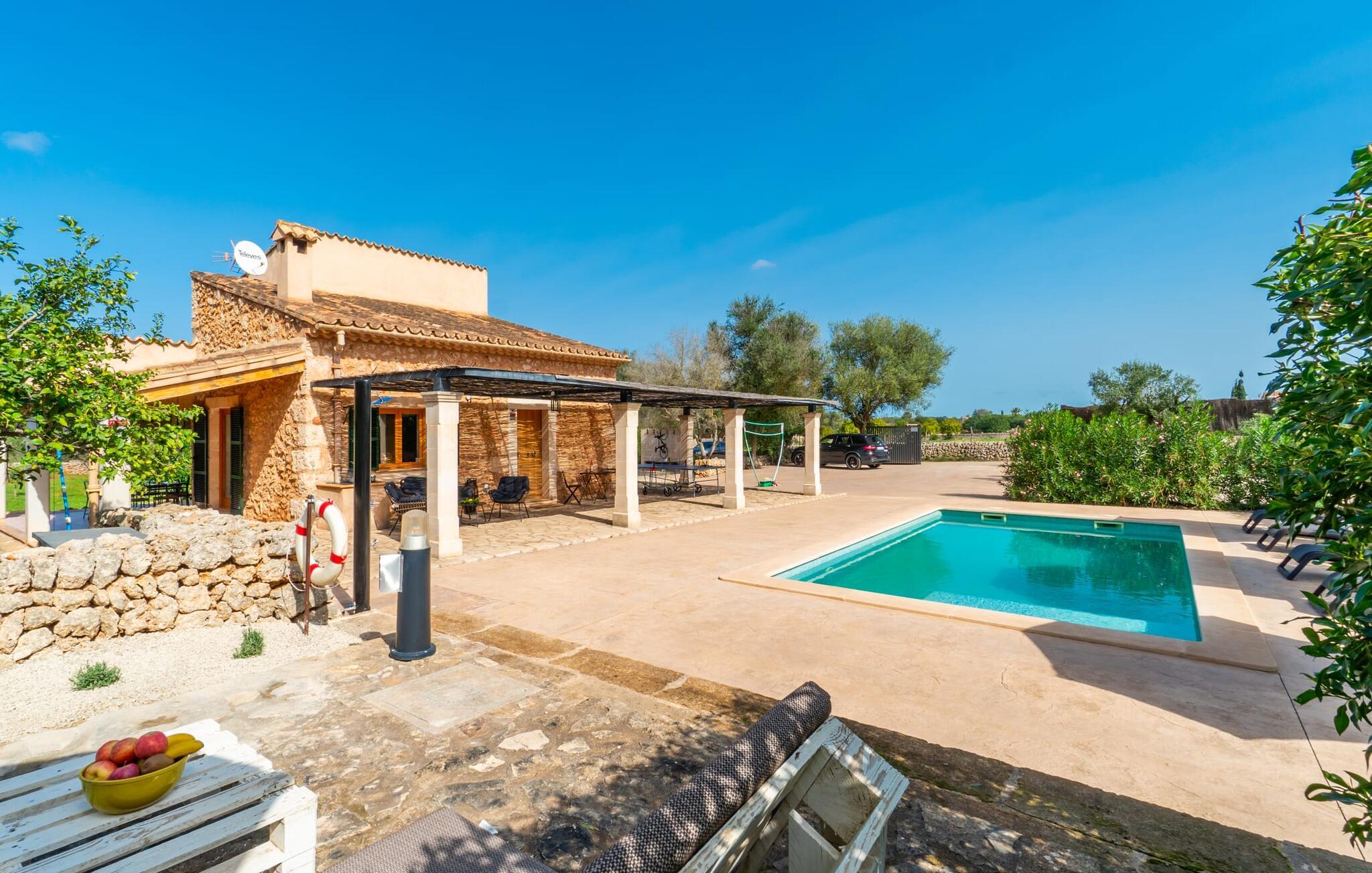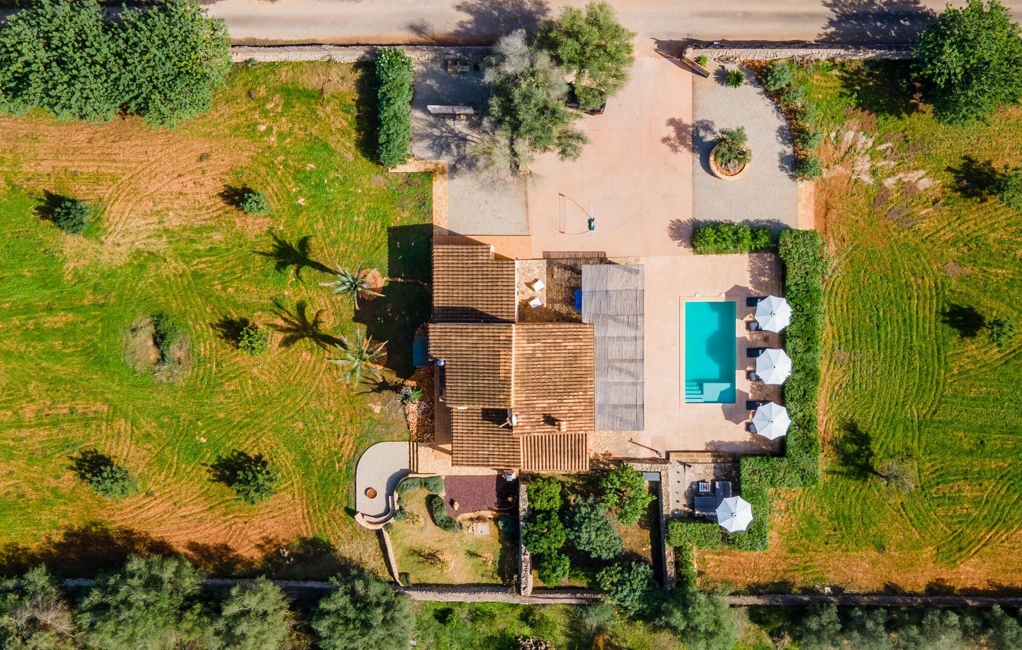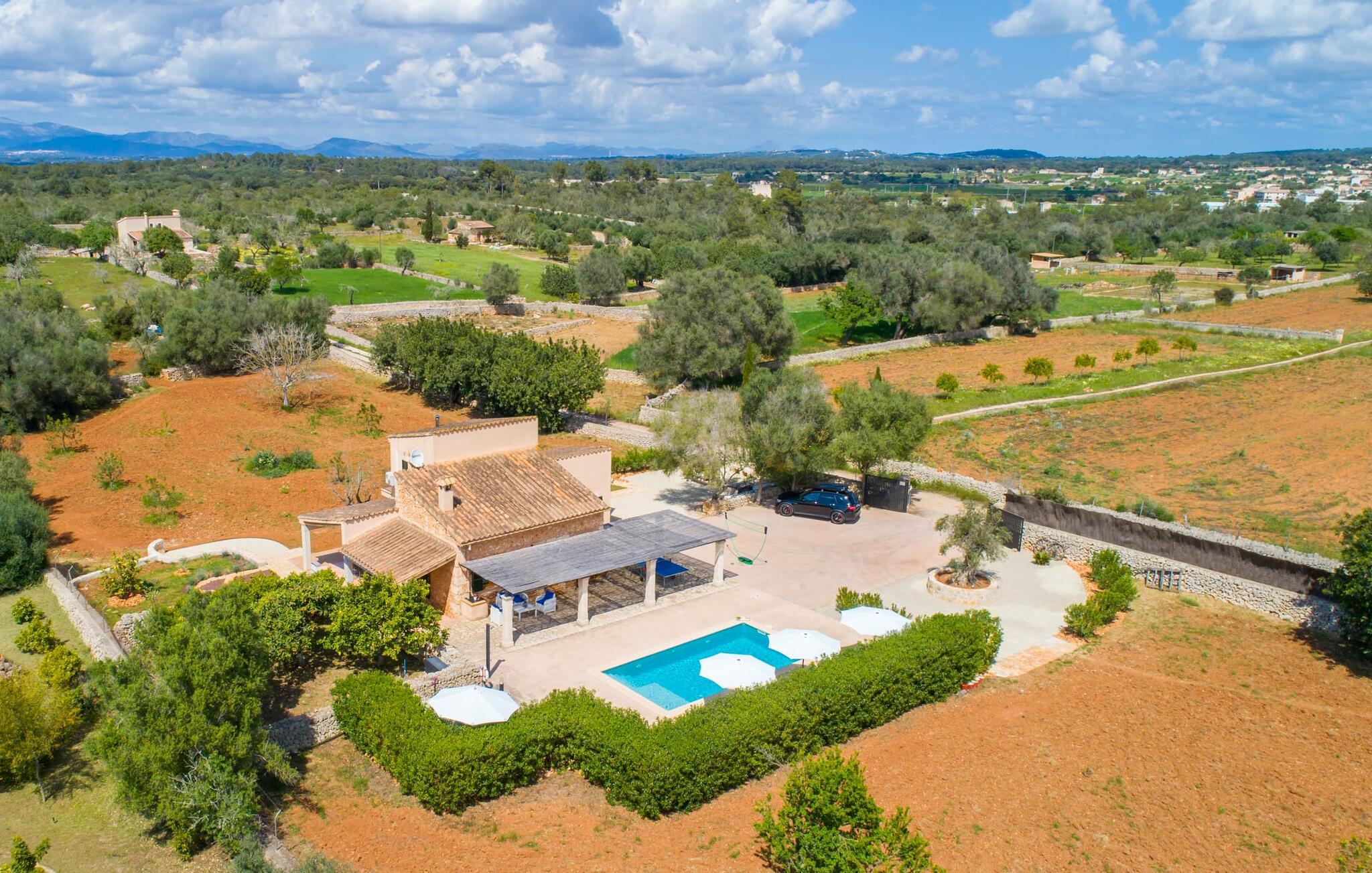 Leter du etter ditt eget lille gjemmested på landsbygda? Et sted å trives med basseng, solterrasse og oliventrær? Da er Villa Binitaref det rette valget for deg! Det sjarmerende natursteinhuset med klassiske mørkegrønne skodder ligger tilbaketrukket og sørvendt til på en nesten 7000 m² stor tomt, som du kan nyte en fantastisk utsikt over fra de mange, delvis overbygde terrassene rundt huset. Men bare hvis du kan ta øynene fra bassenget, som glitrer i solen og er omgitt av en vakker steinmur som inviterer deg til å ta en forfriskende dukkert eller to. Etter en svømmetur er det bare å ta seg en lur på en av de komfortable solsengene - herlig! De som foretrekker å slappe av, kan spille volleyball med sine medreisende og deretter nyte delikatessene som tilberedes på grillen og serveres ved det elegante glassbordet på terrassen.
