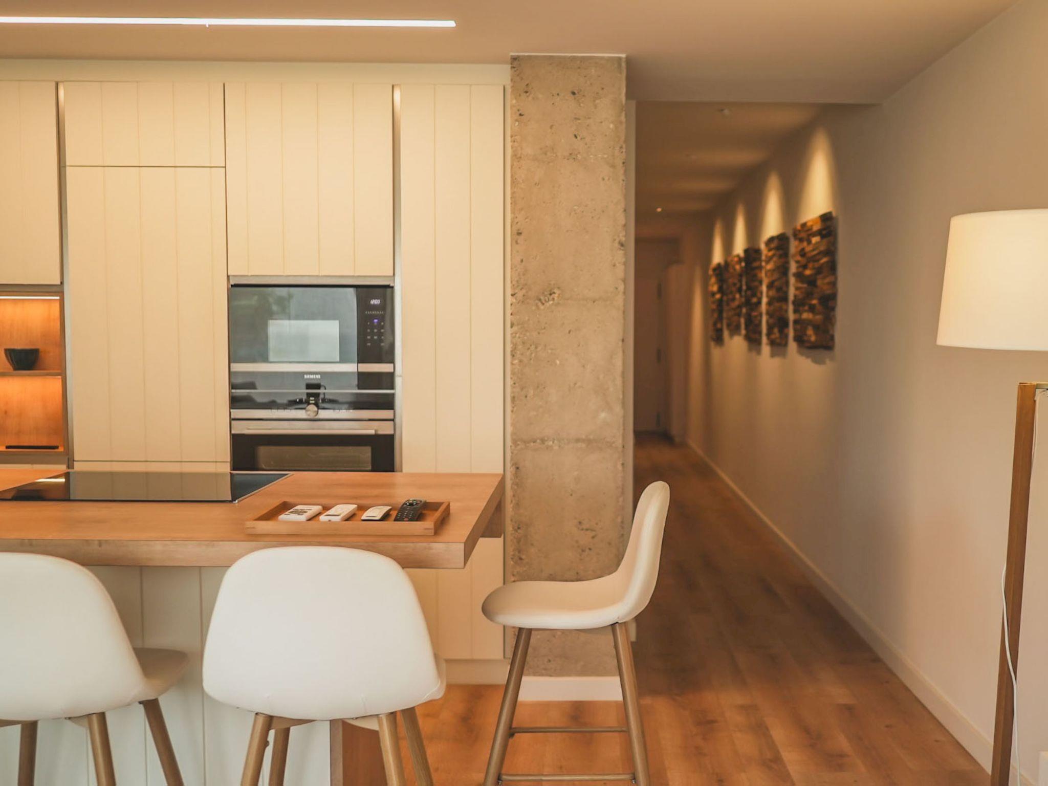 "Azulmar", 4-room apartment 70 m2. Spacious, practical and tasteful furnishings: living/dining room with digital TV, air conditioning, fan and electric shutters. Exit to the balcony. 1 double bedroom with 1 french bed (150 cm, length 190 cm), digital TV and fan. 1 double bedroom with 2 beds (90 cm, length 190 cm), fan. 1 room with 1 bed (90 cm, length 190 cm), fan. Open kitchen (oven, dishwasher, 4 induction hot plates, toaster, kettle, microwave, freezer, electric coffee machine). Shower/WC. Balcony furniture. Panoramic view of the sea. Facilities: washing machine, dryer, iron, children's high chair, baby cot for up to 2 year olds, hair dryer. Internet (WiFi, free). Please note: TV only ES. HUTG-065975 // Reg. Nr.: ESFCTU00001702800015324300000000000000000HUTG-0659751